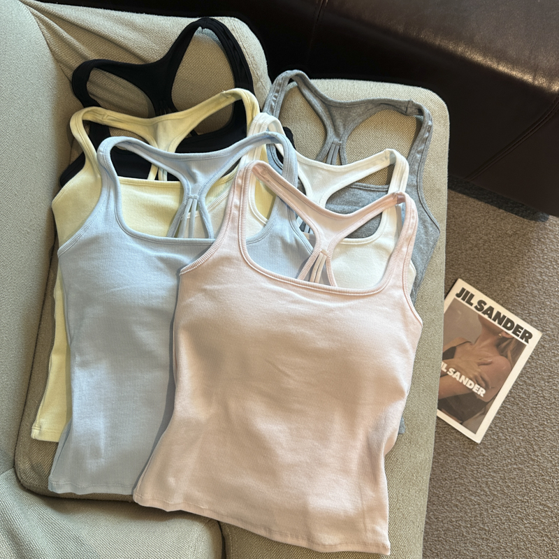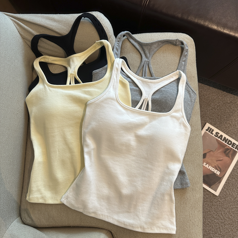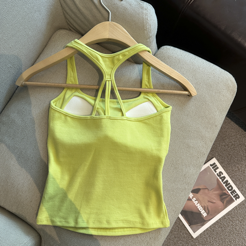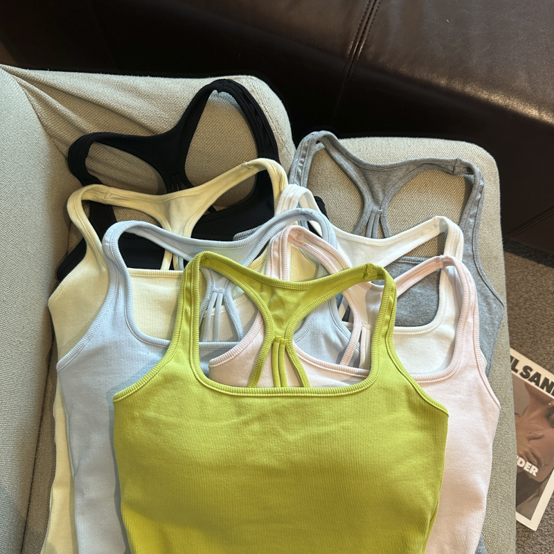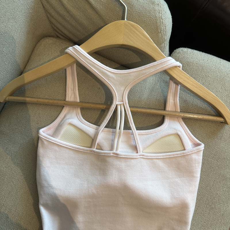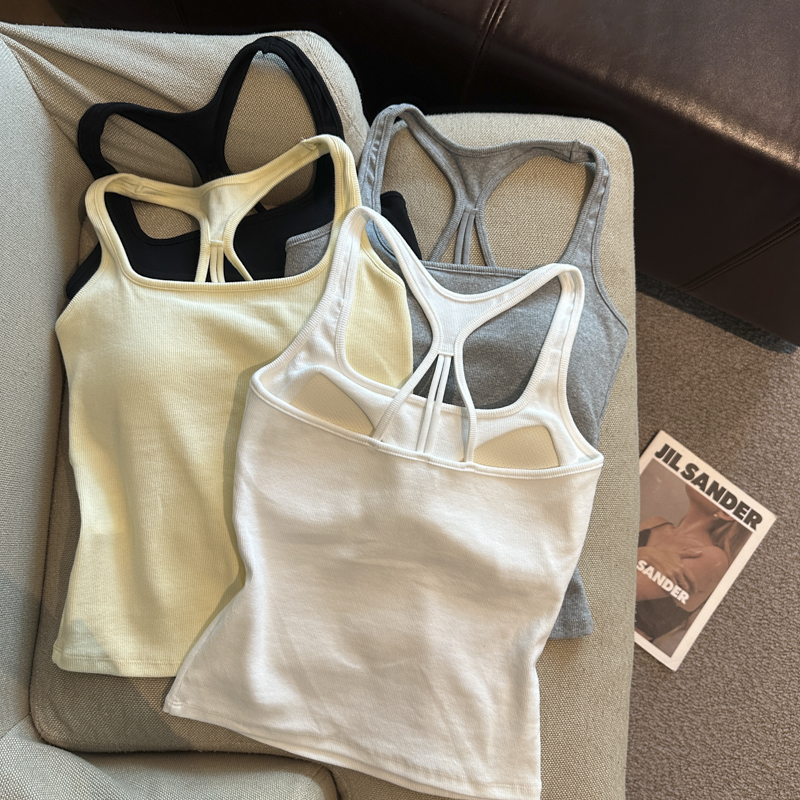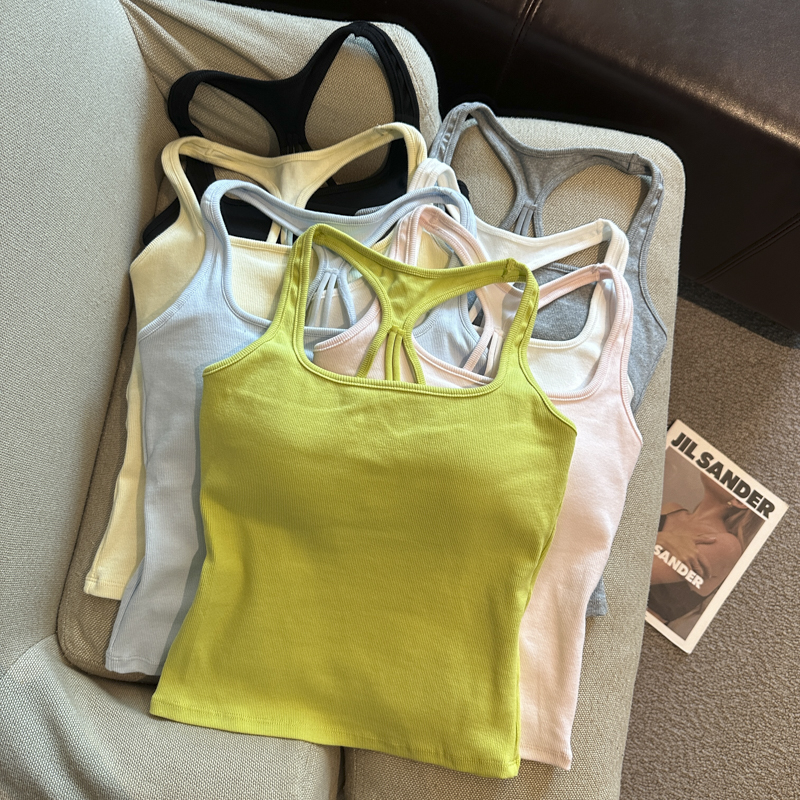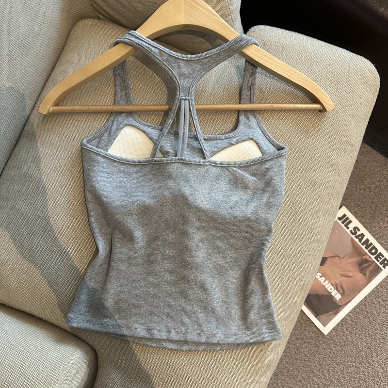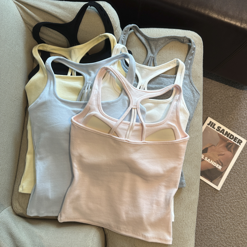 实拍 纯欲性感美背吊带背心女夏季内搭带胸垫甜辣妹短款镂空上衣