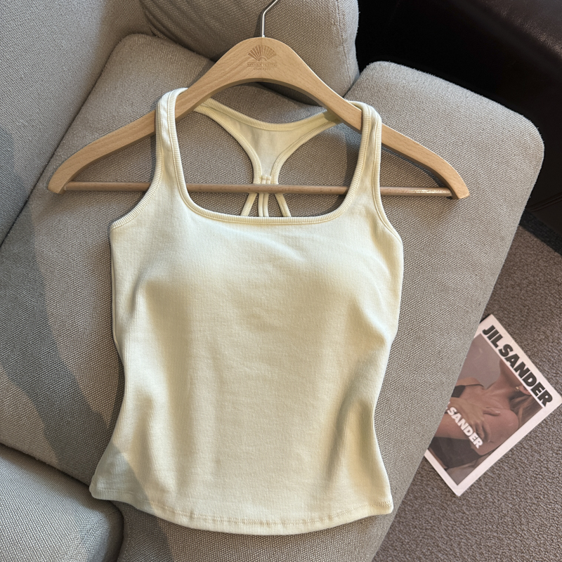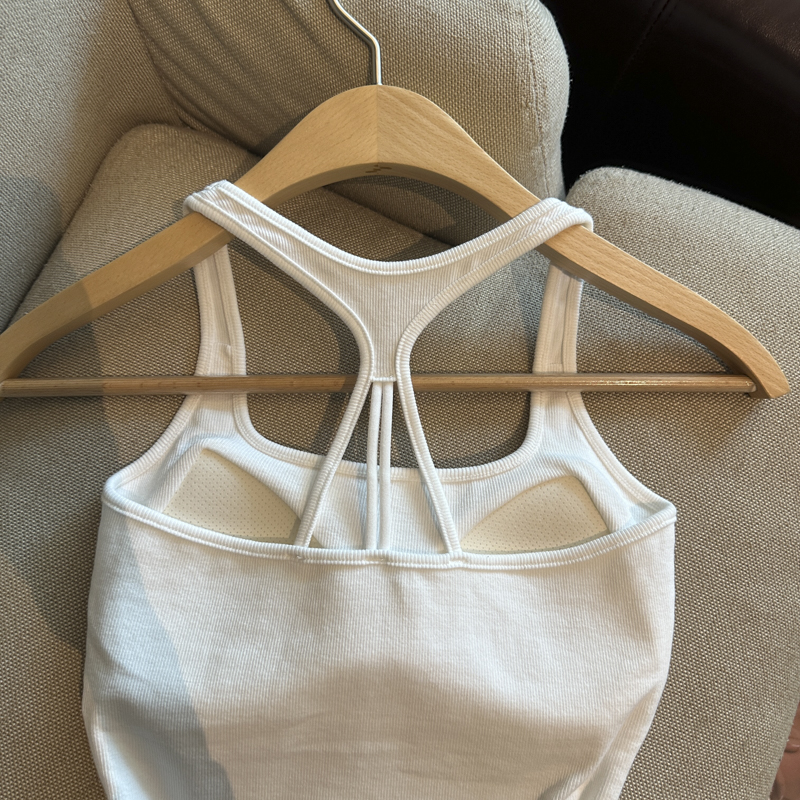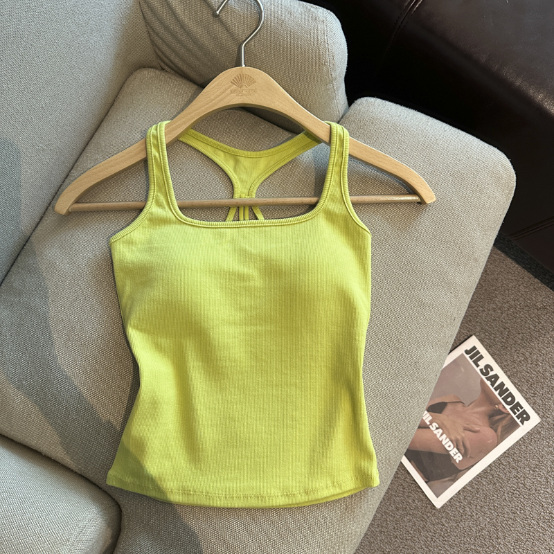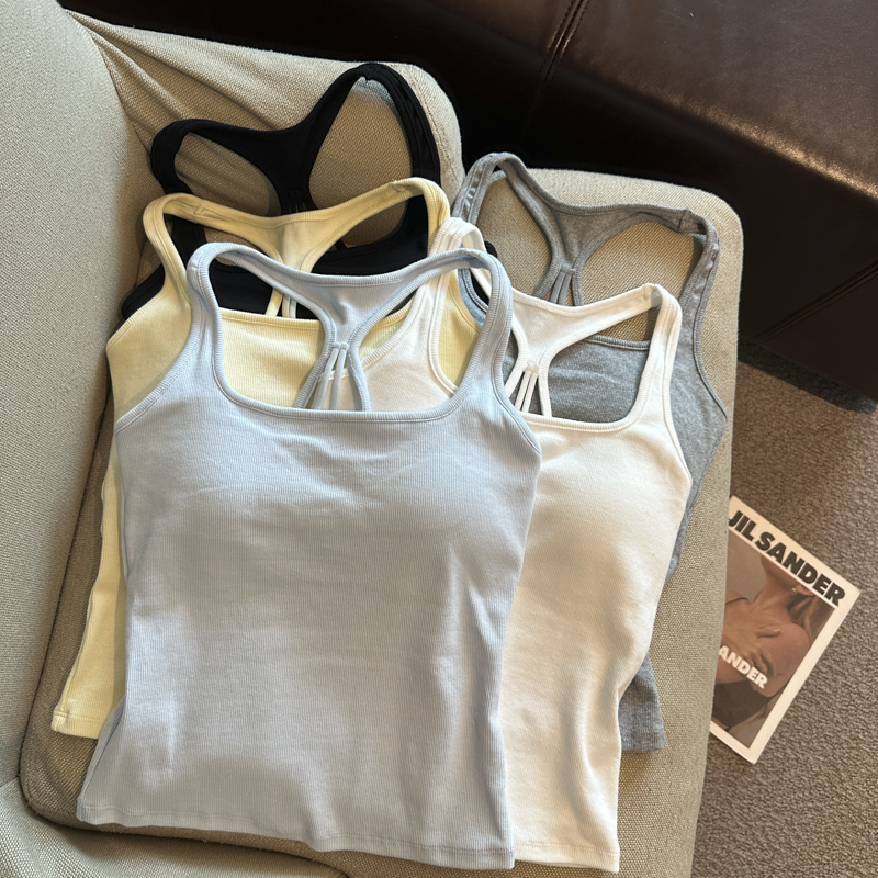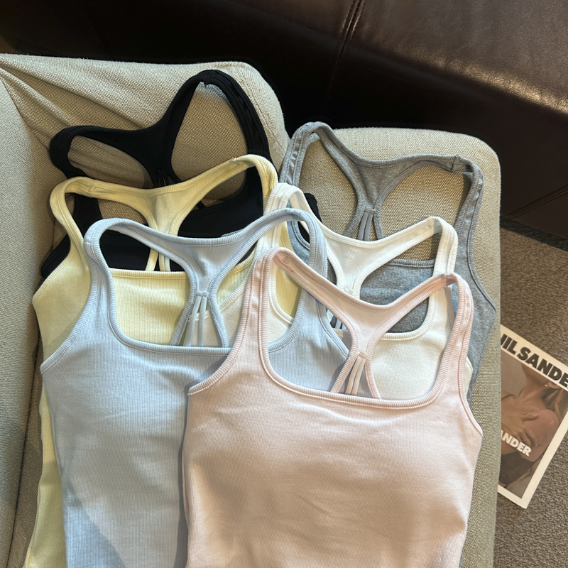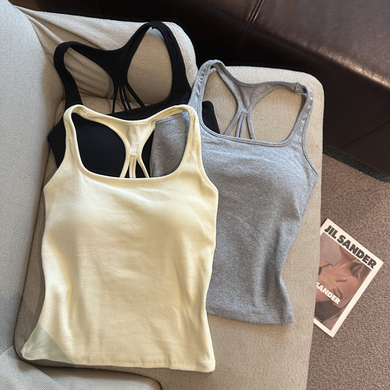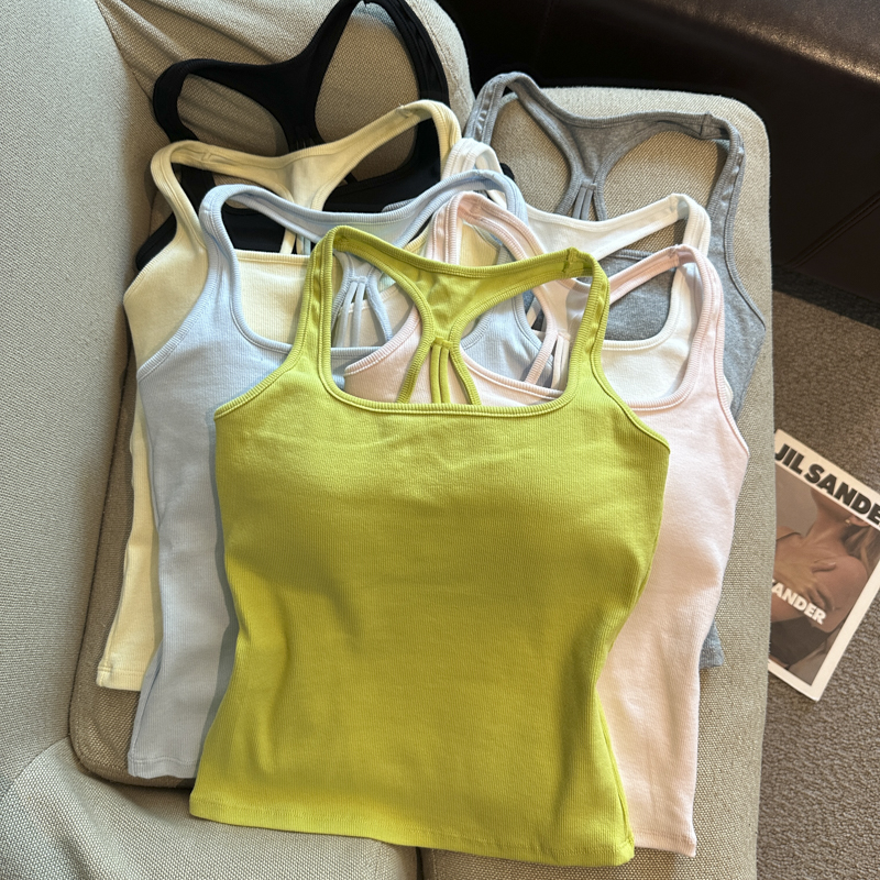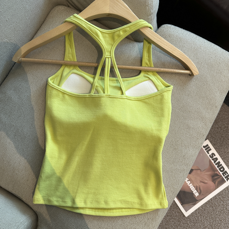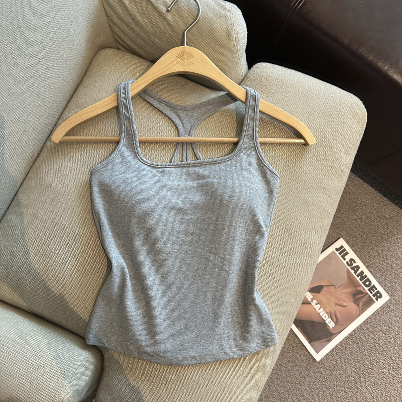 实拍 纯欲性感美背吊带背心女夏季内搭带胸垫甜辣妹短款镂空上衣