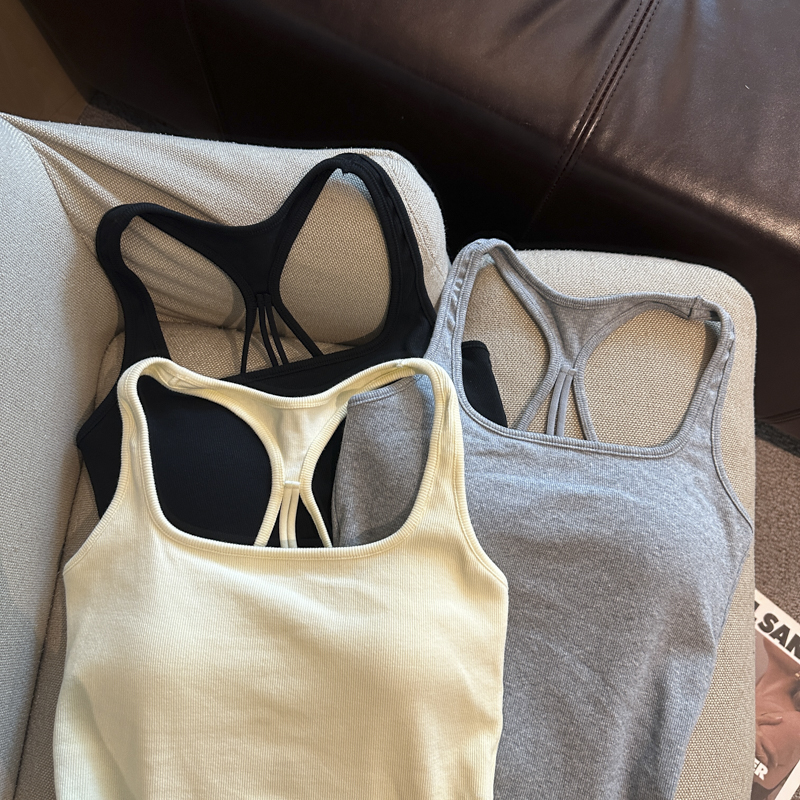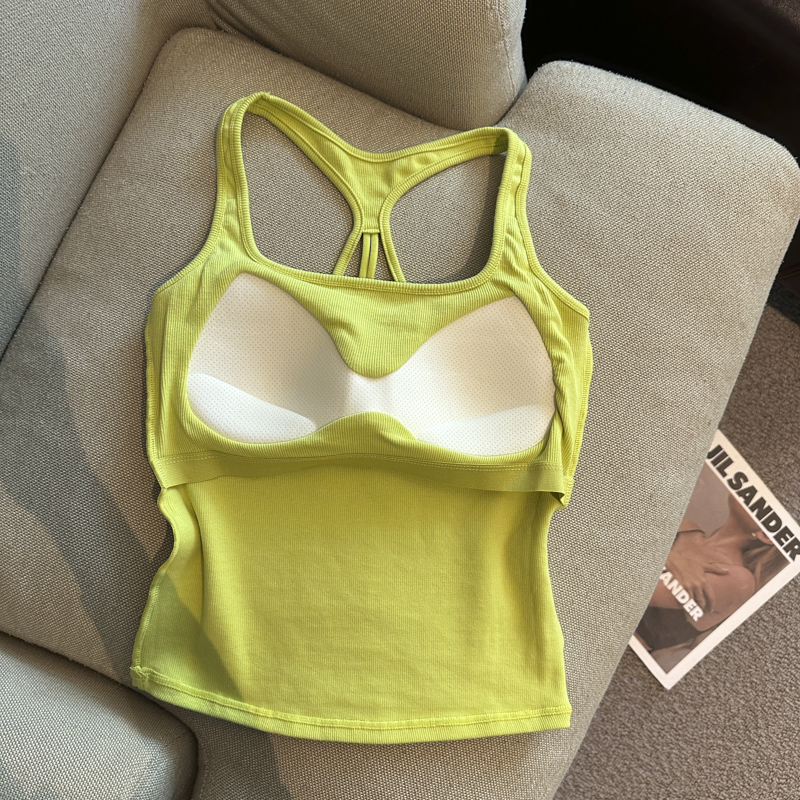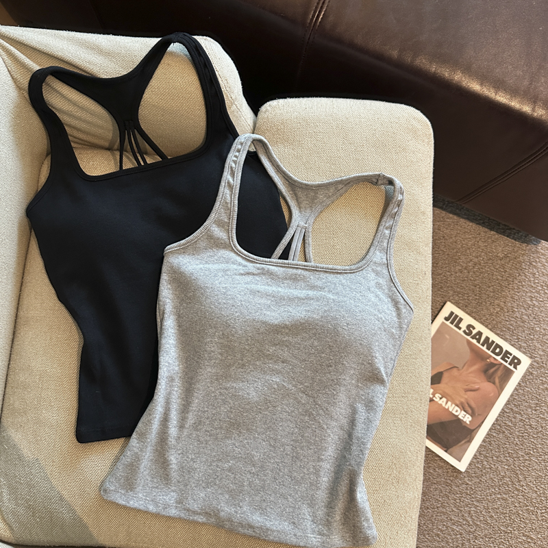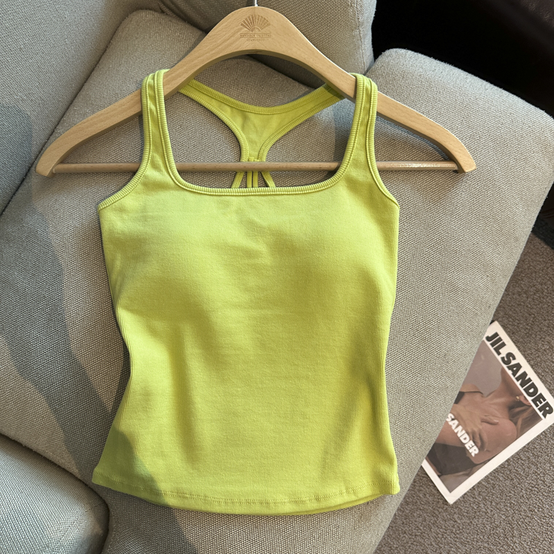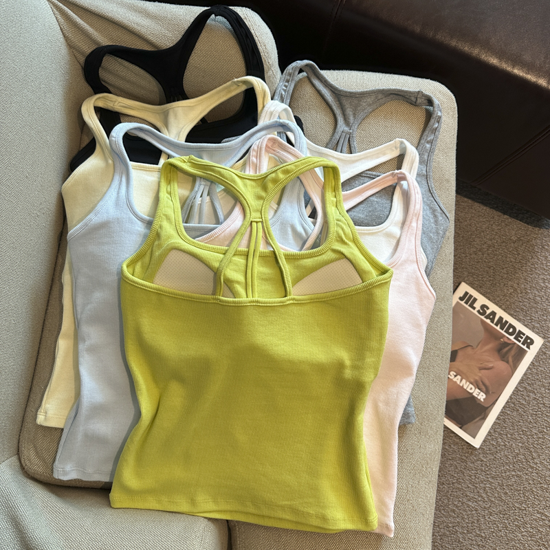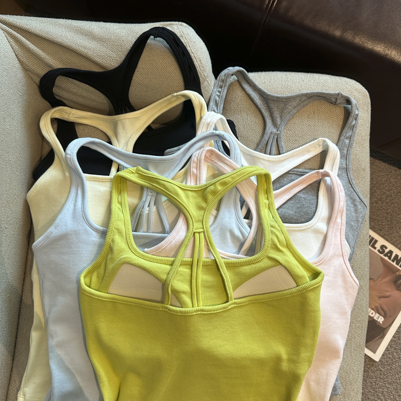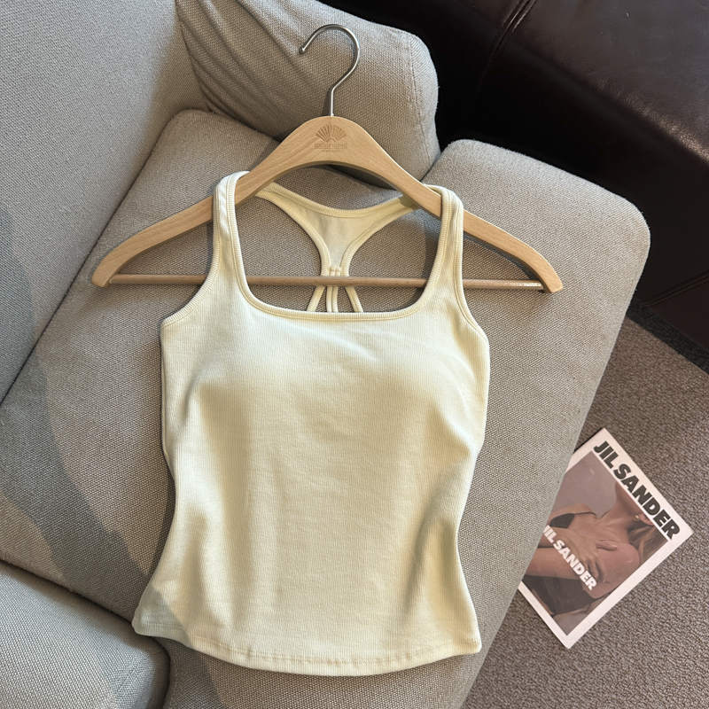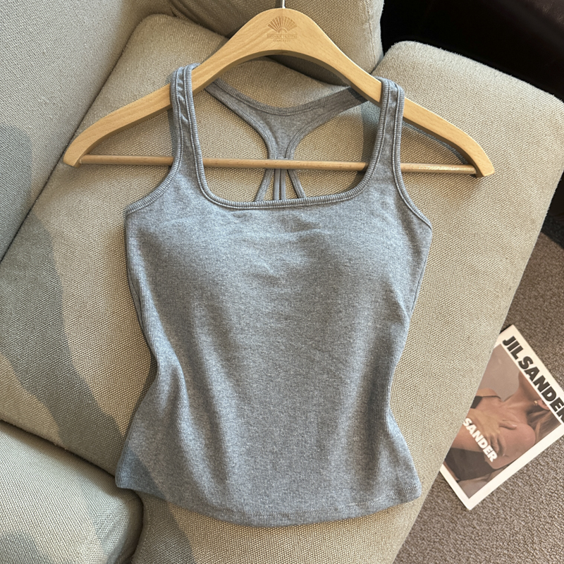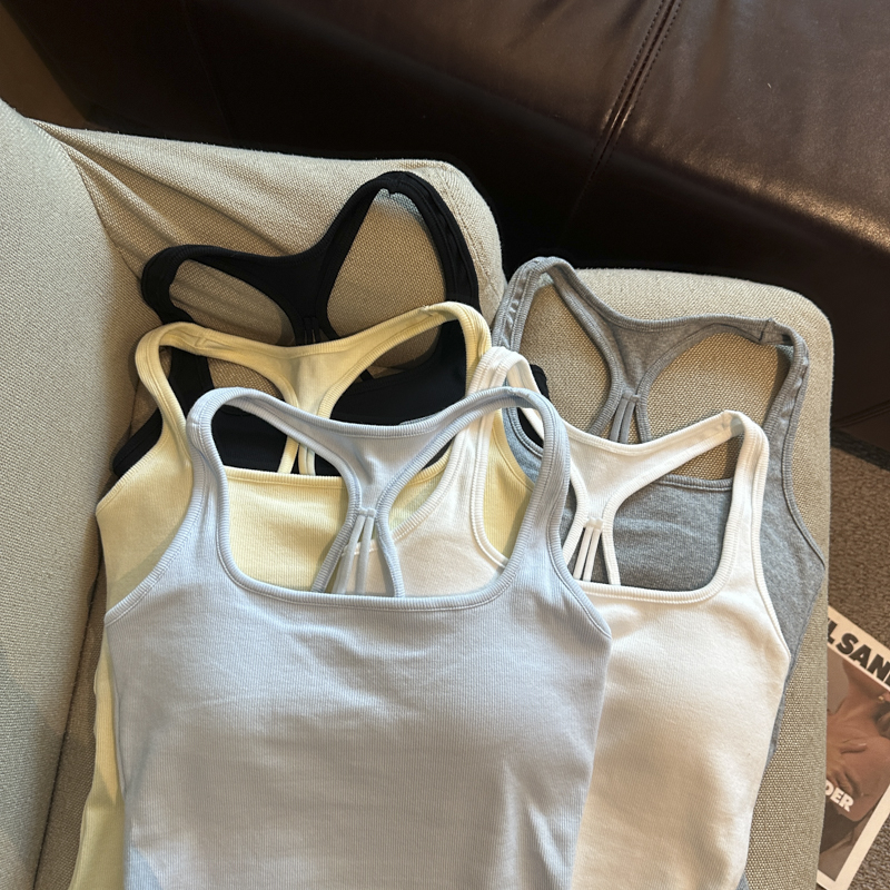 实拍 纯欲性感美背吊带背心女夏季内搭带胸垫甜辣妹短款镂空上衣