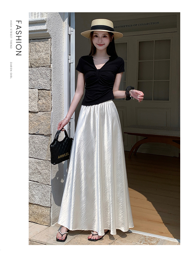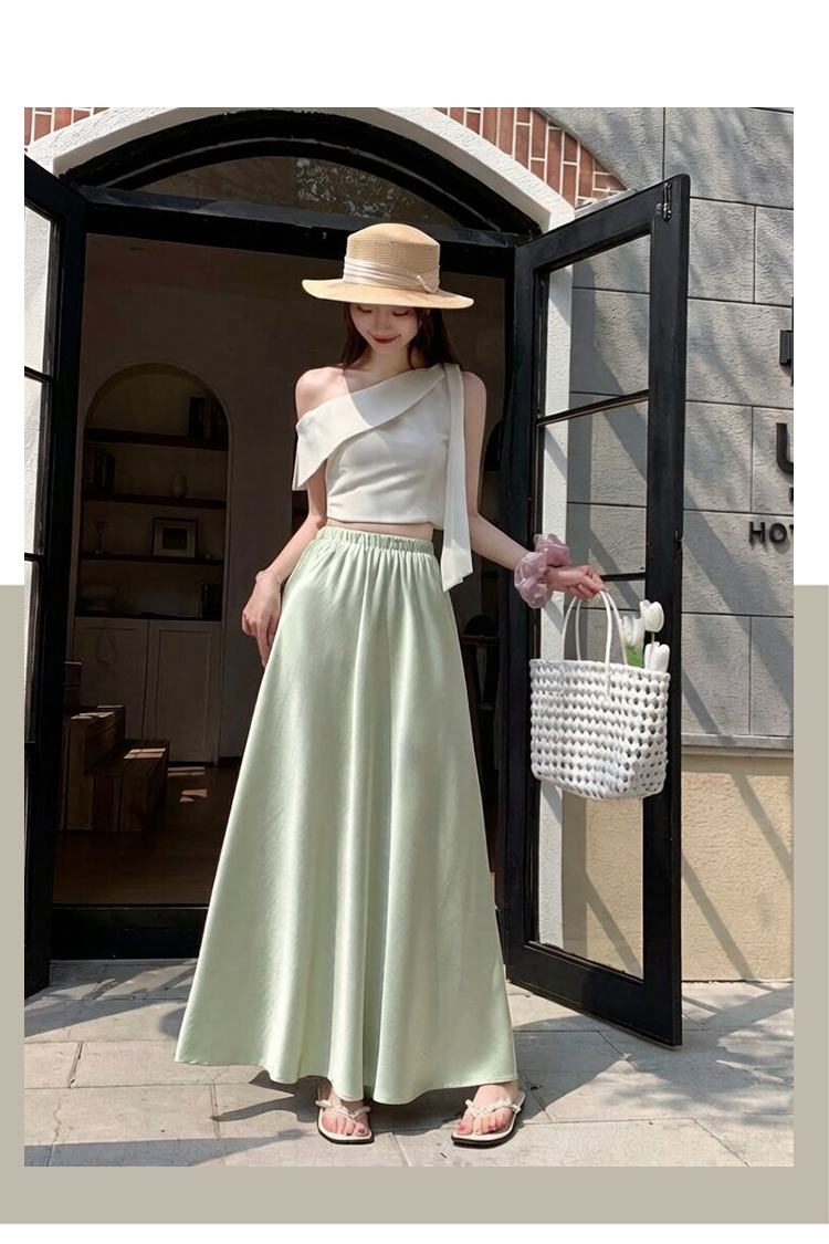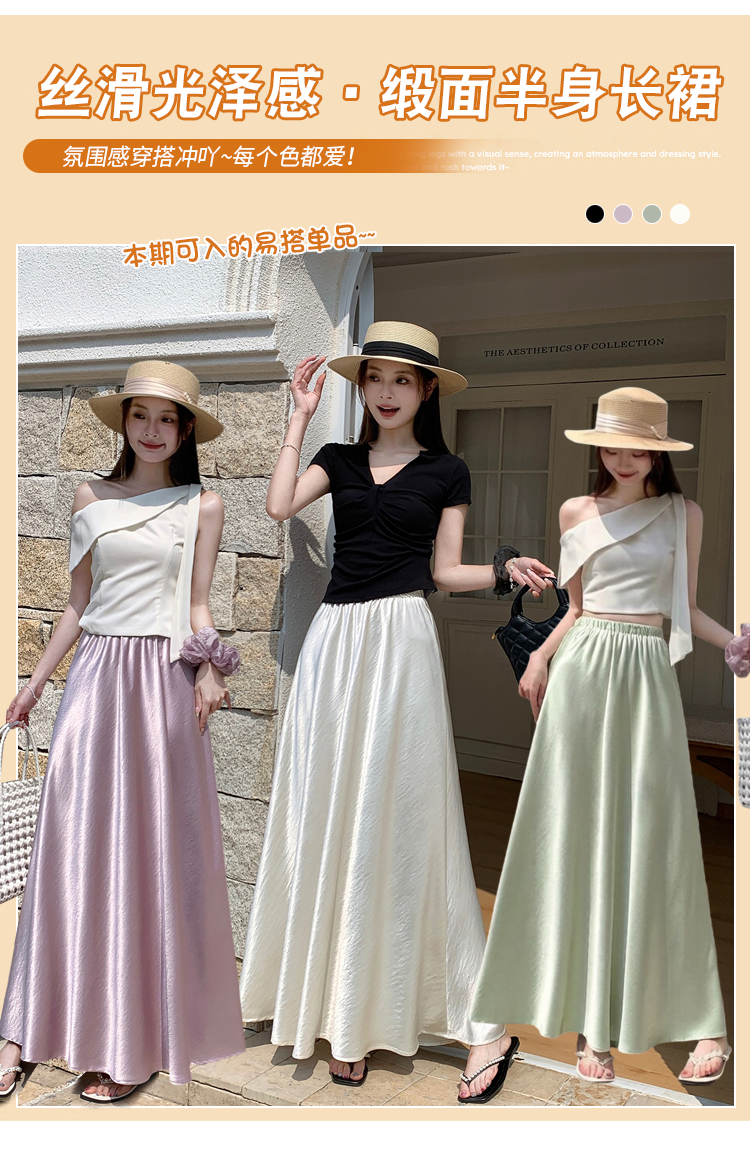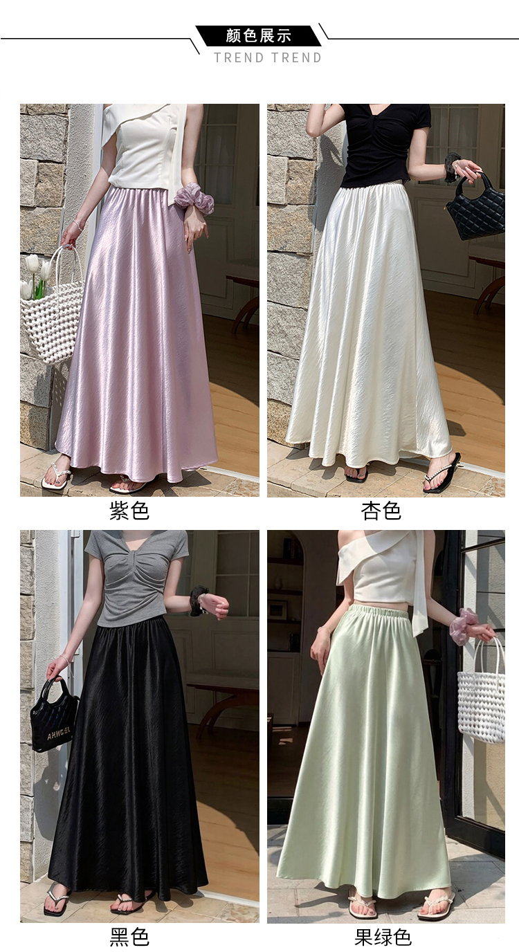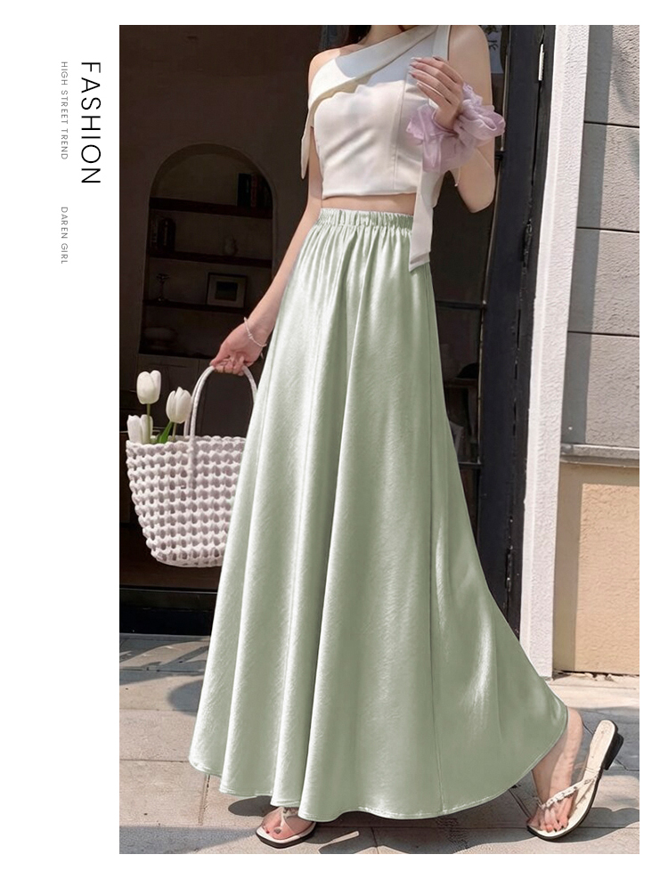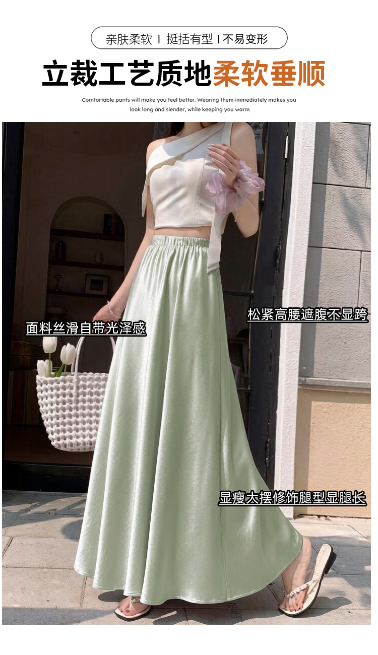 高级感醋酸缎面半身裙女夏2026新款高腰显瘦垂感a字大摆伞裙长裙