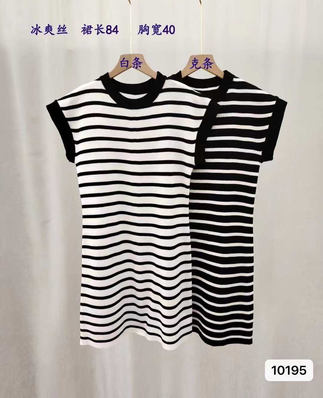 实价时尚圆领撞色条纹小飞袖修身连衣裙