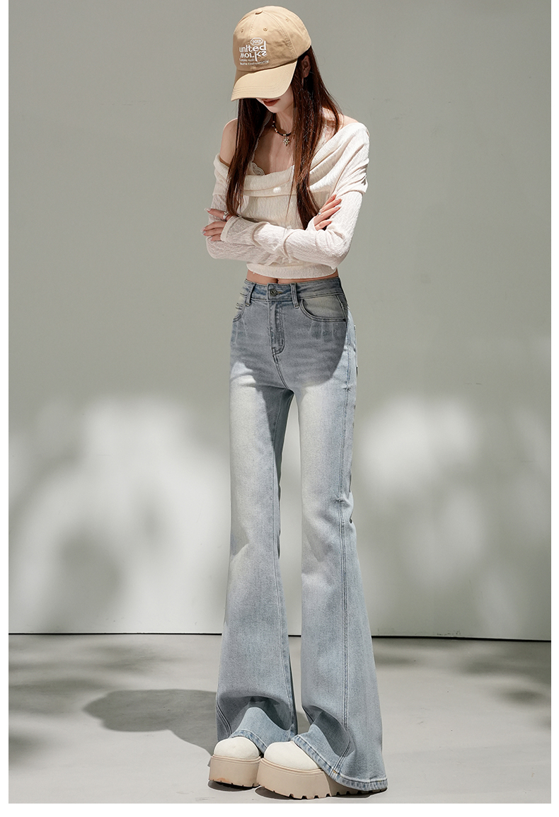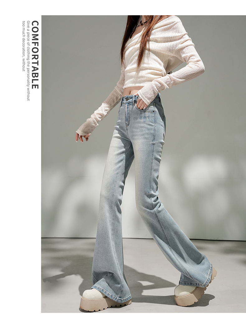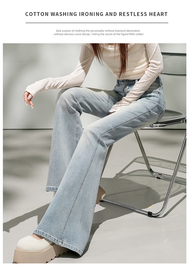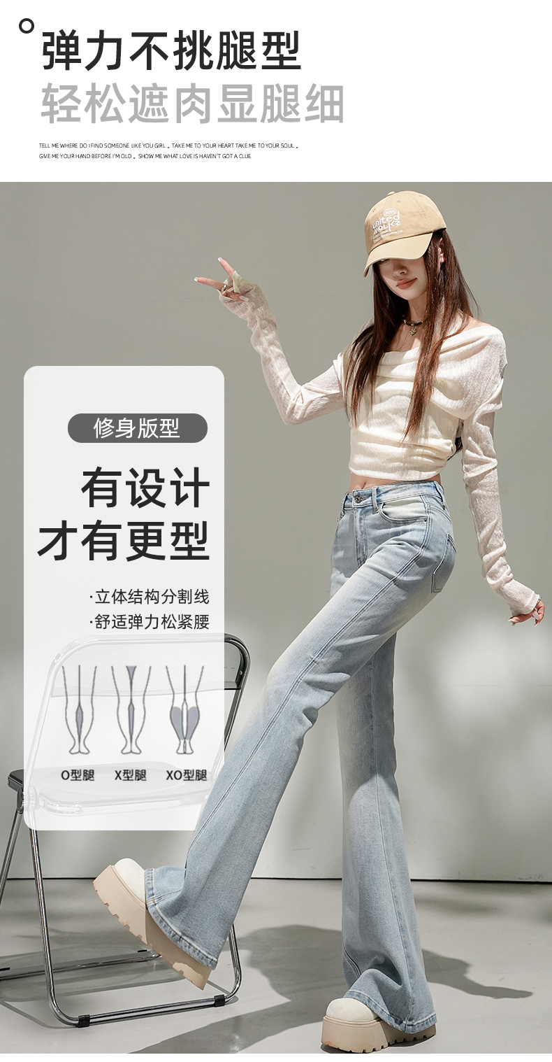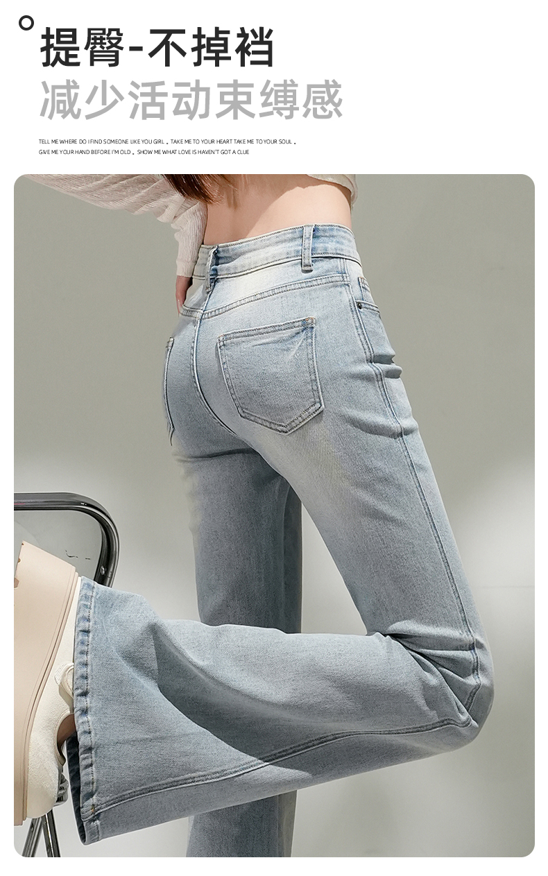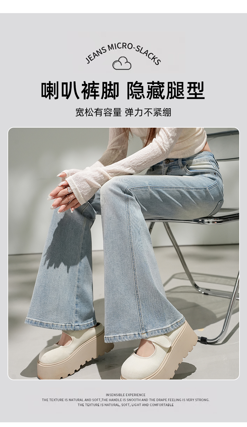 浅蓝色不贴腿弹力中高腰牛仔裤女2026春夏新款宽松显瘦质感喇叭裤