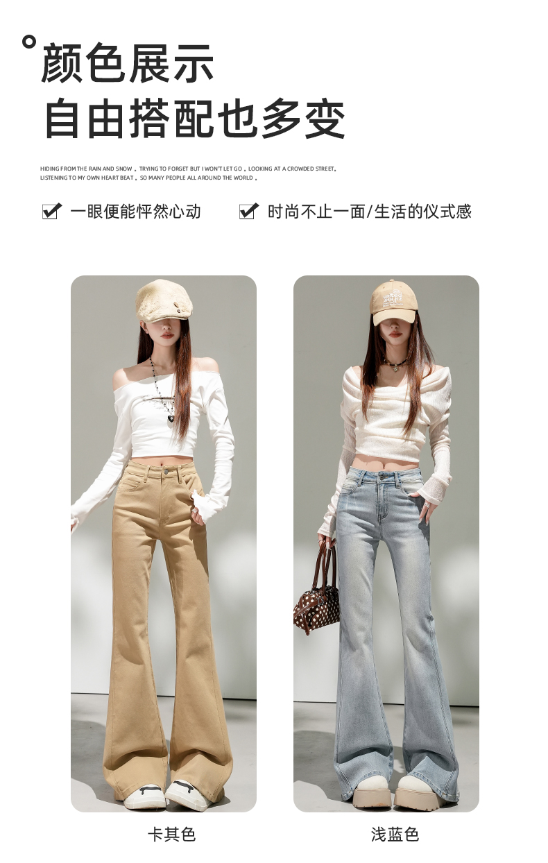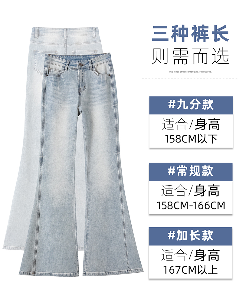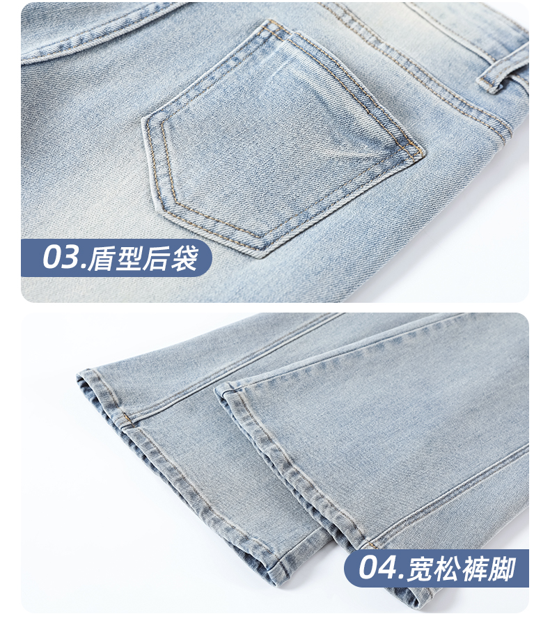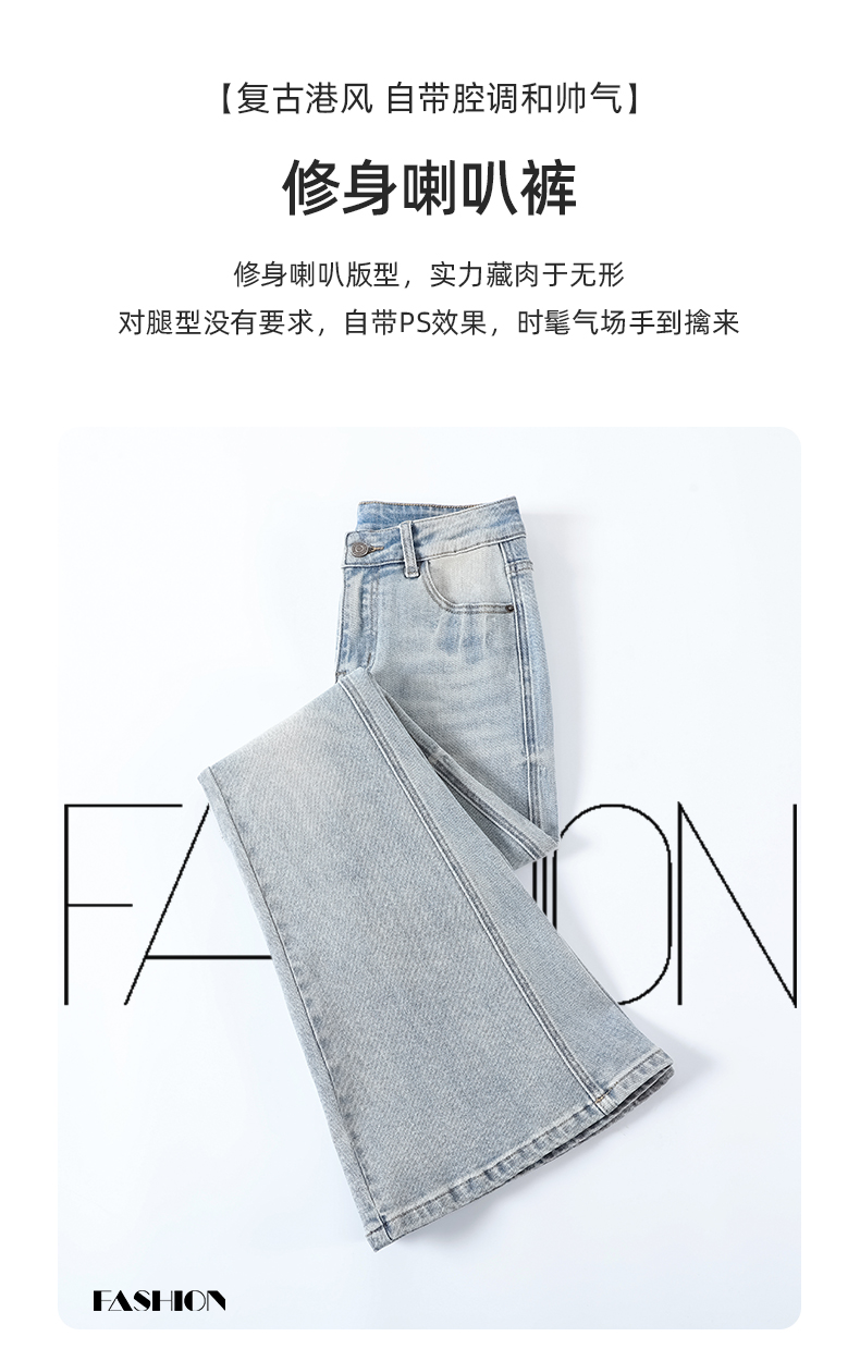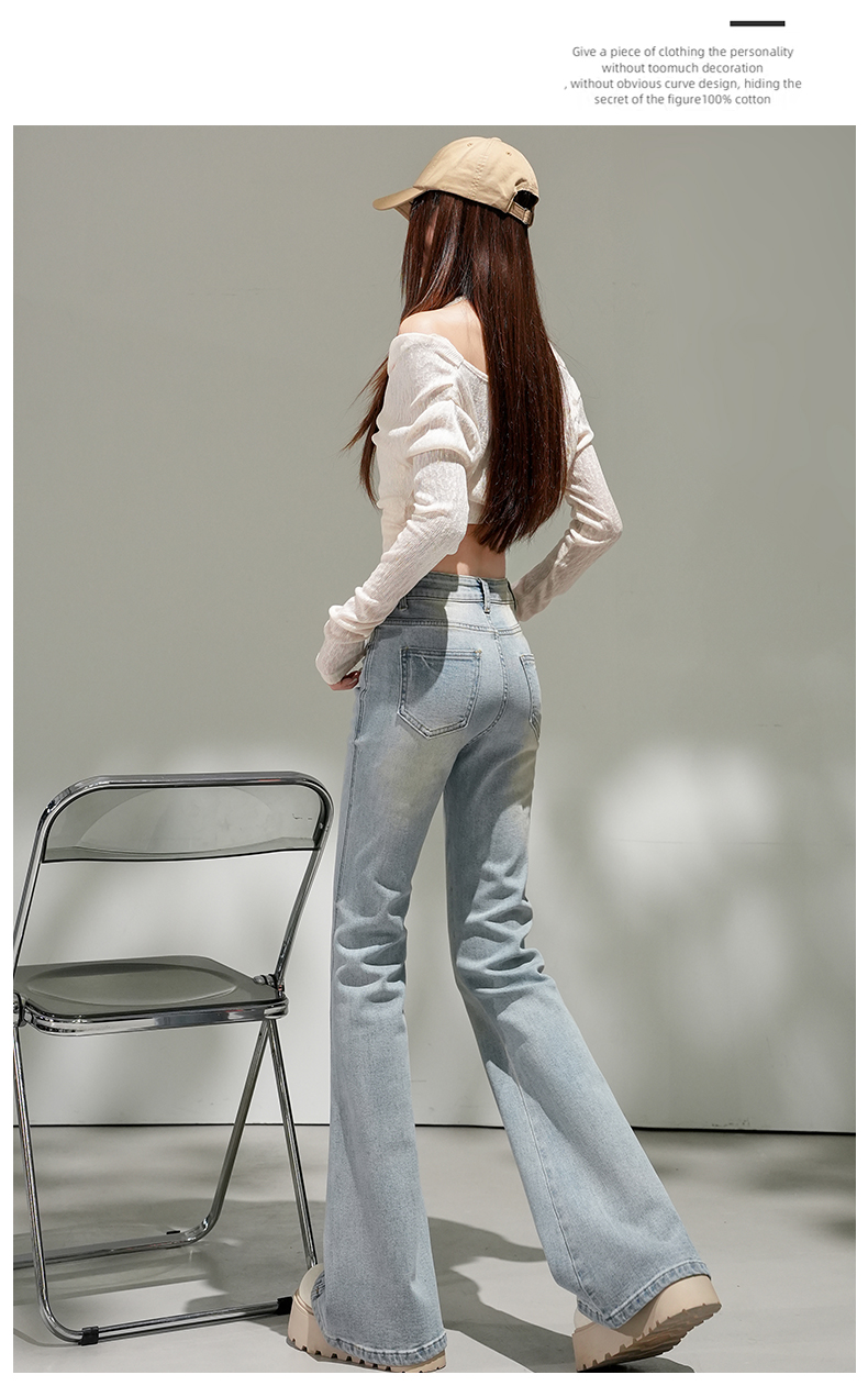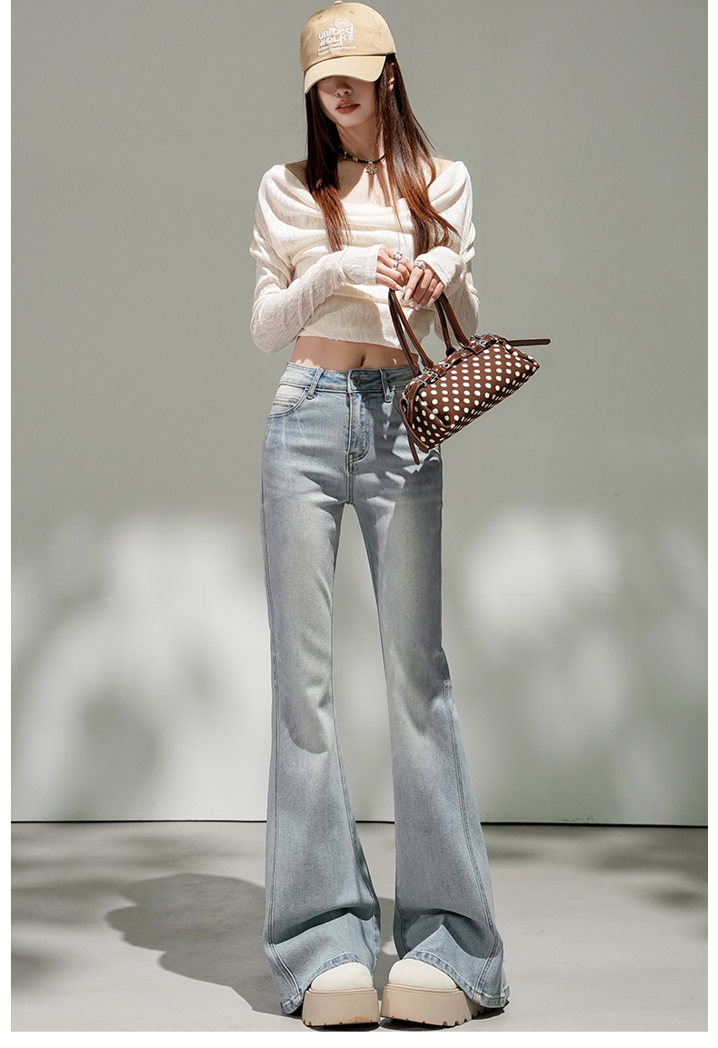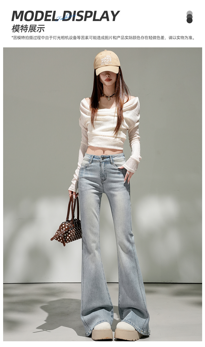 浅蓝色不贴腿弹力中高腰牛仔裤女2026春夏新款宽松显瘦质感喇叭裤