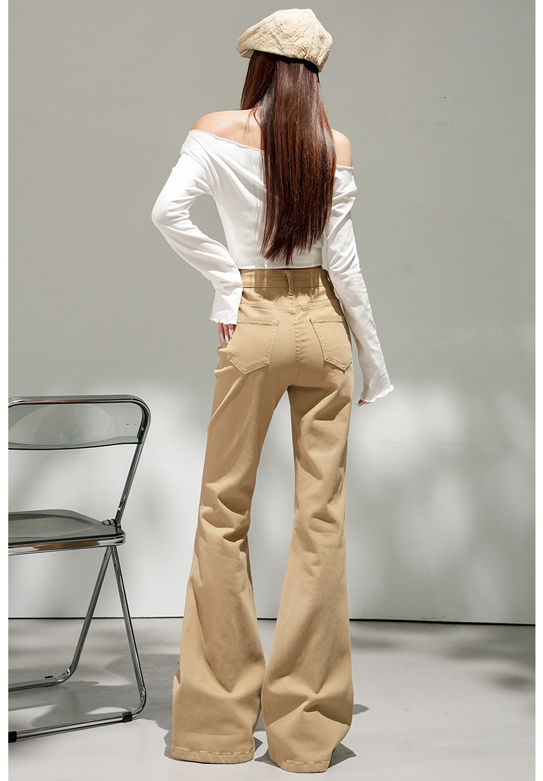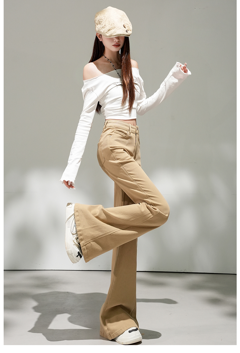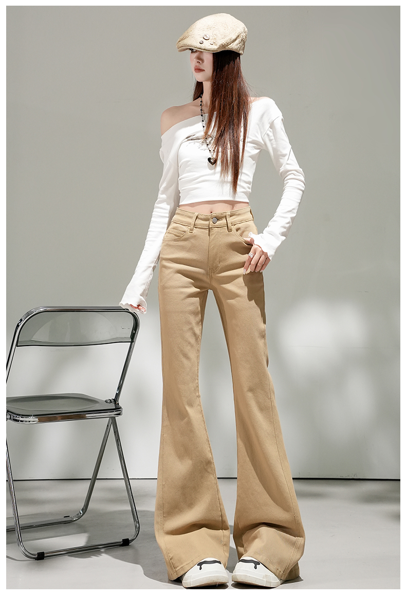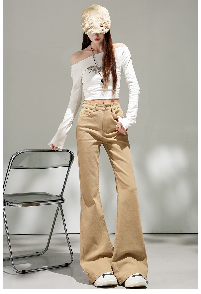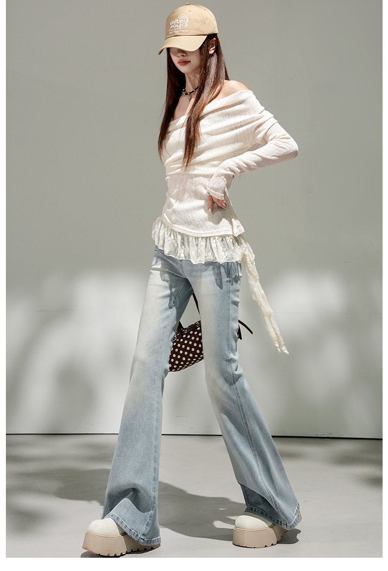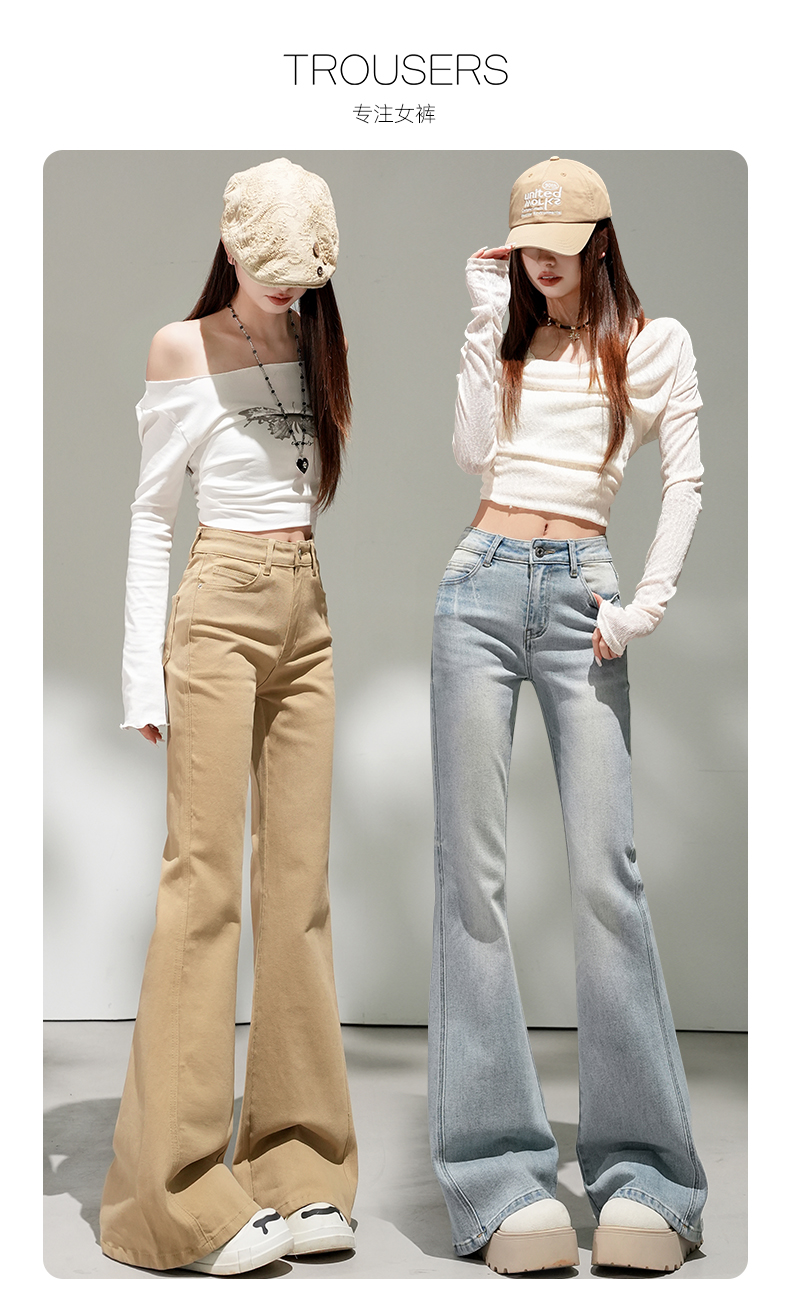 浅蓝色不贴腿弹力中高腰牛仔裤女2026春夏新款宽松显瘦质感喇叭裤