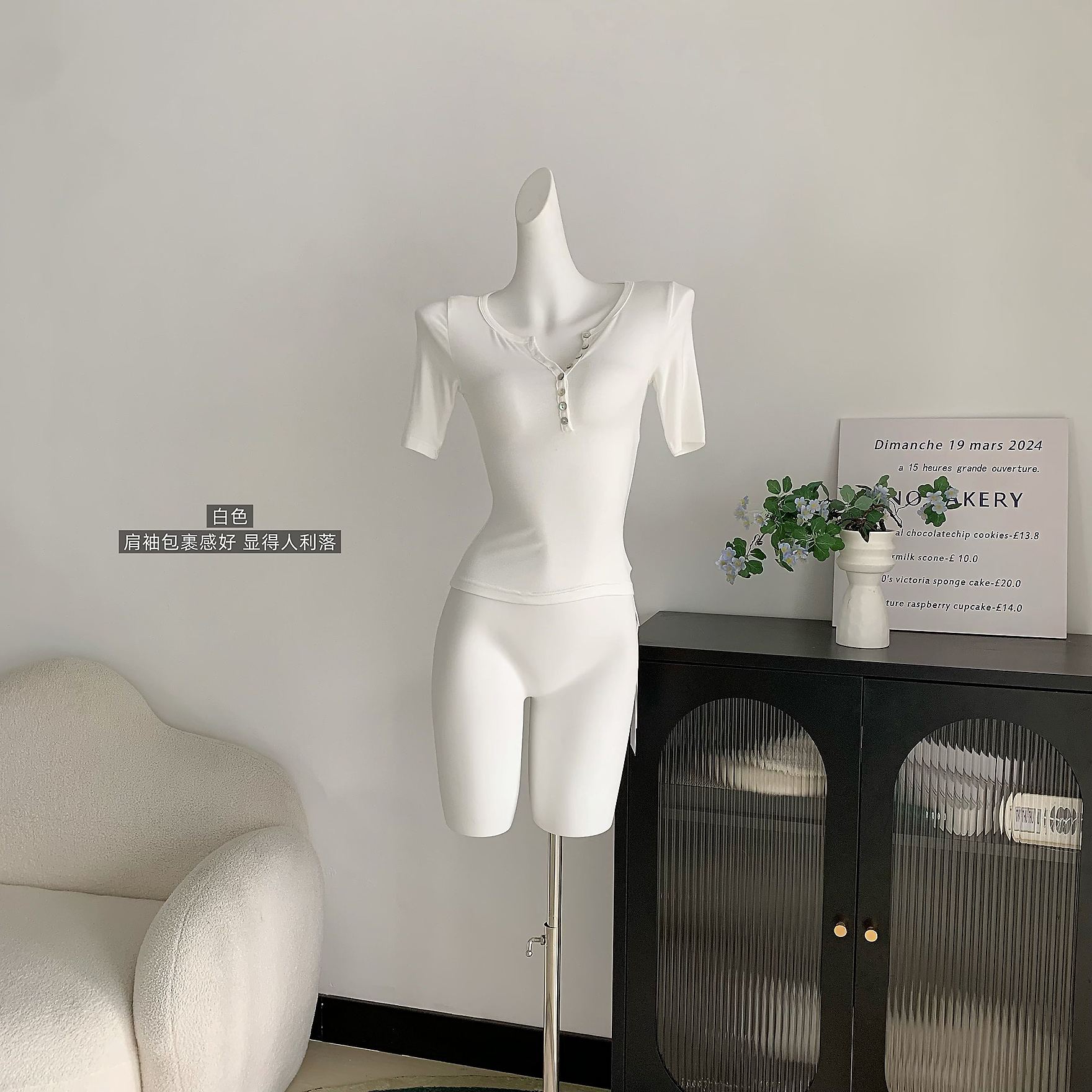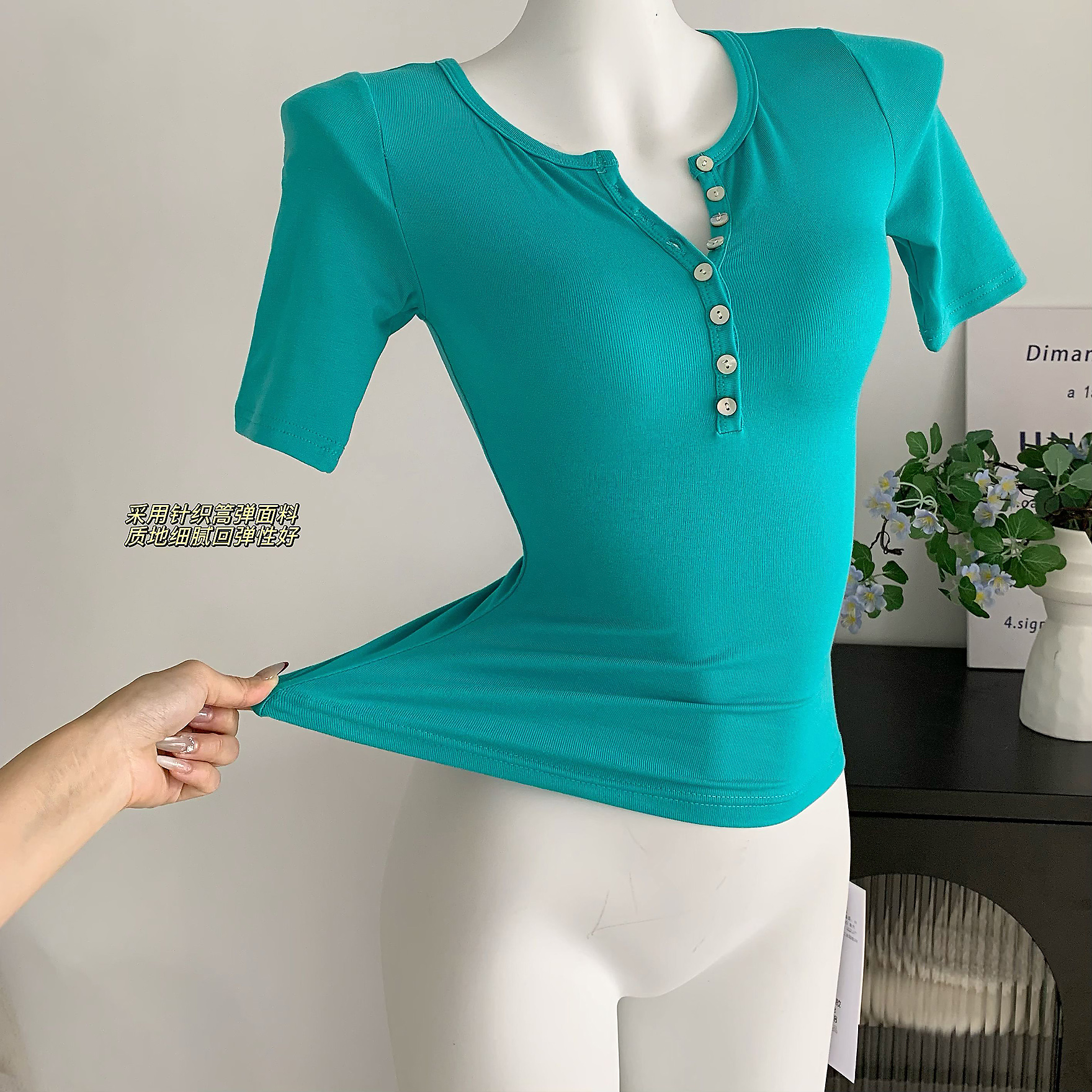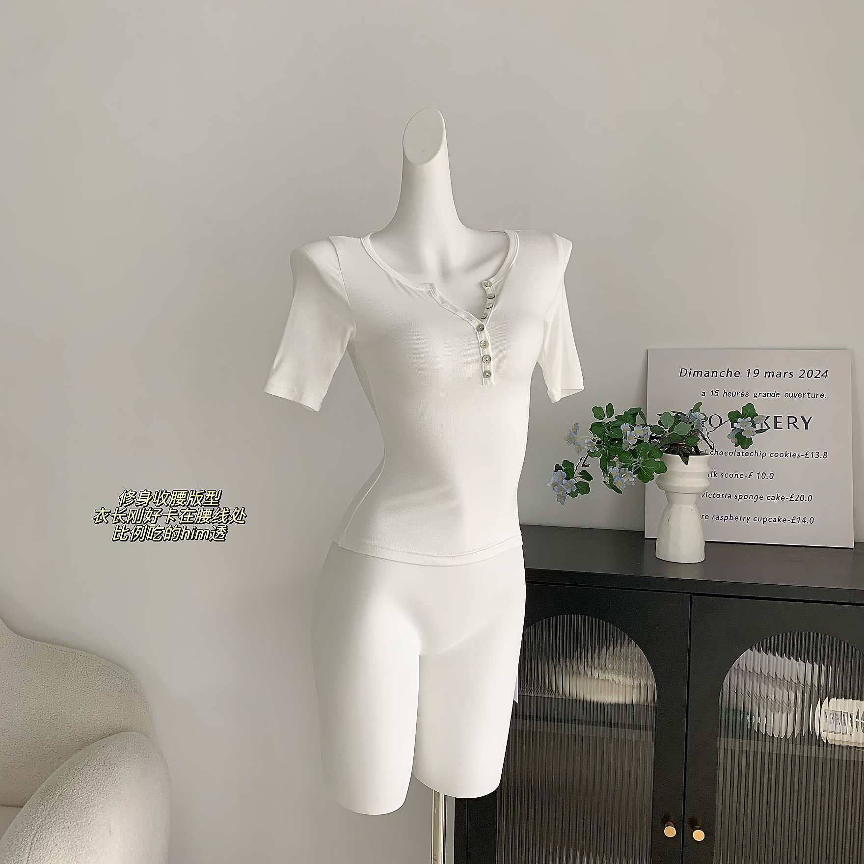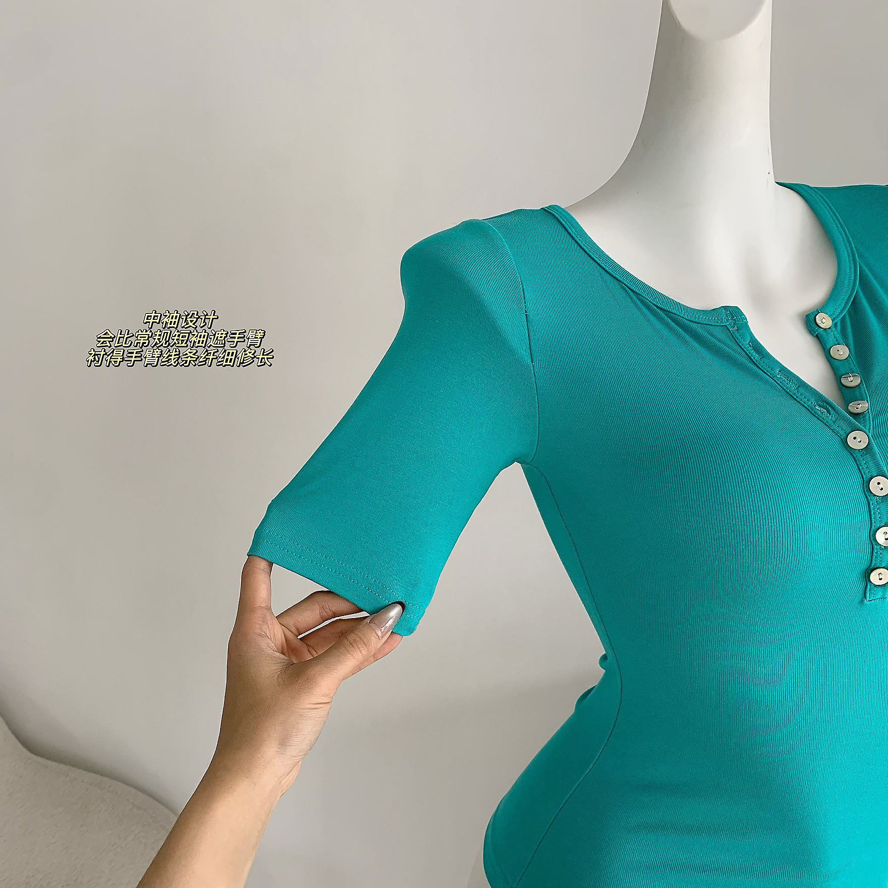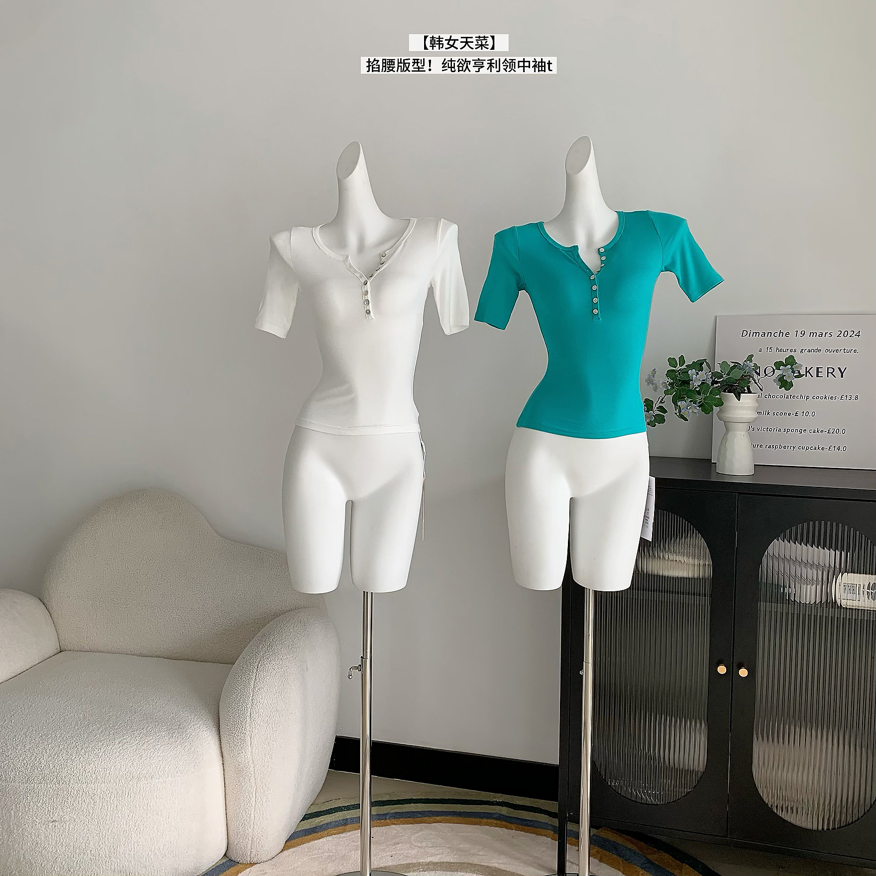 陈佳楠NNS2026韩女天菜神仙掐腰版型!纯欲显身材亨利领中袖t