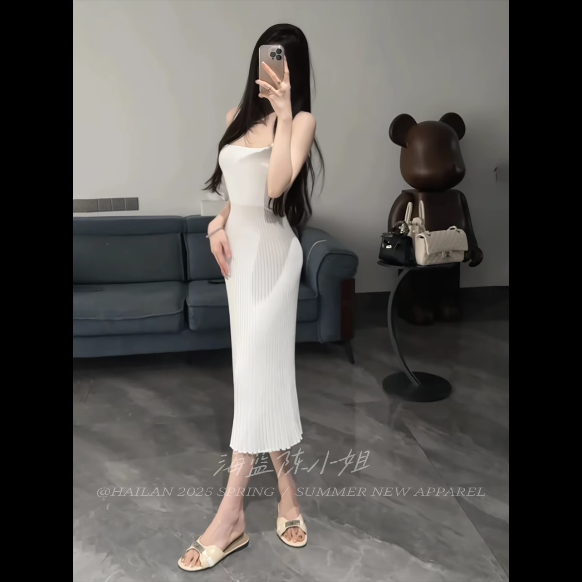 初恋白月光白色中长款背心裙子夏季淑女气质温柔风针织吊带连衣裙