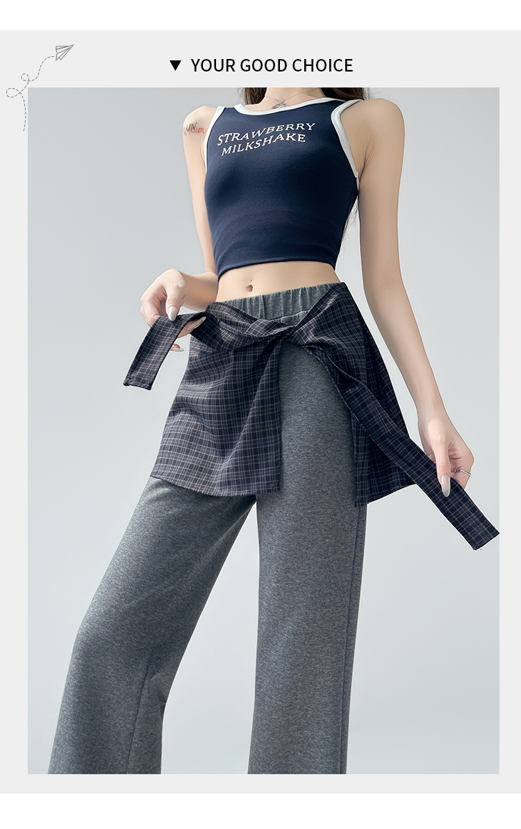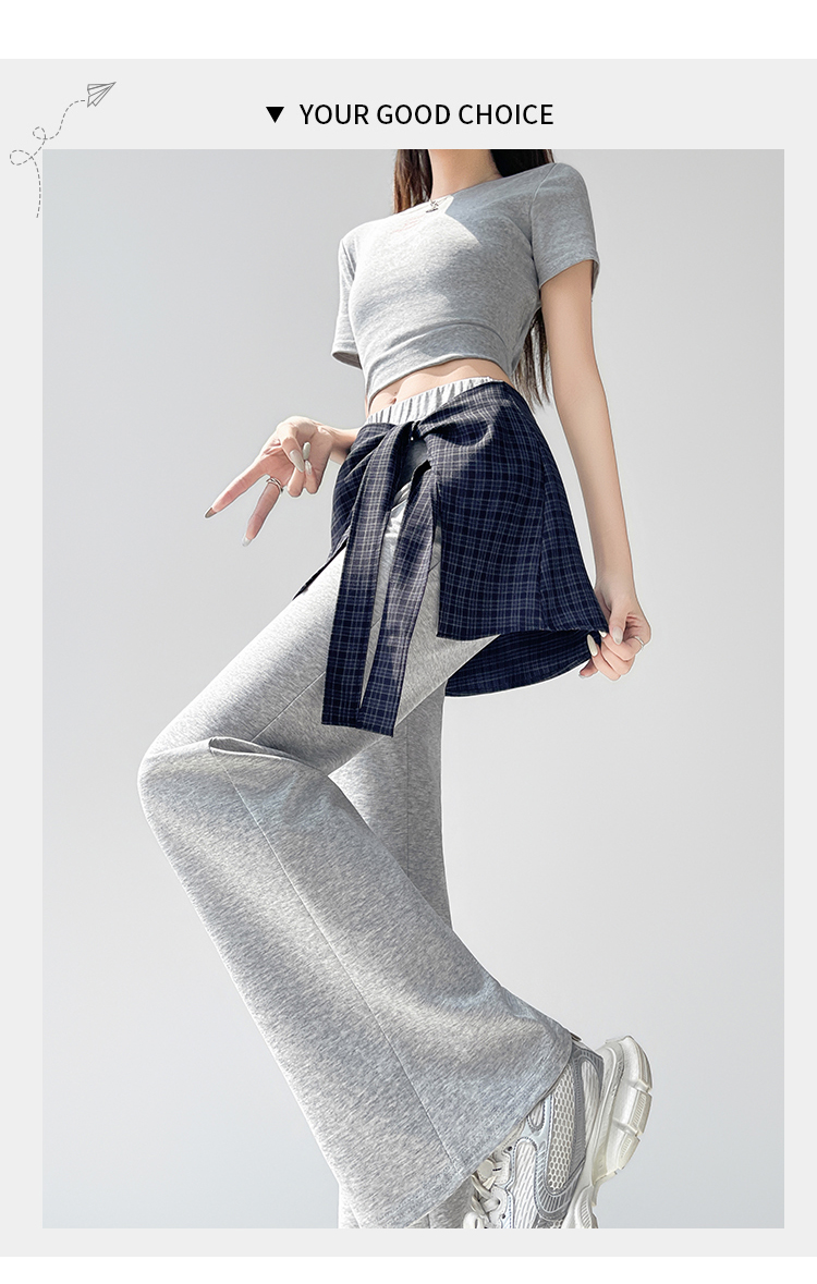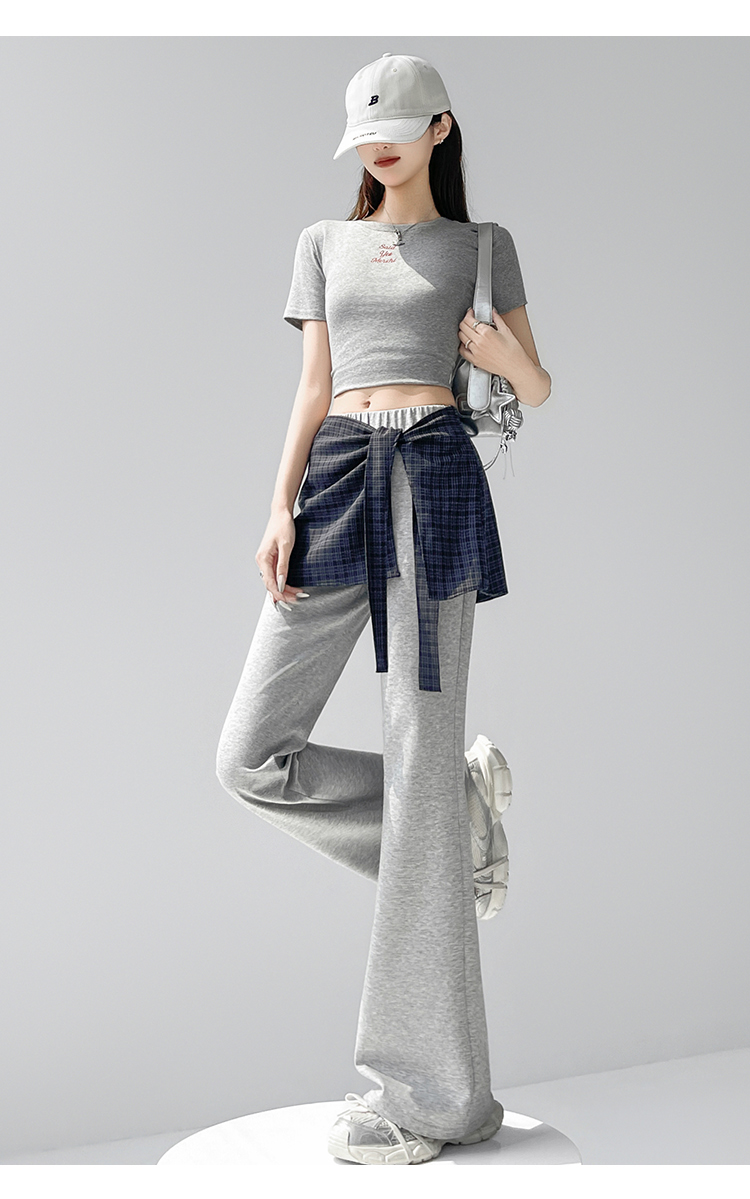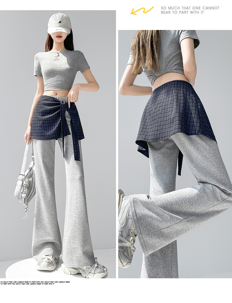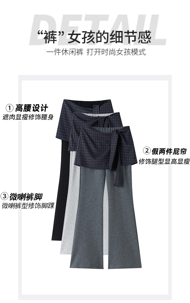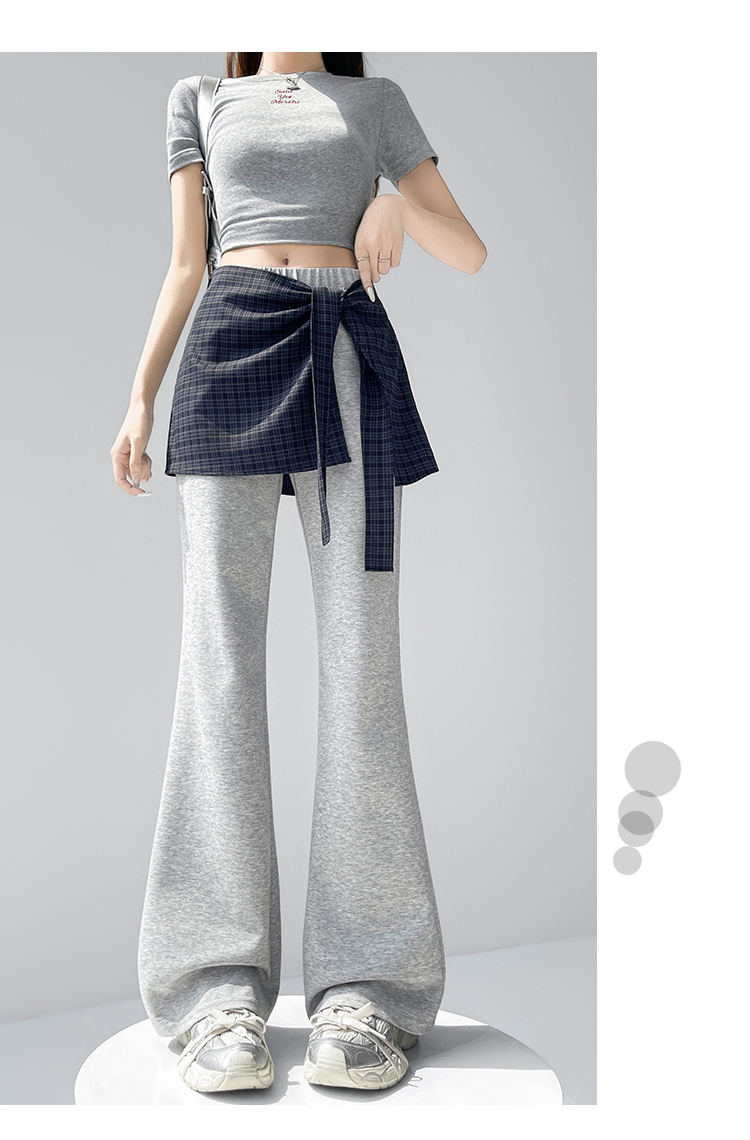 假两件格纹屁帘空气棉微喇裤女夏新款高腰显瘦百搭休闲弹力喇叭裤