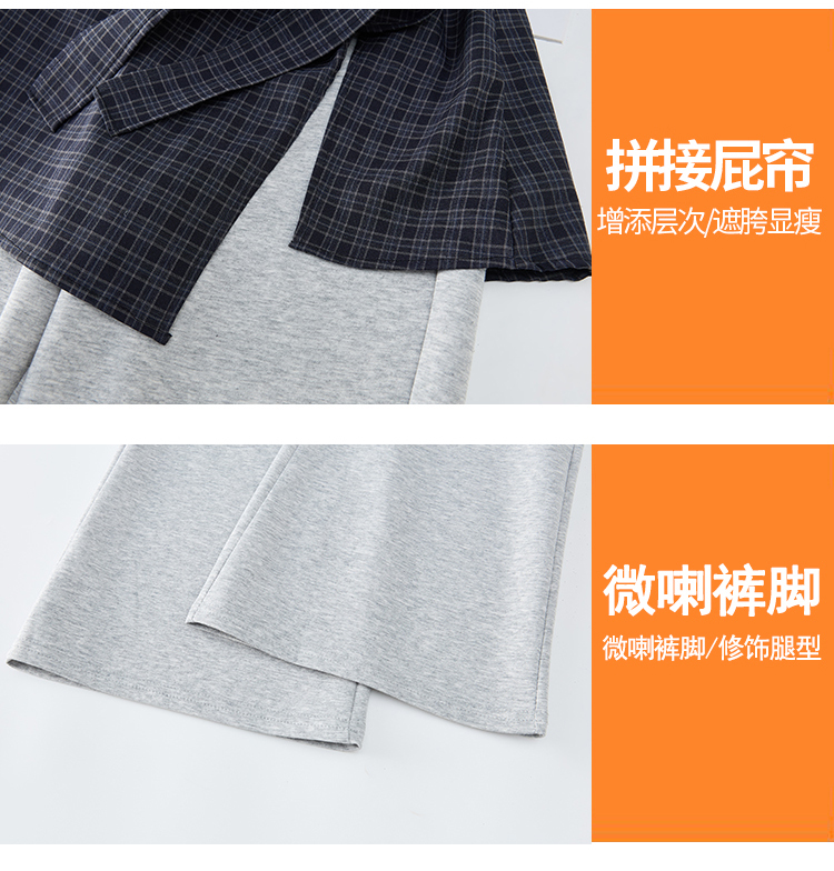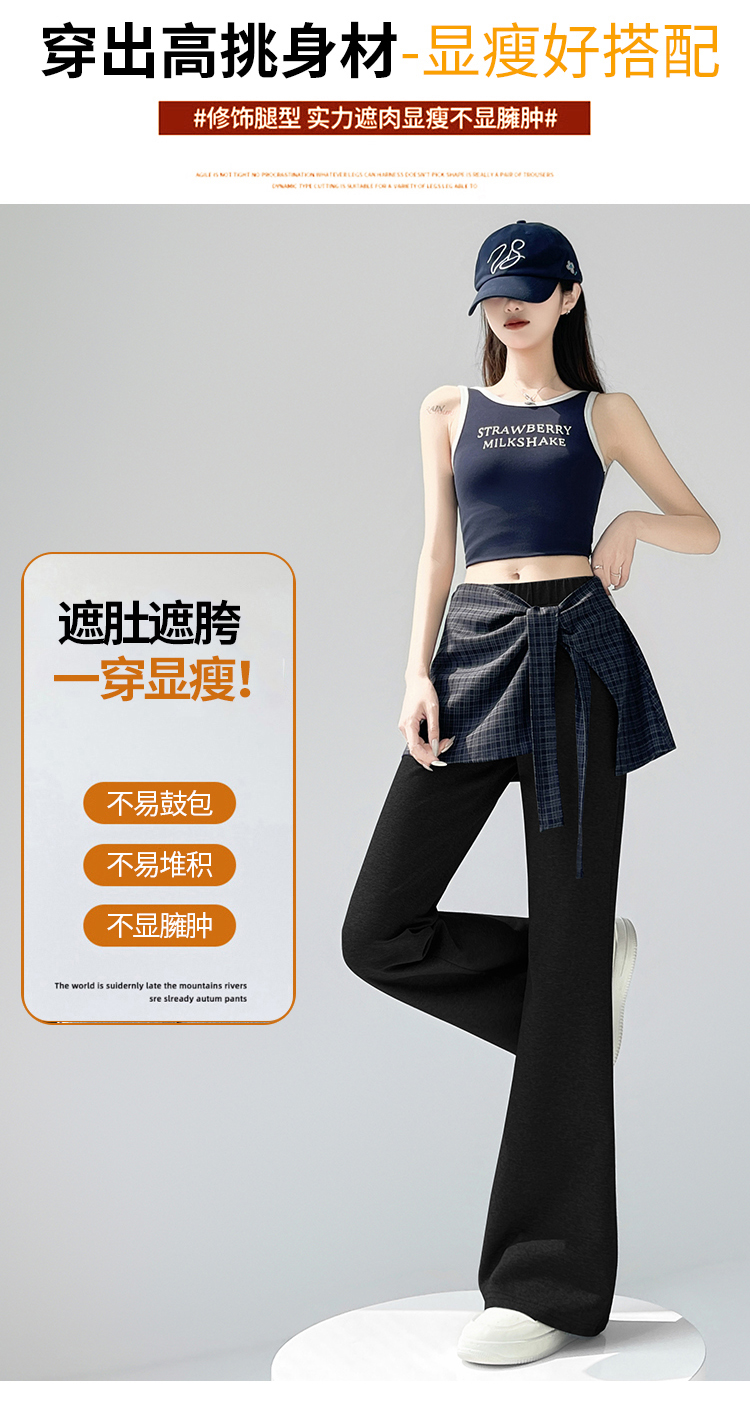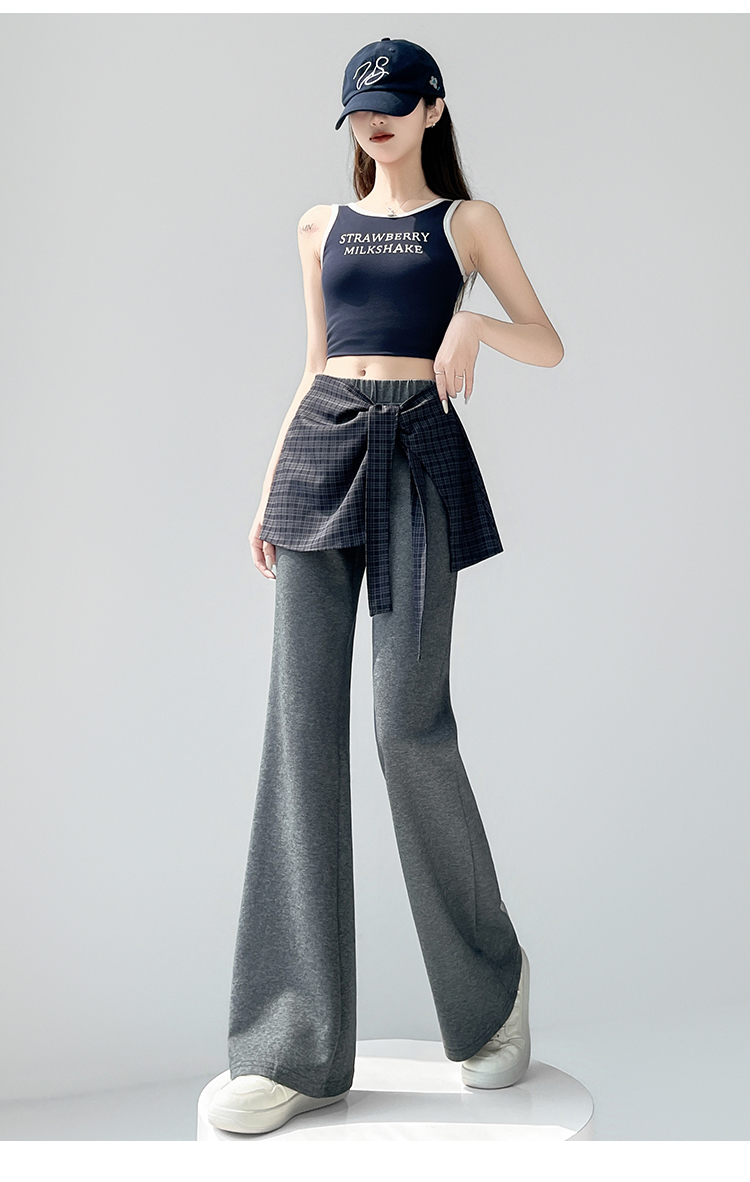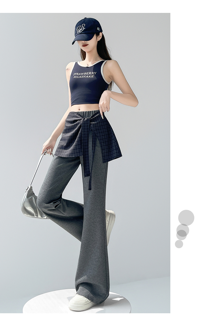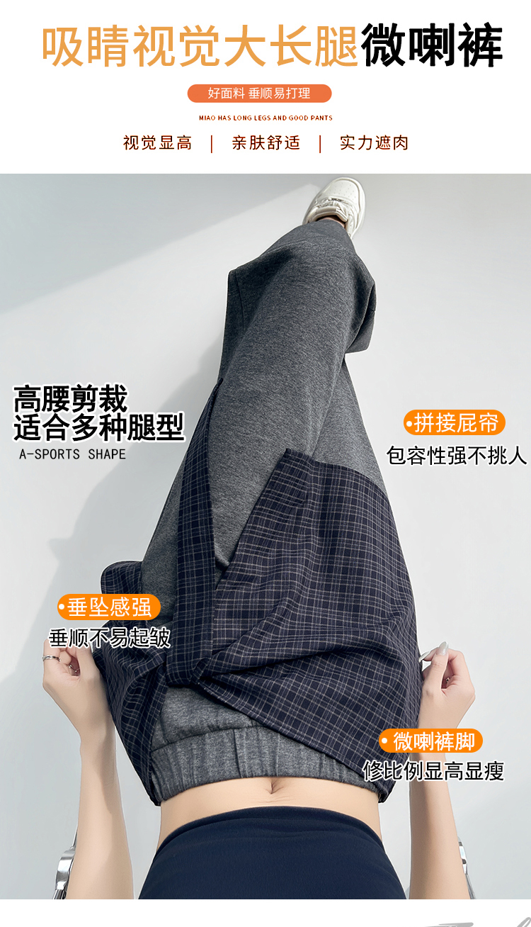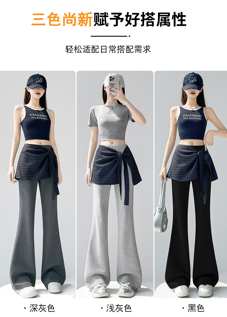 假两件格纹屁帘空气棉微喇裤女夏新款高腰显瘦百搭休闲弹力喇叭裤
