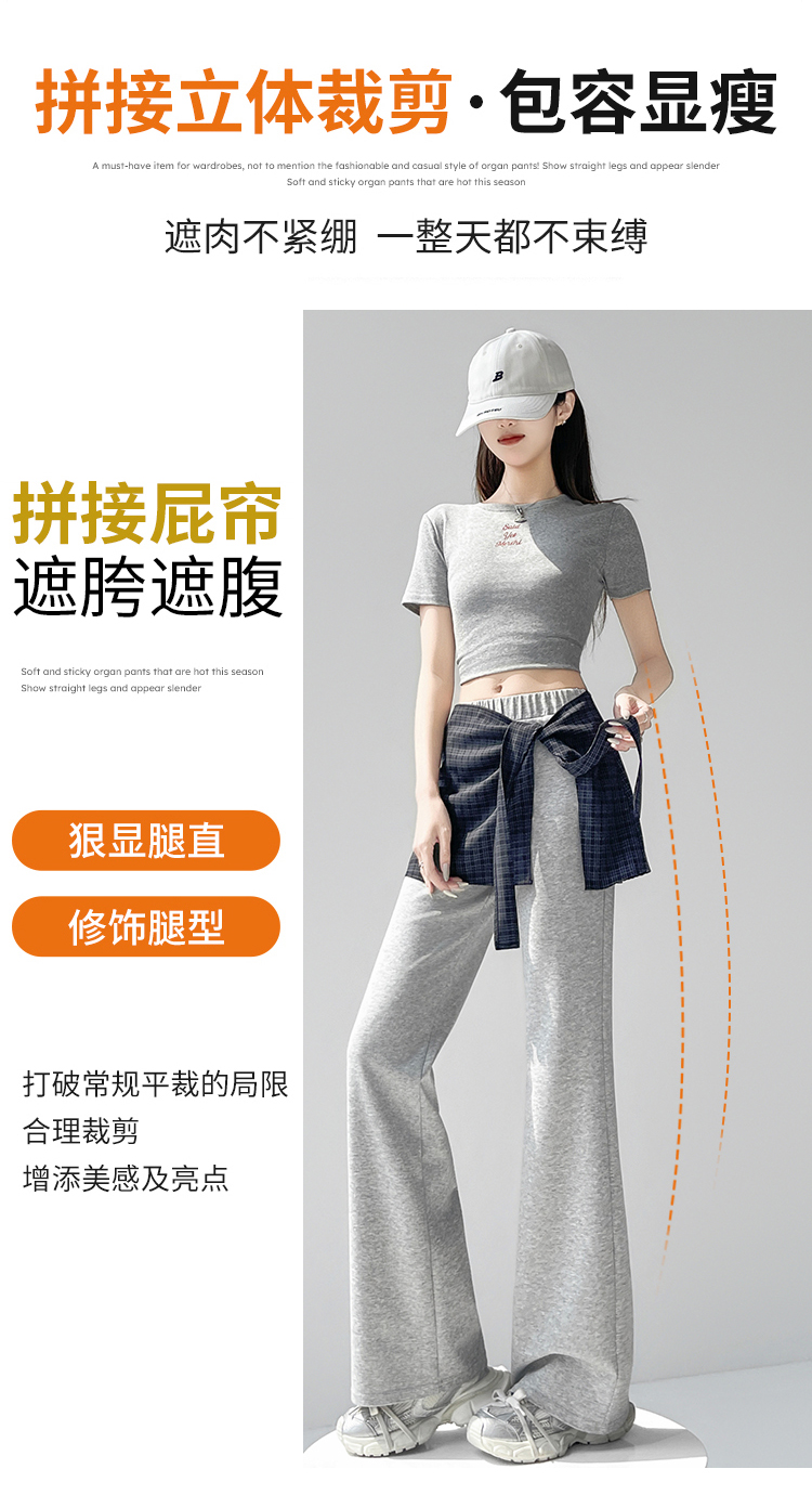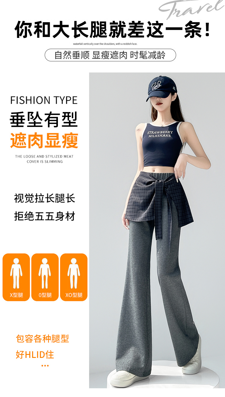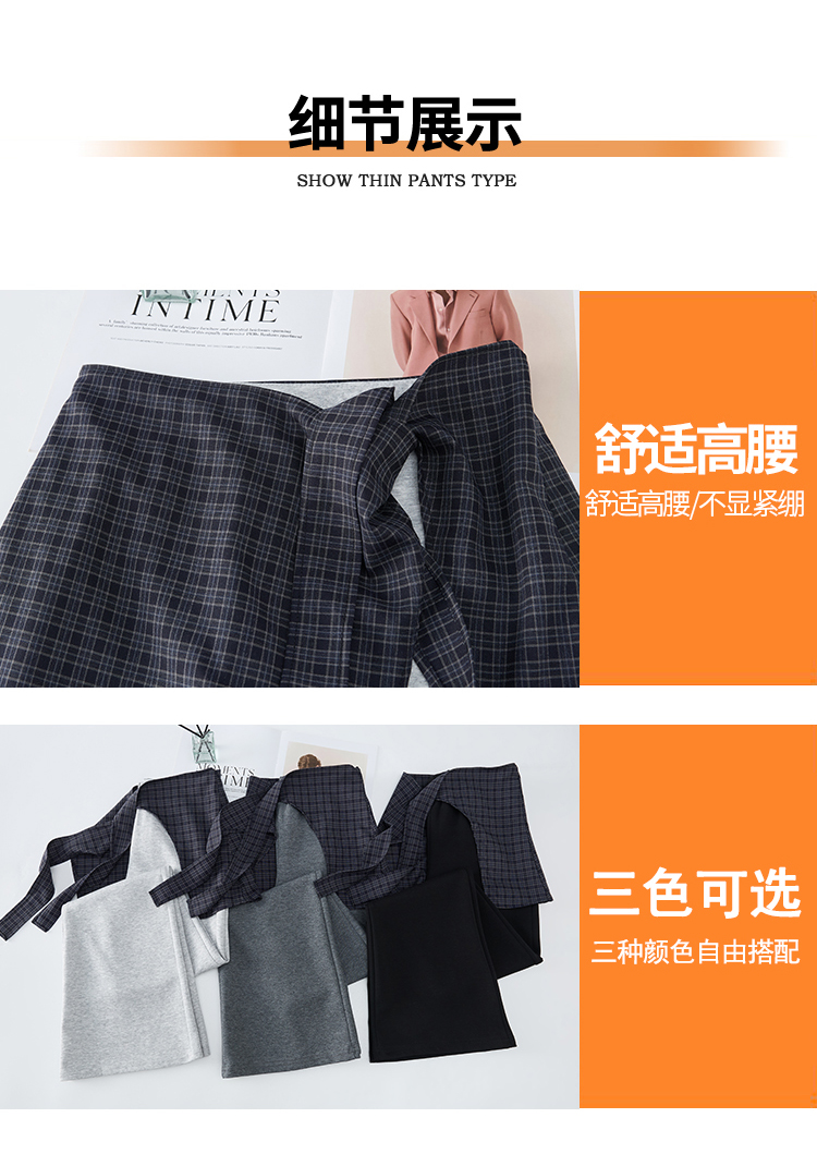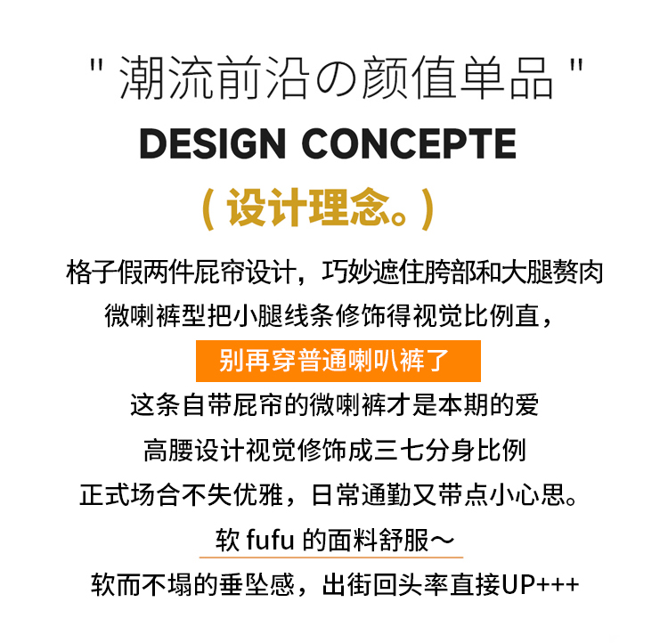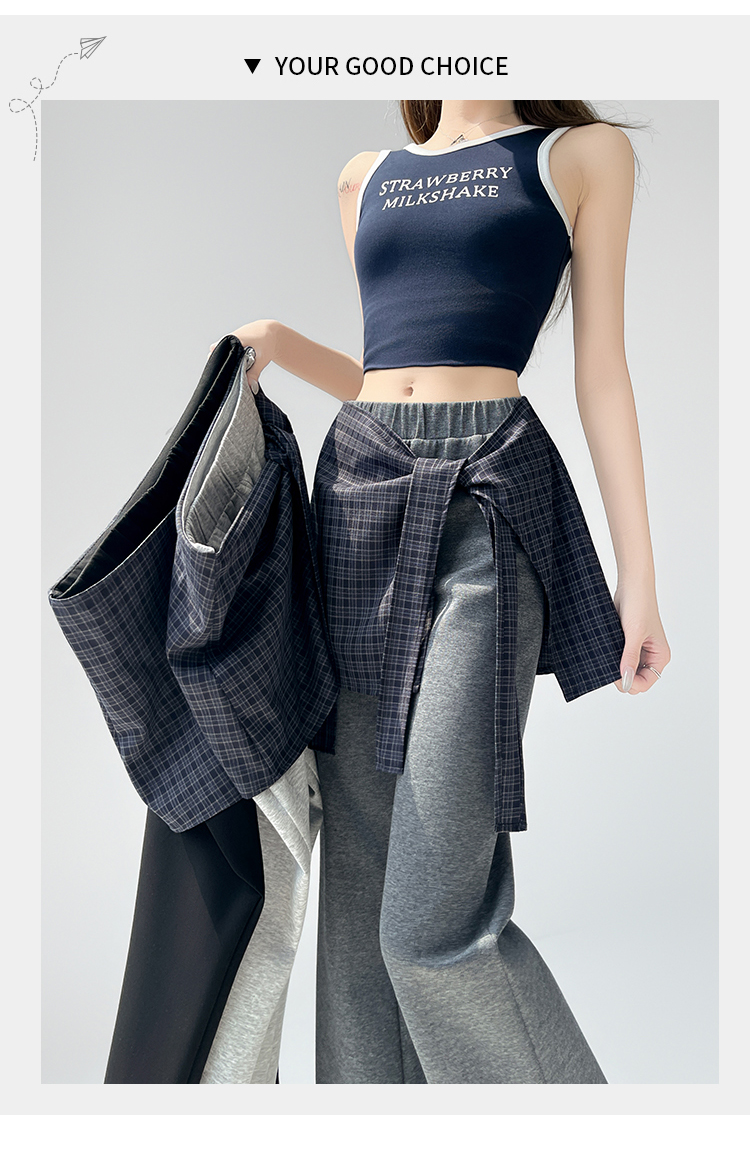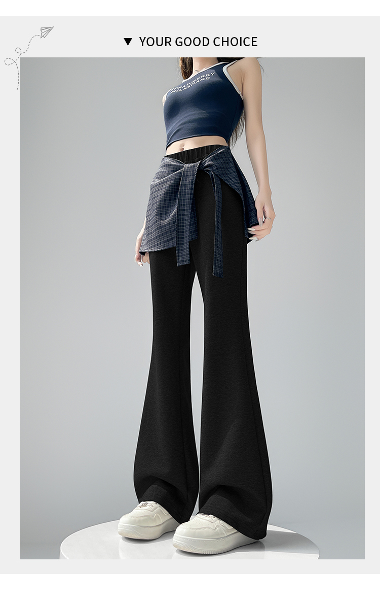假两件格纹屁帘空气棉微喇裤女夏新款高腰显瘦百搭休闲弹力喇叭裤