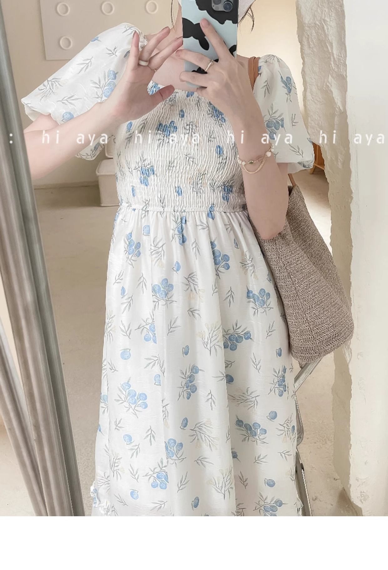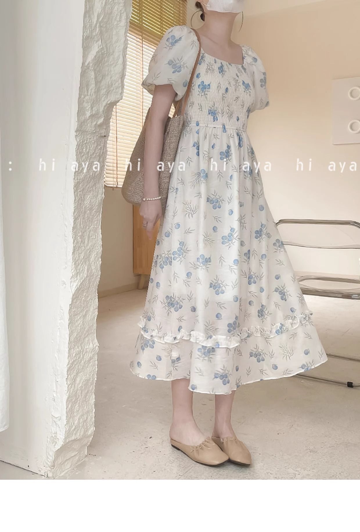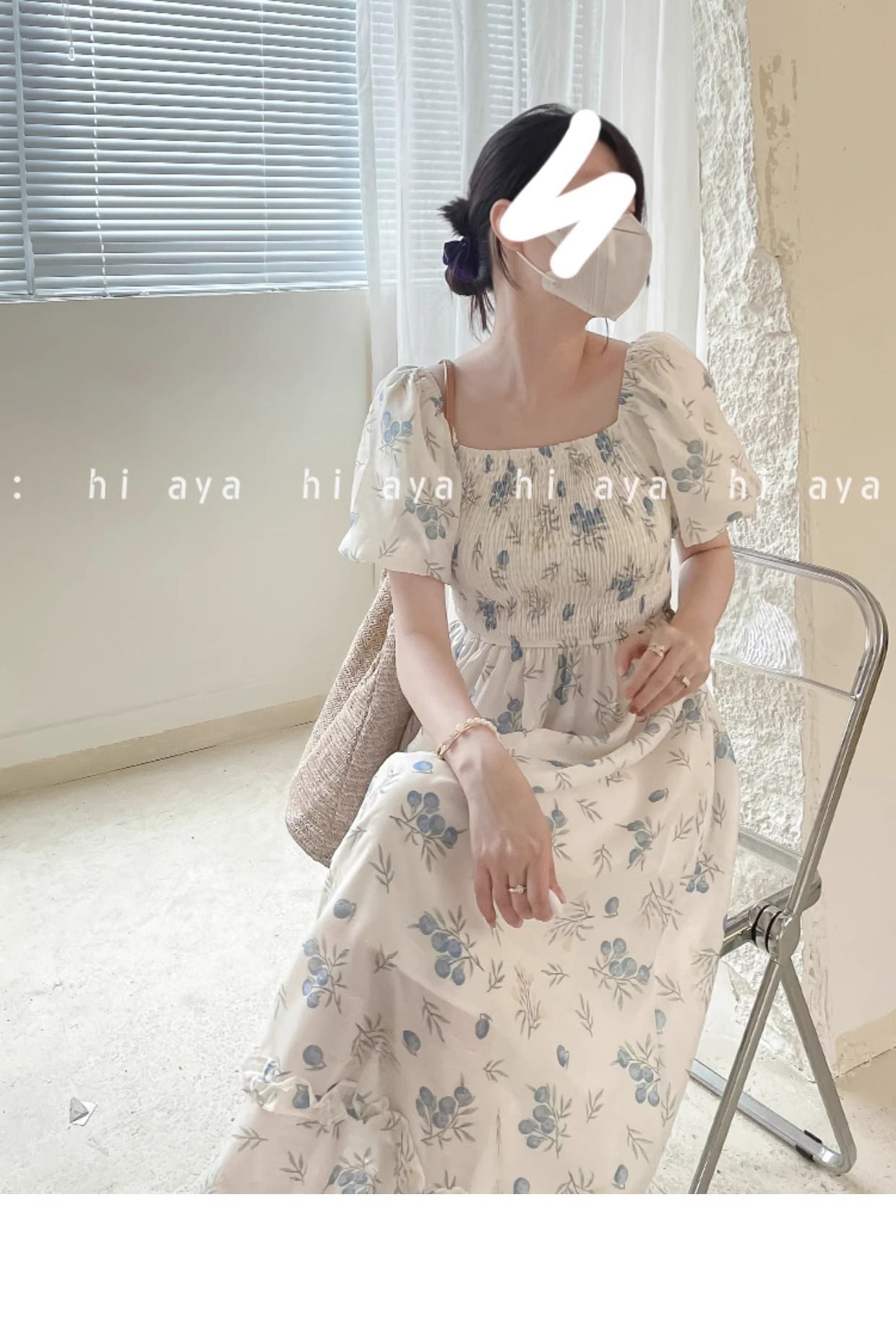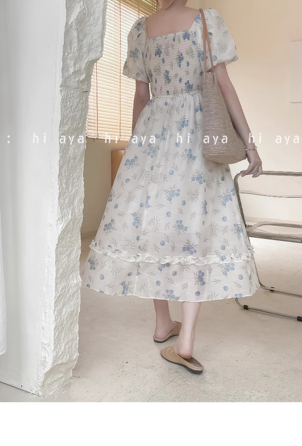 2026年夏季印花方领花色泡泡袖长款温柔风法式设计小众氛围碎花裙