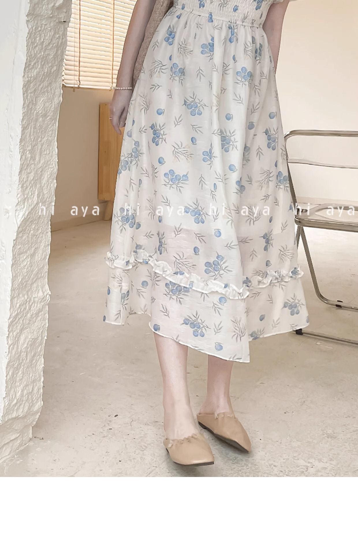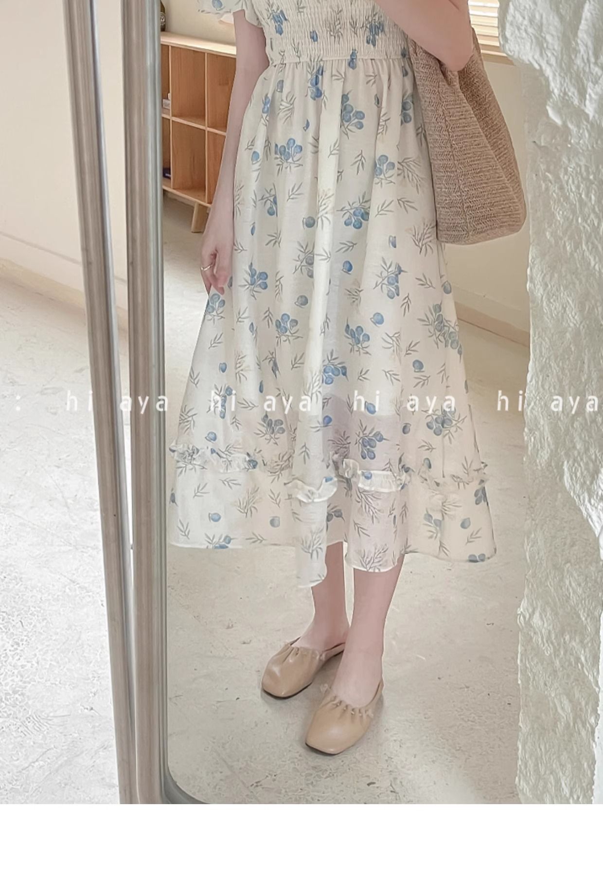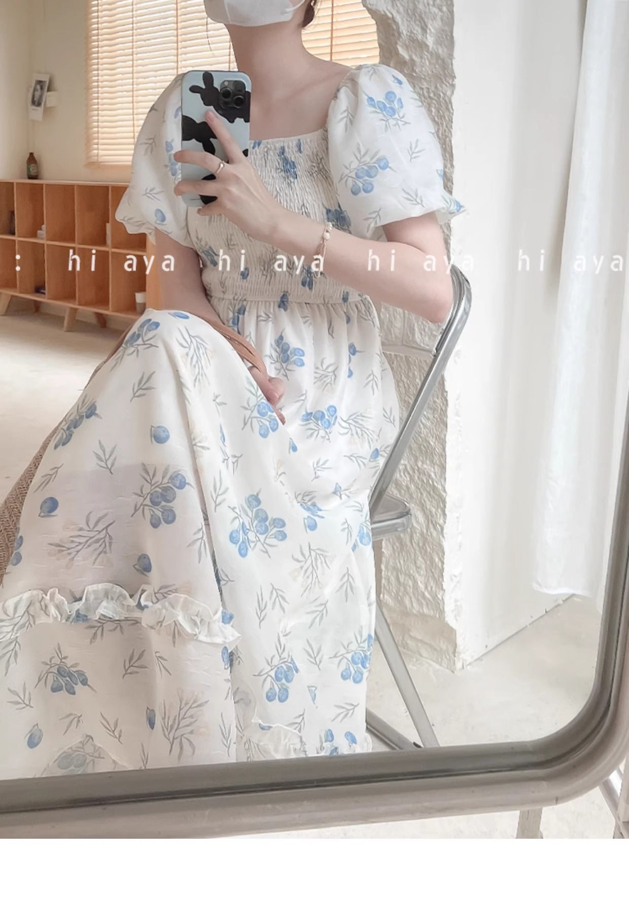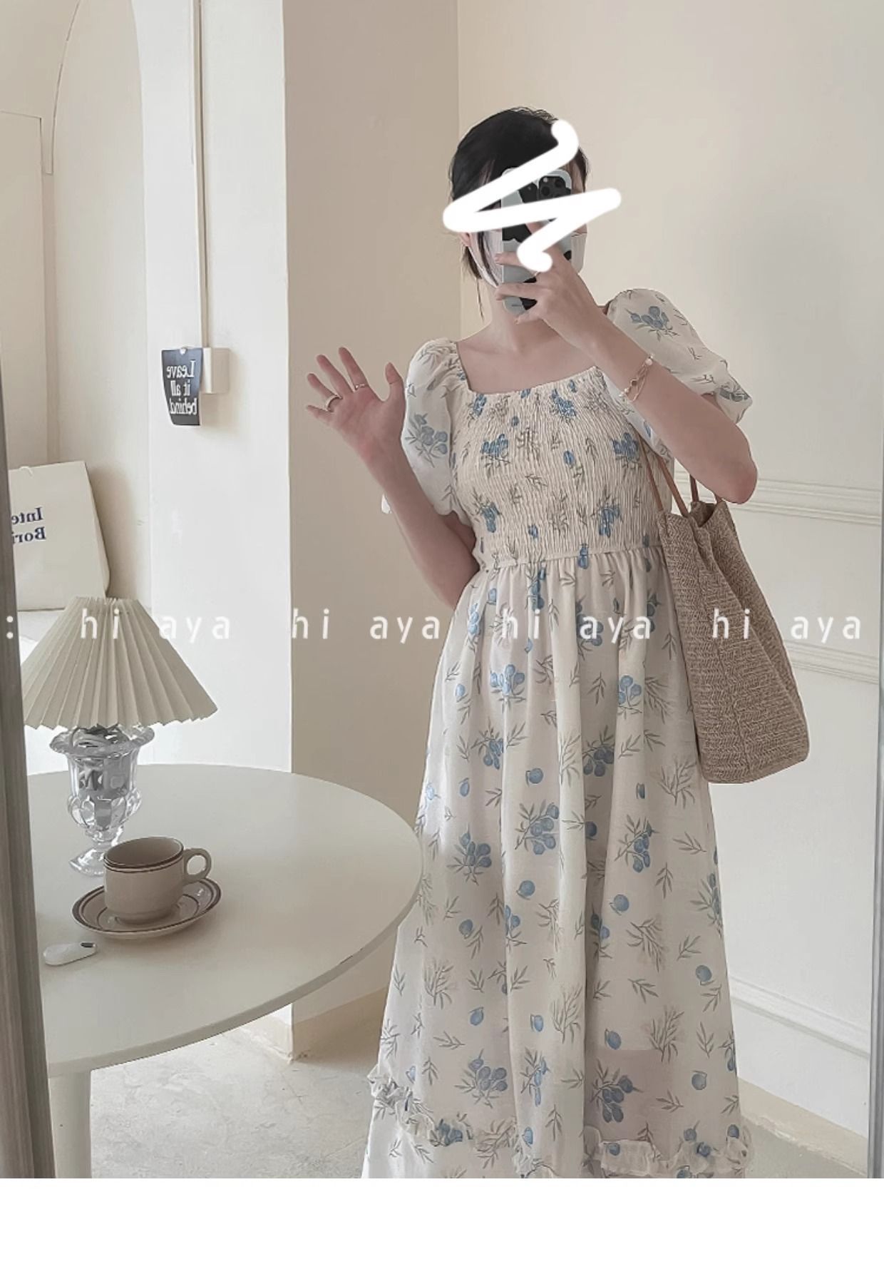 2026年夏季印花方领花色泡泡袖长款温柔风法式设计小众氛围碎花裙