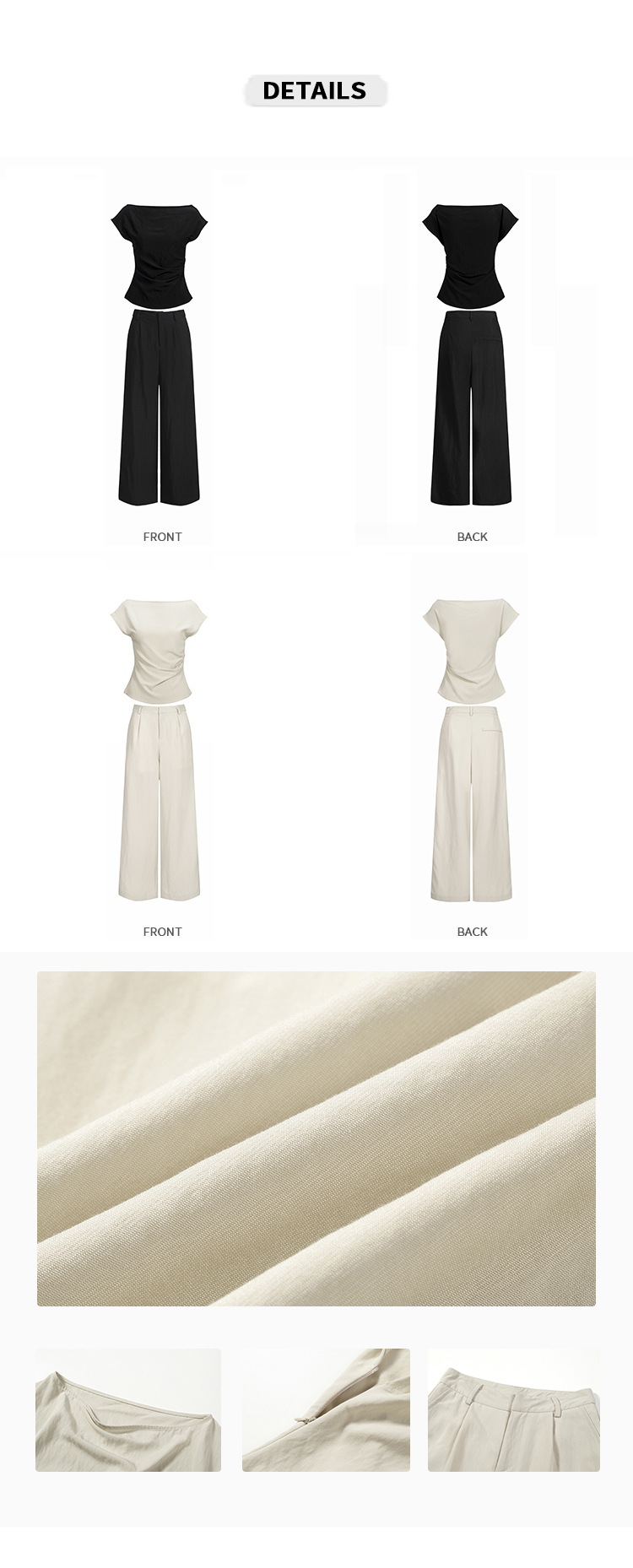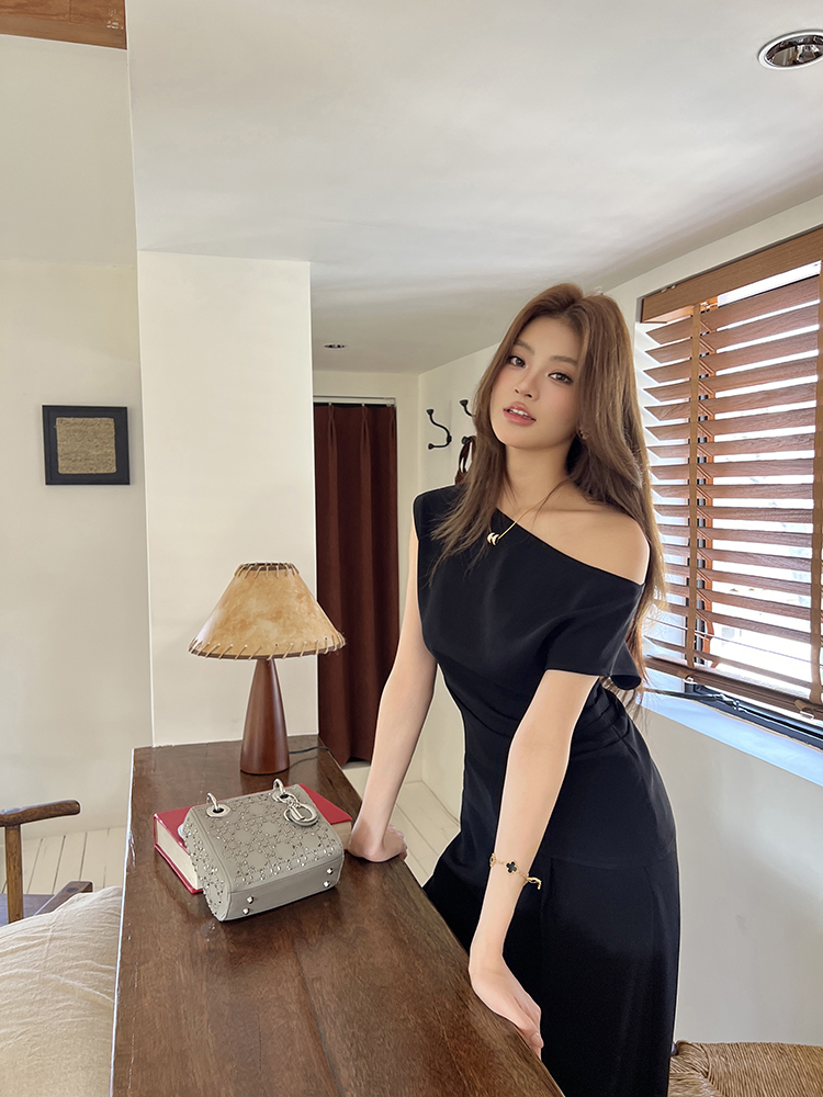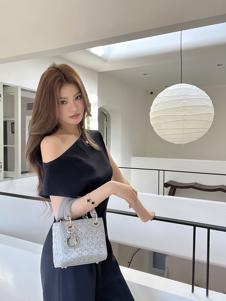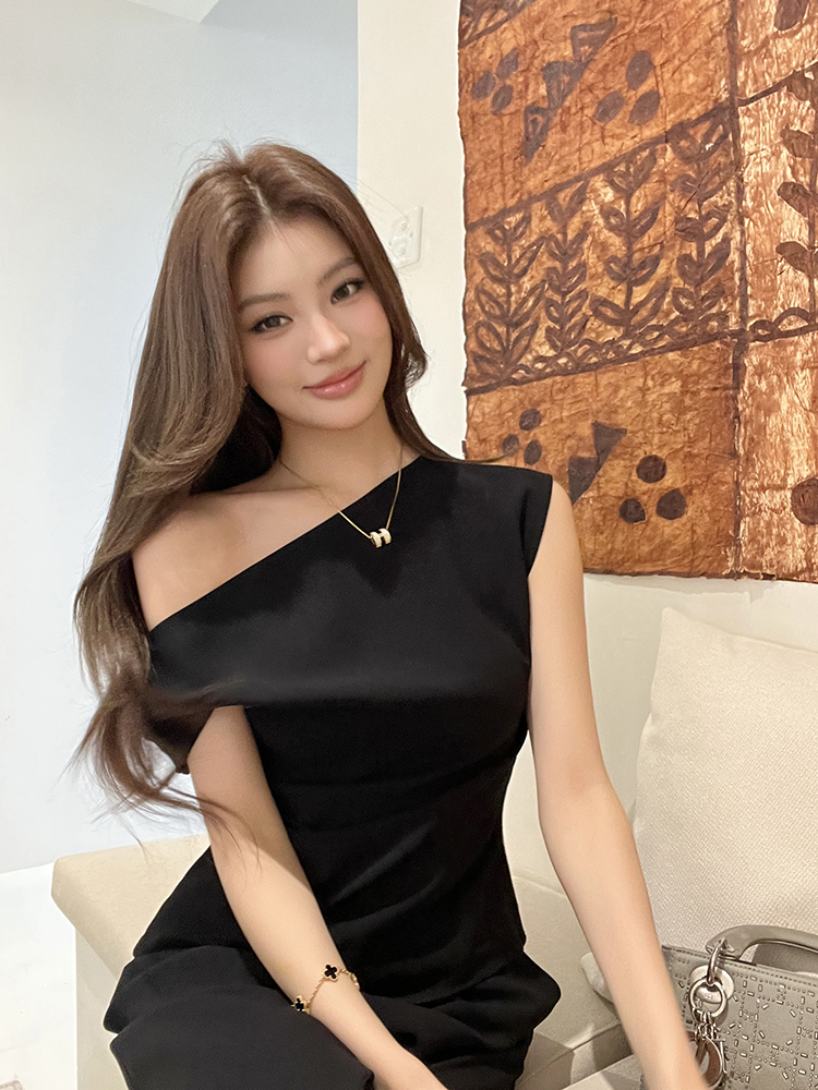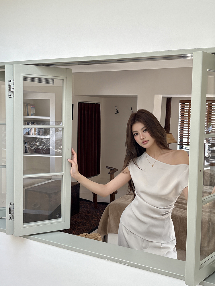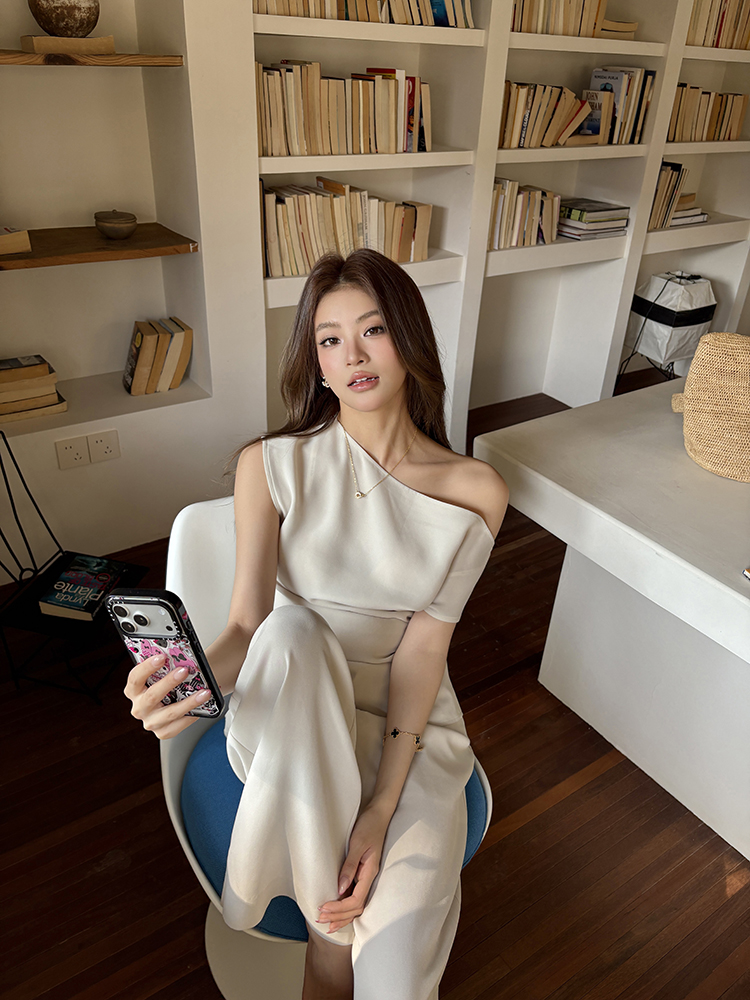 实拍2026春夏新款知性职场通勤斜露肩上衣女休闲裤阔腿裤两件套装