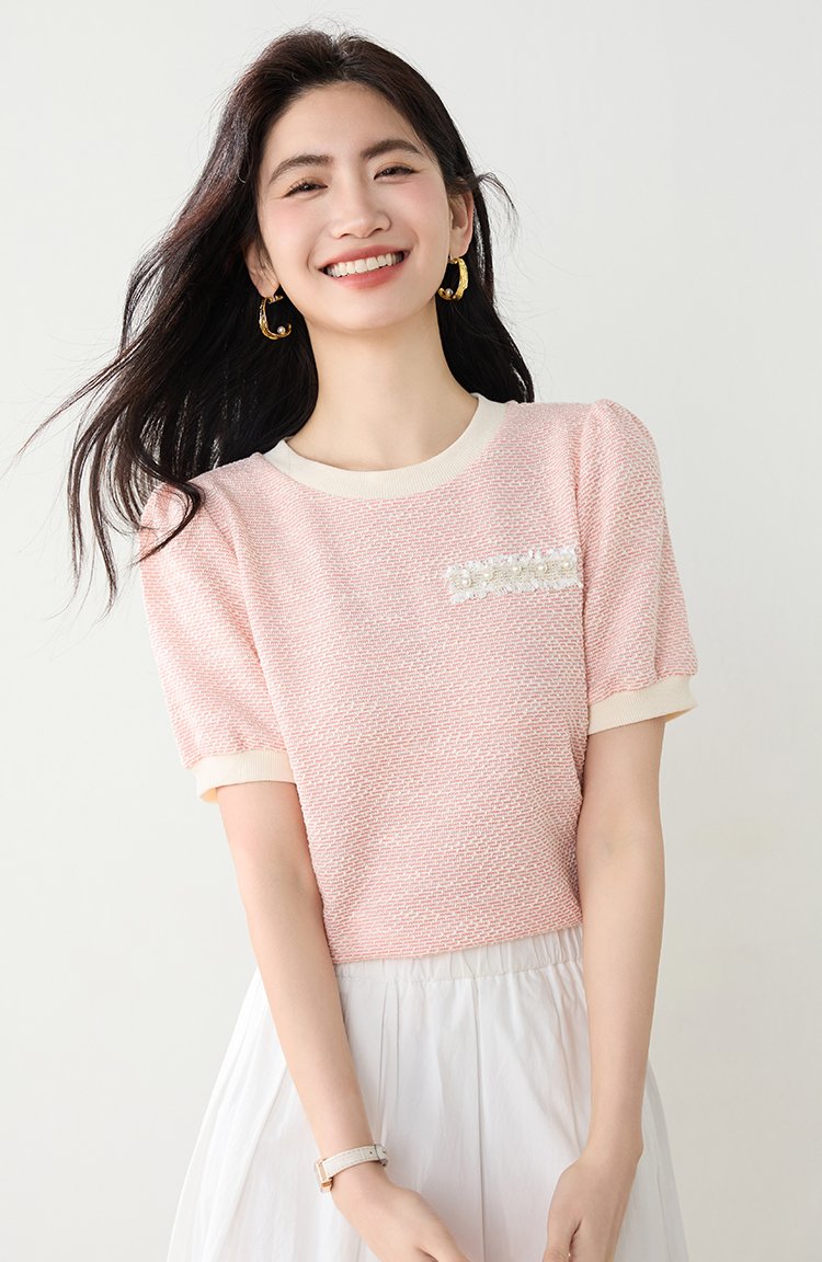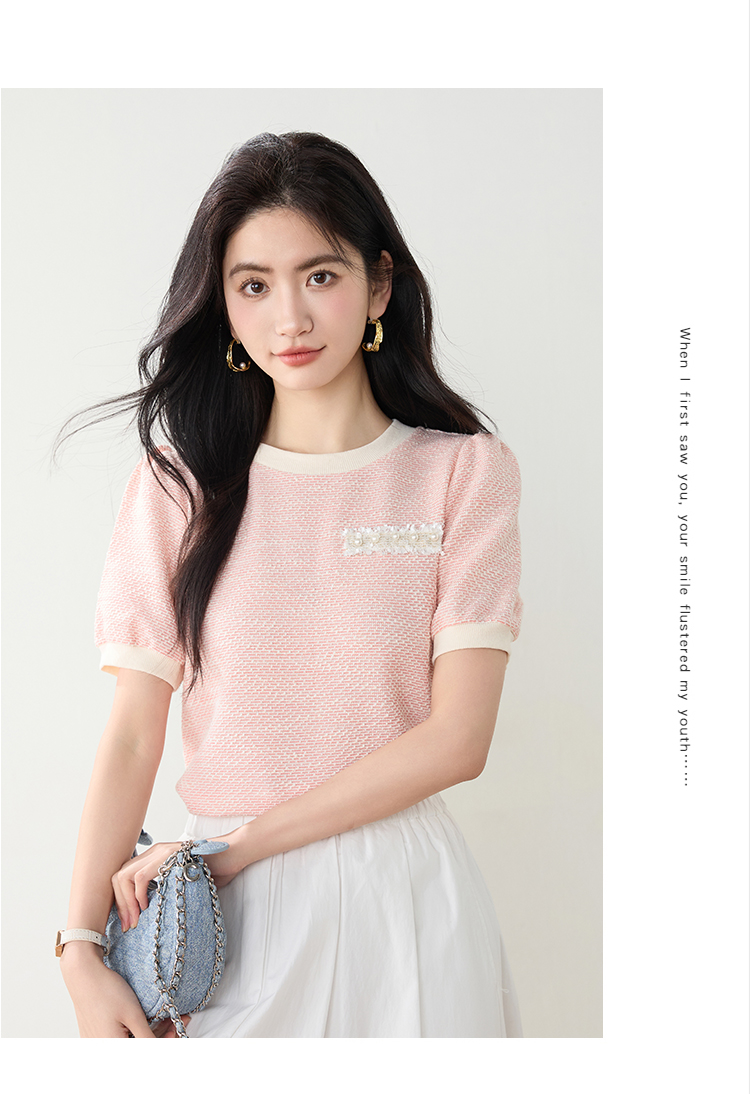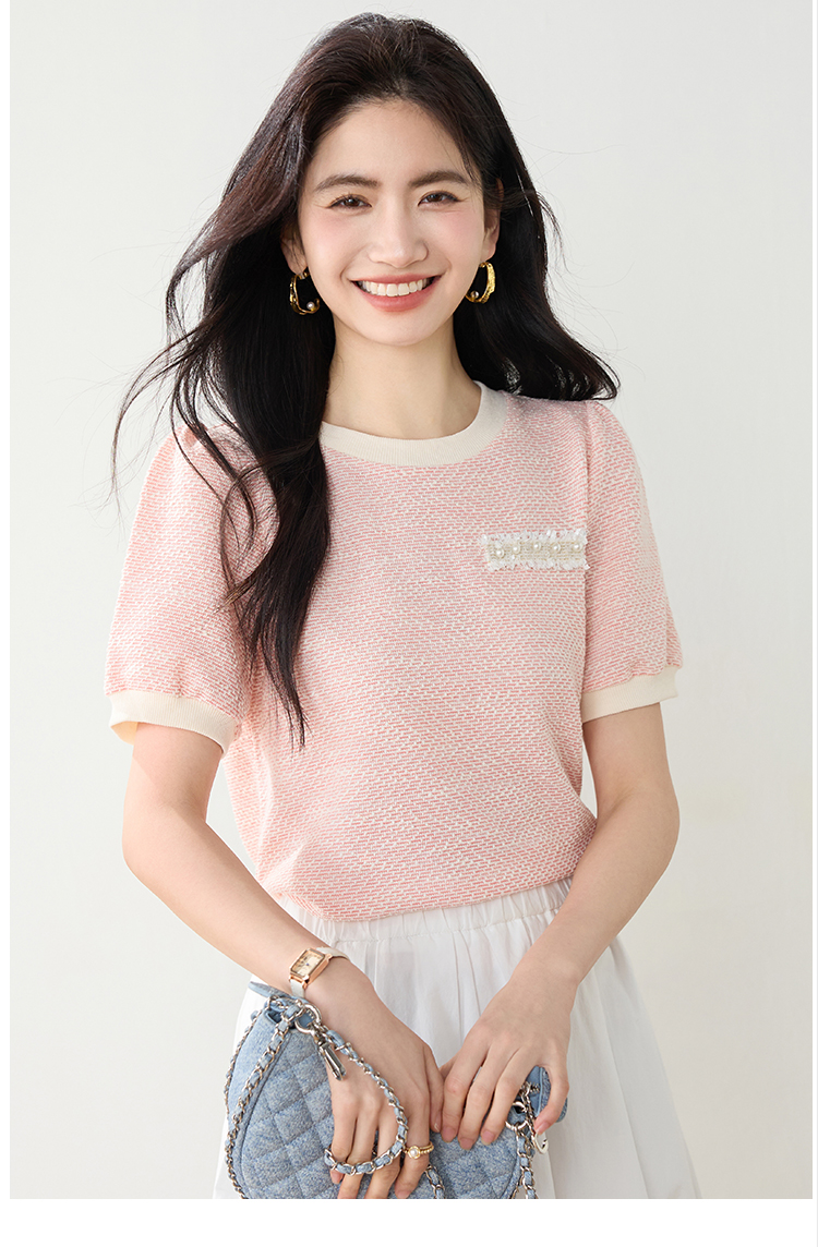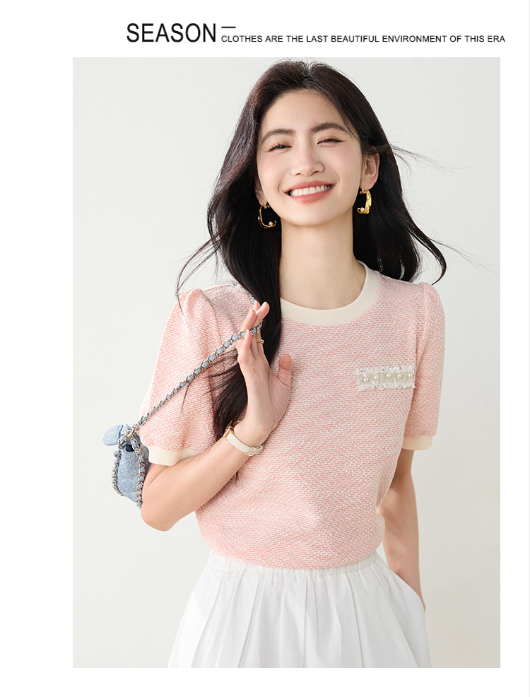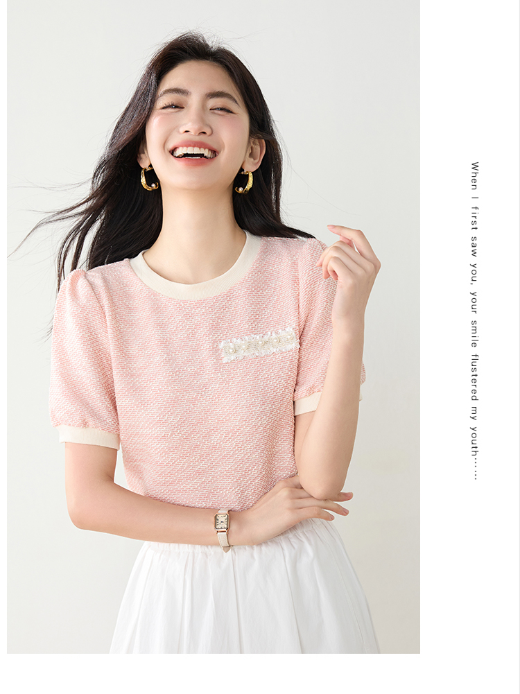 实拍高级感小香风短袖T桖女2026夏装新款设计感甜美套头上衣
