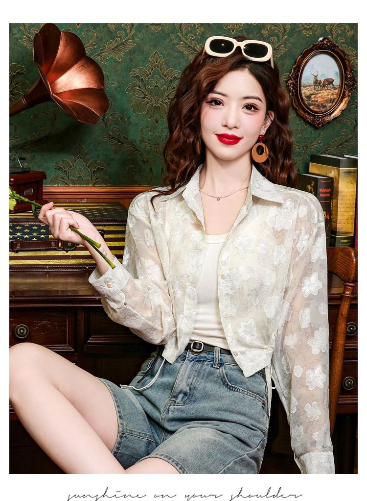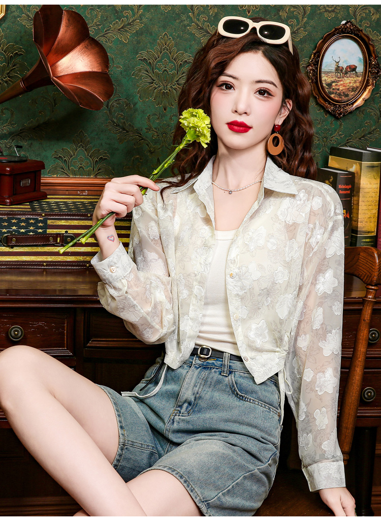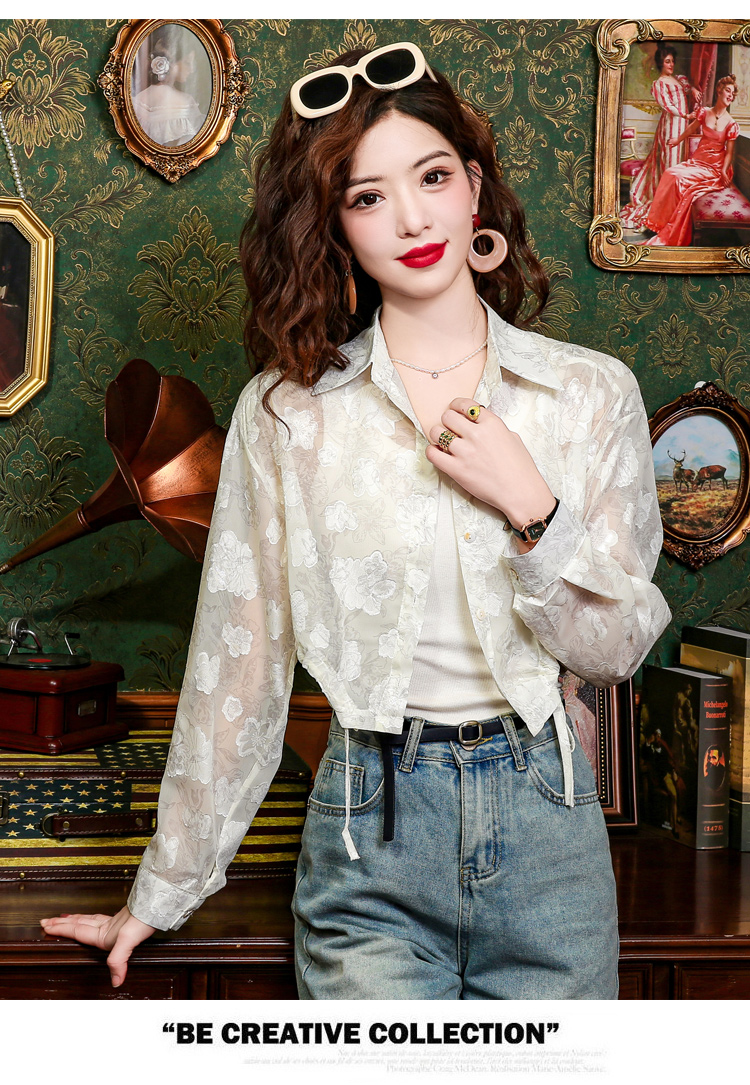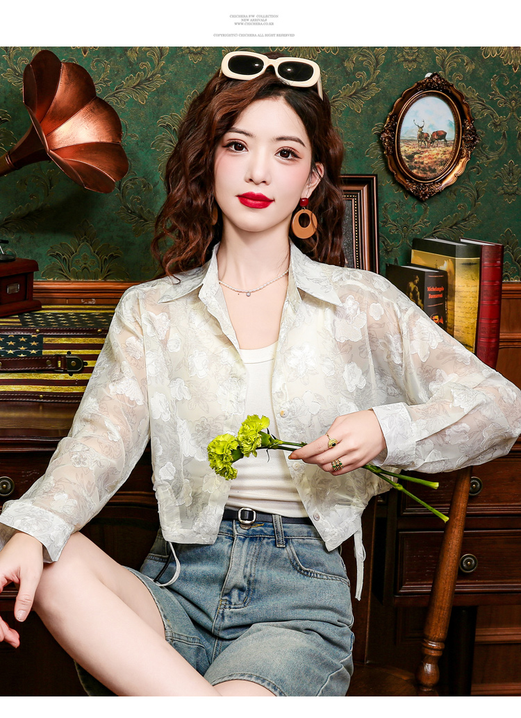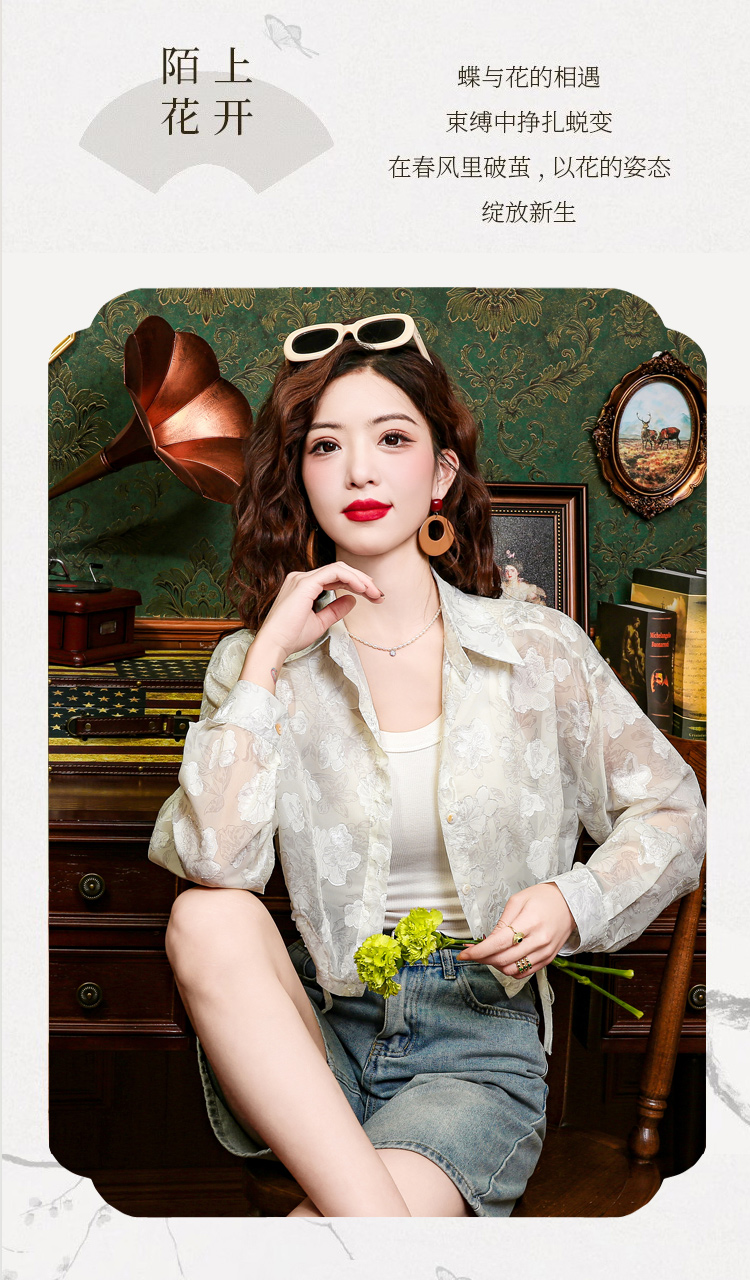 已出货2026碎花雪纺衬衫防晒衣女装夏季长袖薄款开衫上衣短款外套