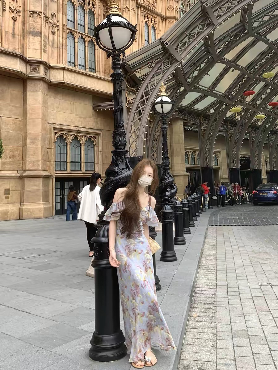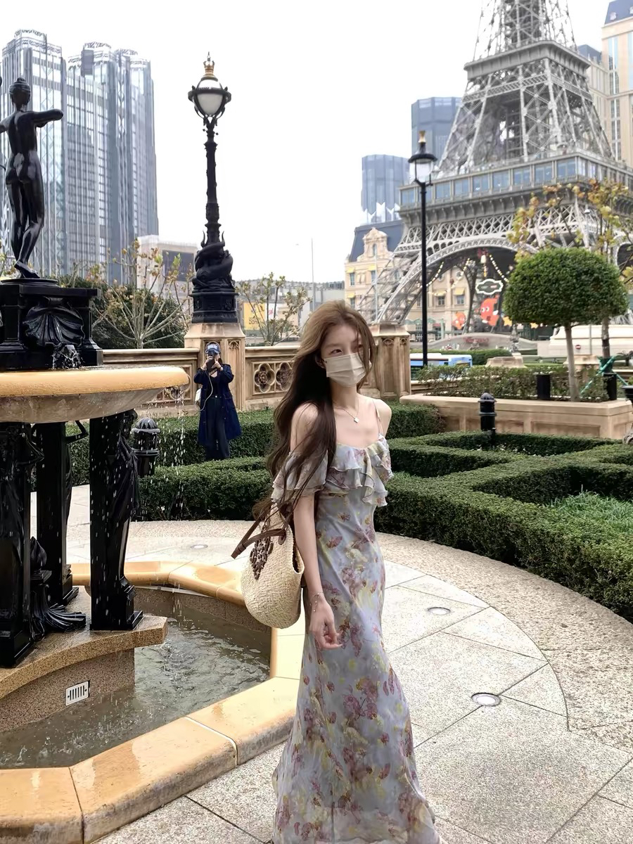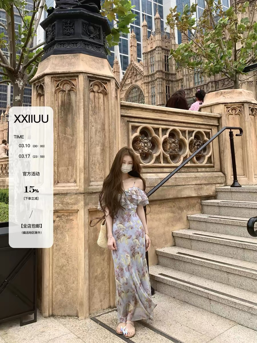 Xxiiuu 海洋之星 春夏新款2026气质吊带碎花连衣裙女a字长裙子
