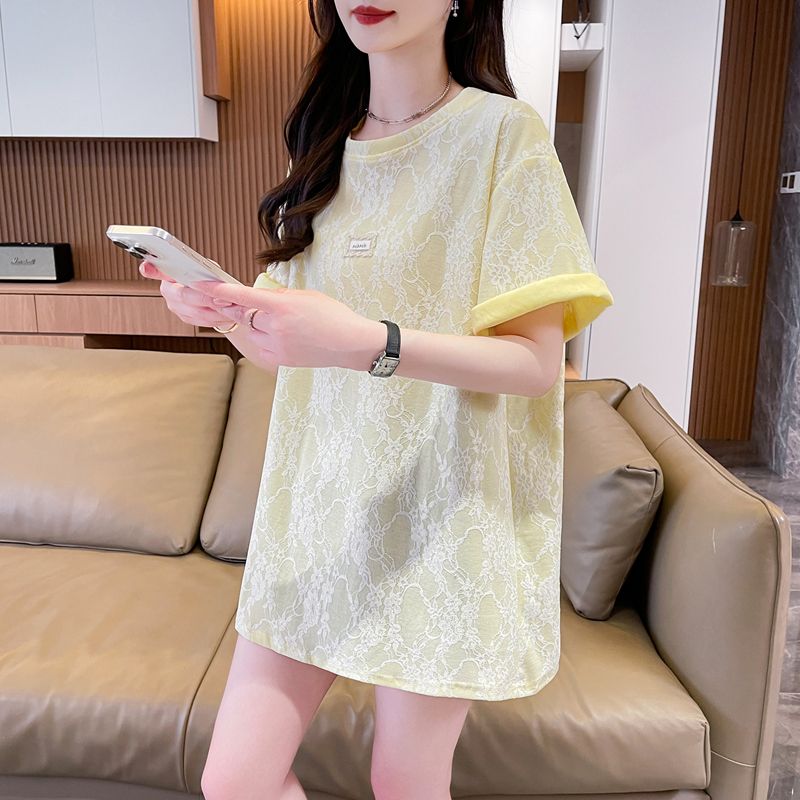 实拍2026夏季100棉大码胖mm宽松百搭圆领上衣短袖t恤女