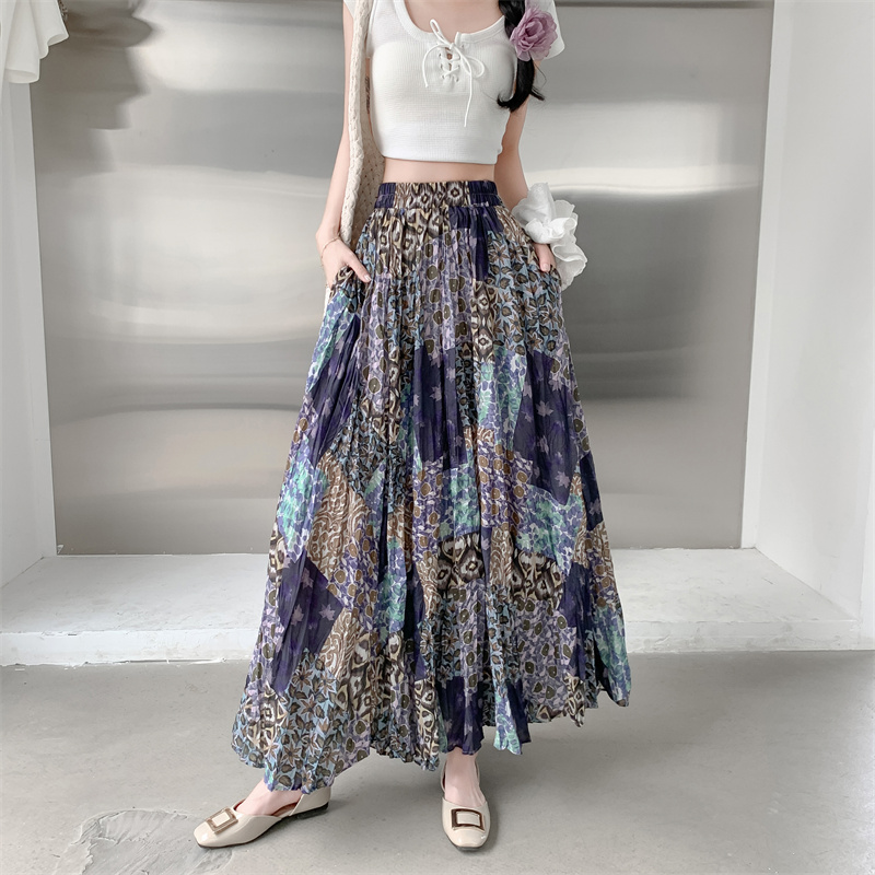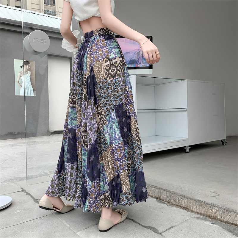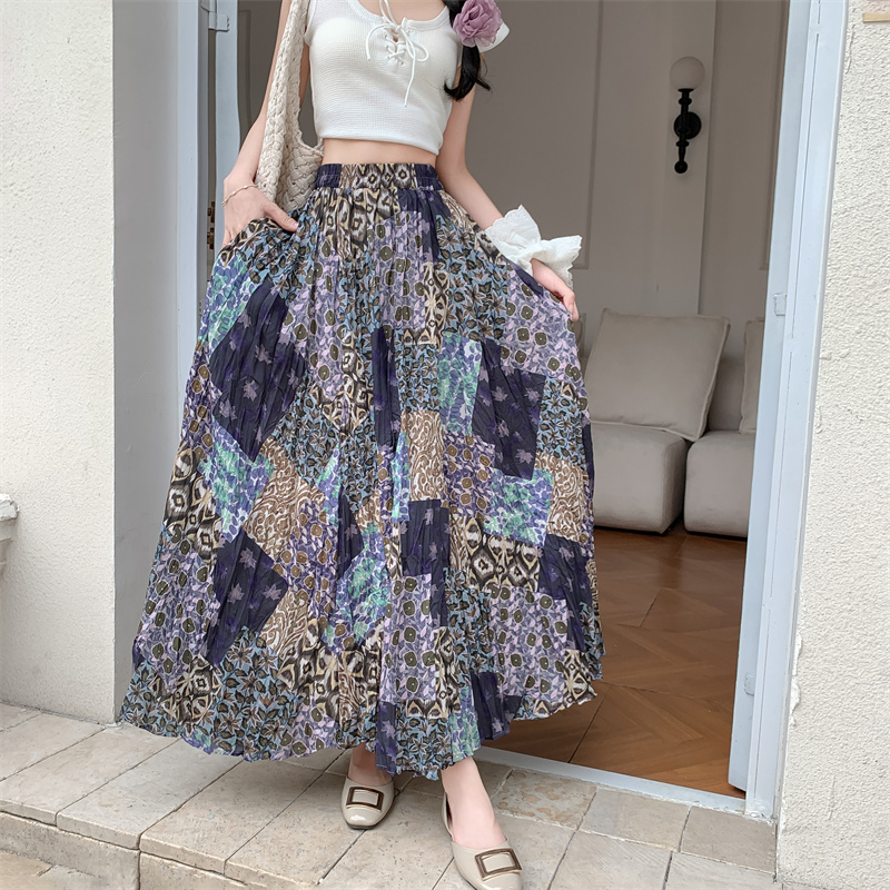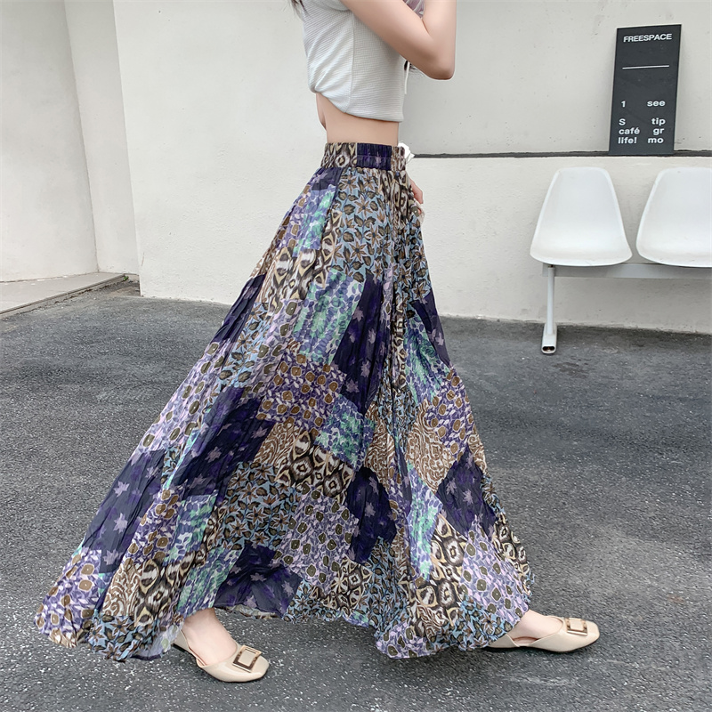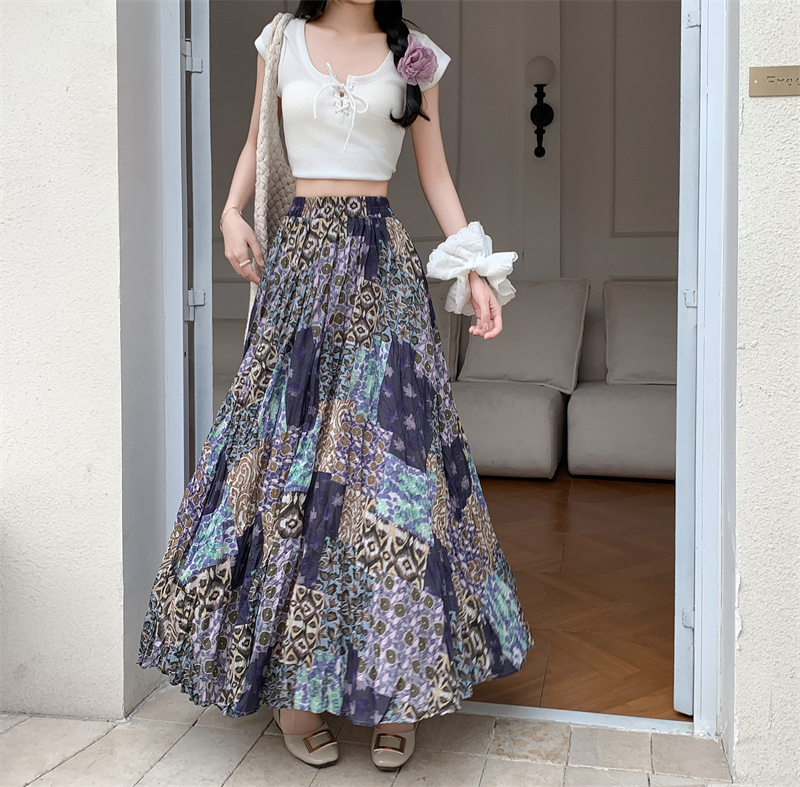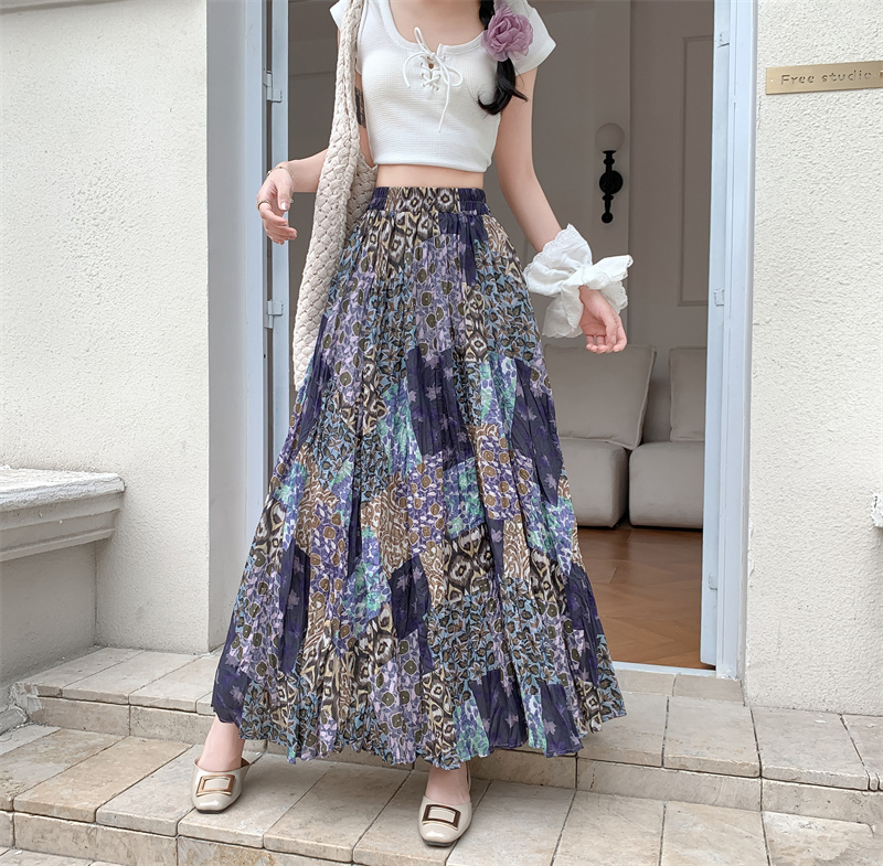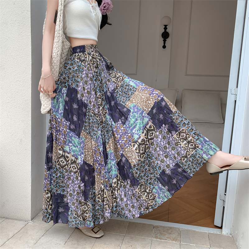 实拍法式复古度假风不规则印花民族风高腰半身裙舒适度假风长裙夏