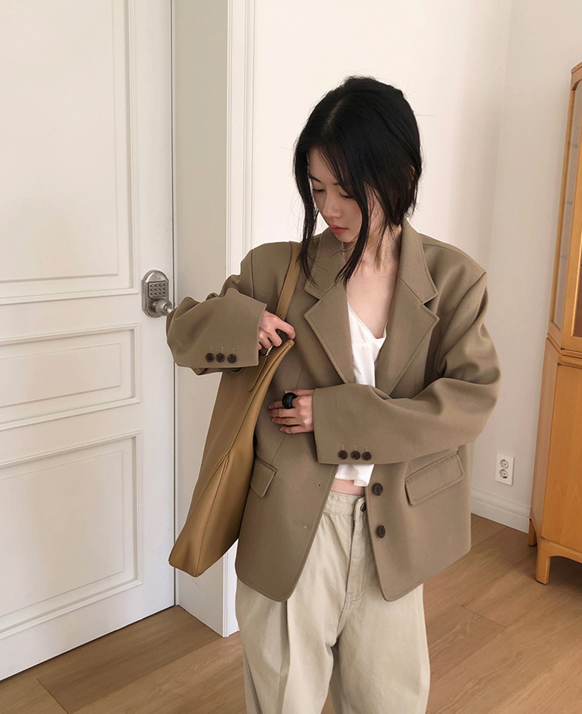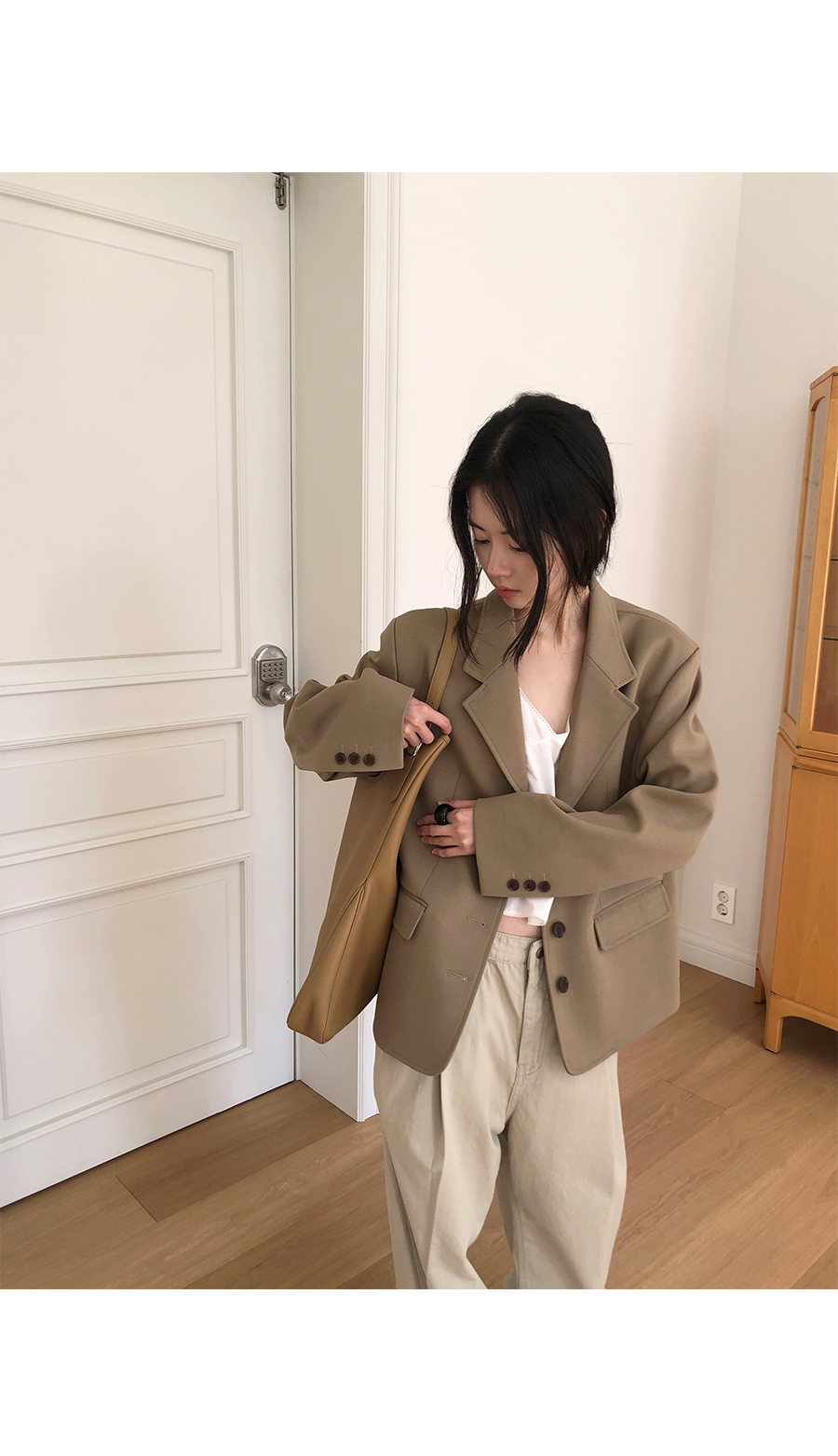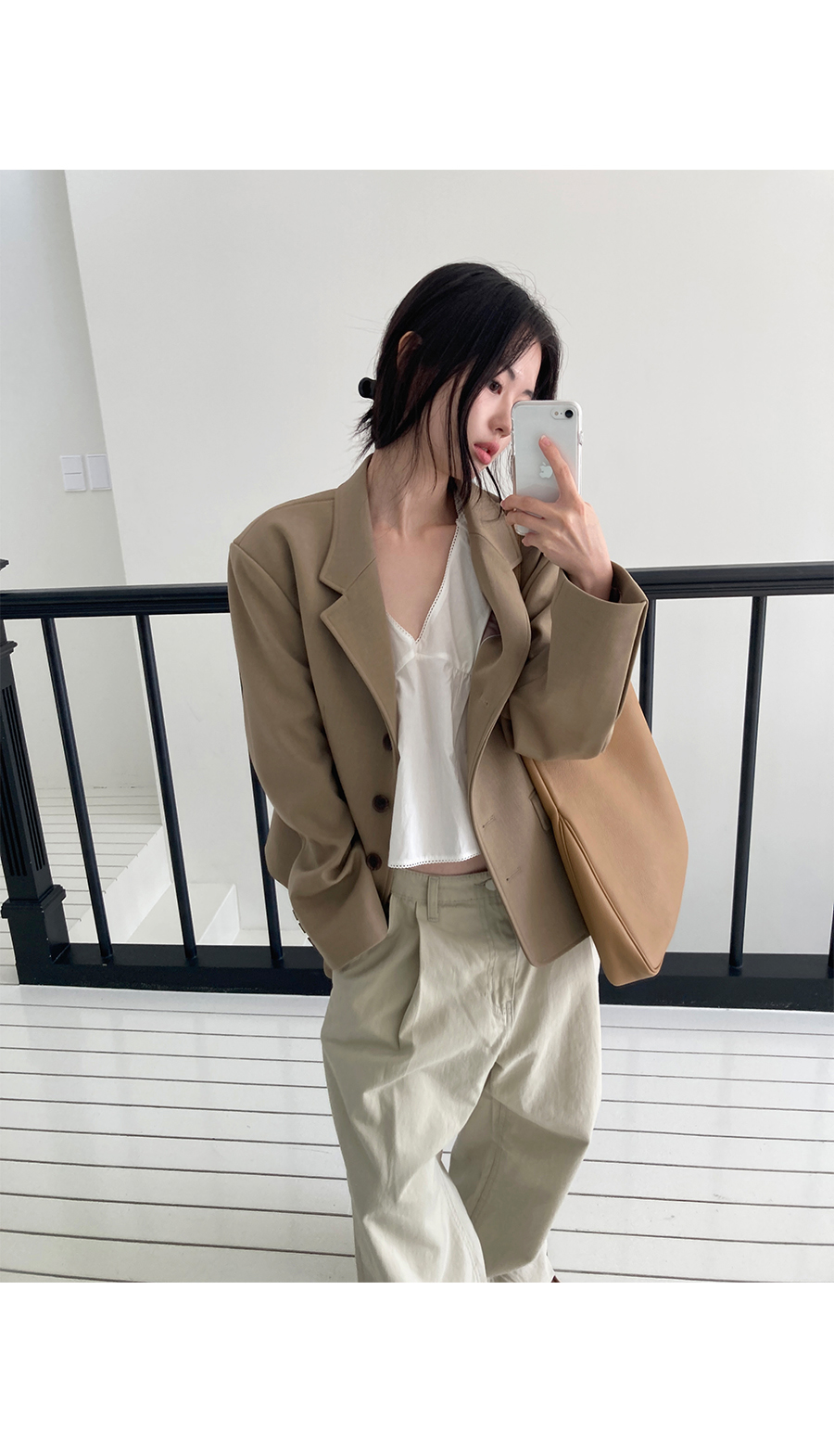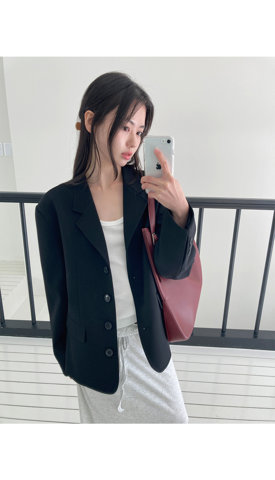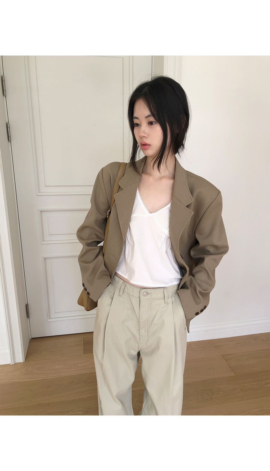 有货ins韩国东大门高级感气质单排扣正肩洋气西装外套短上衣