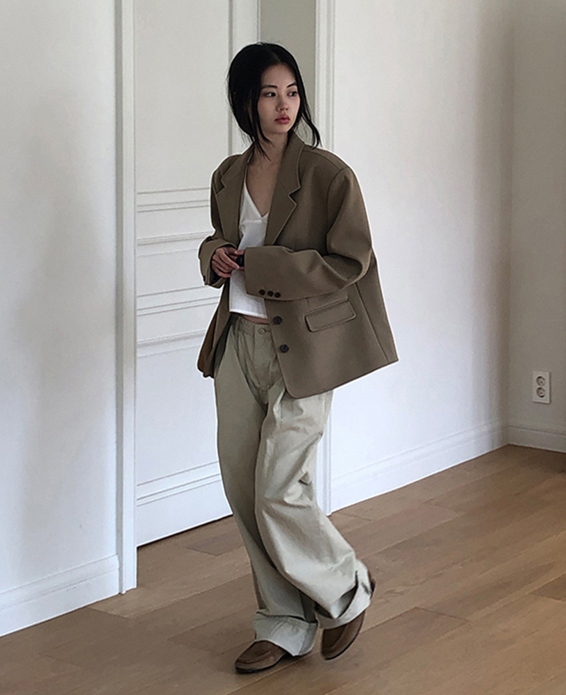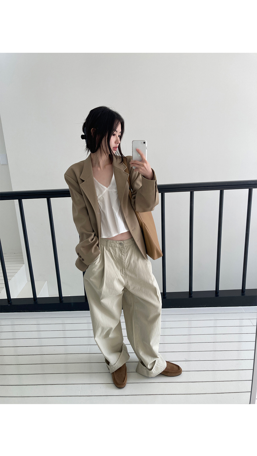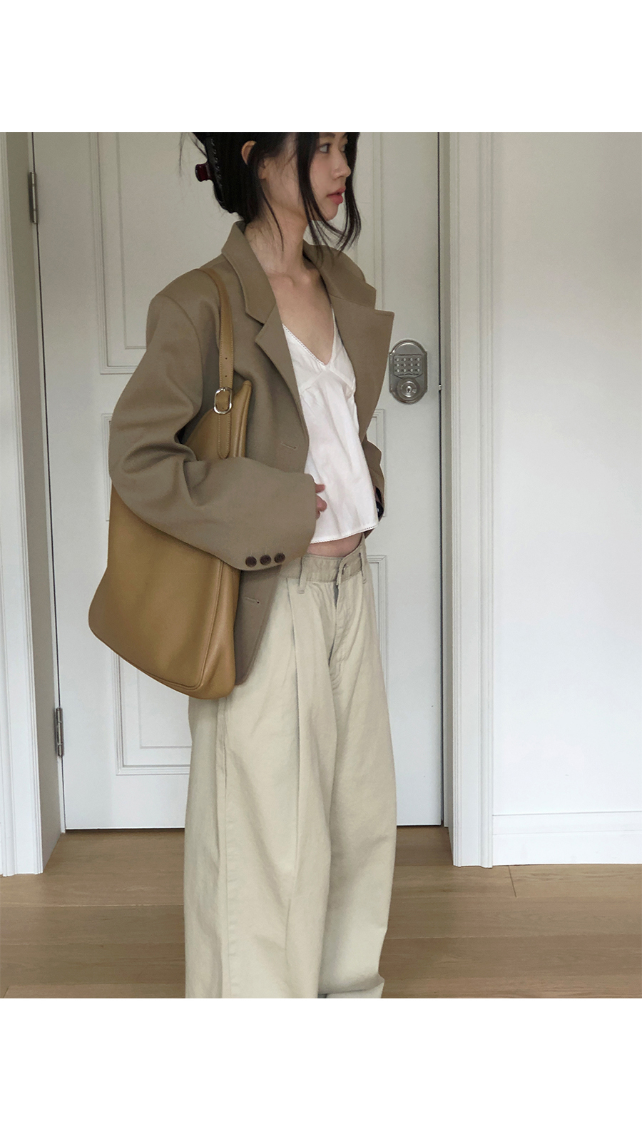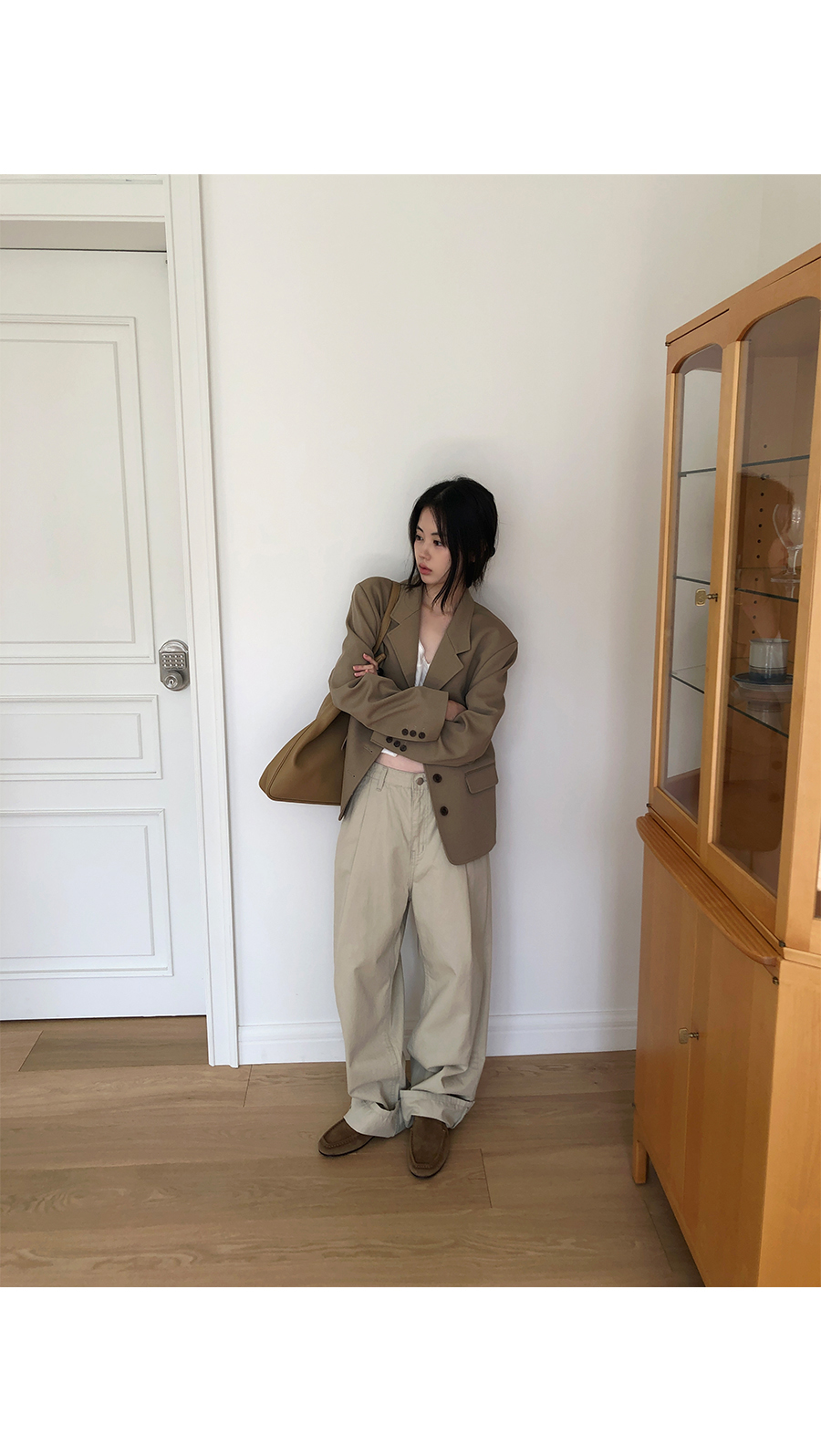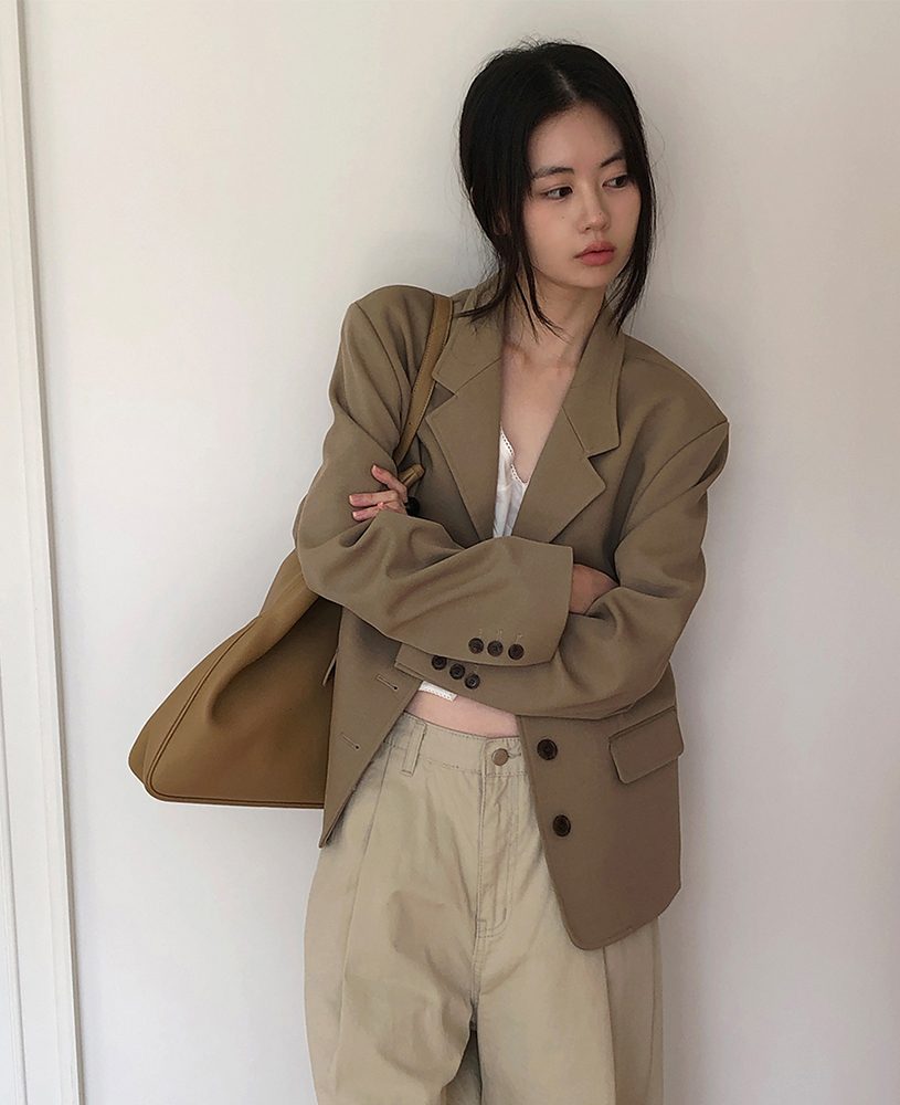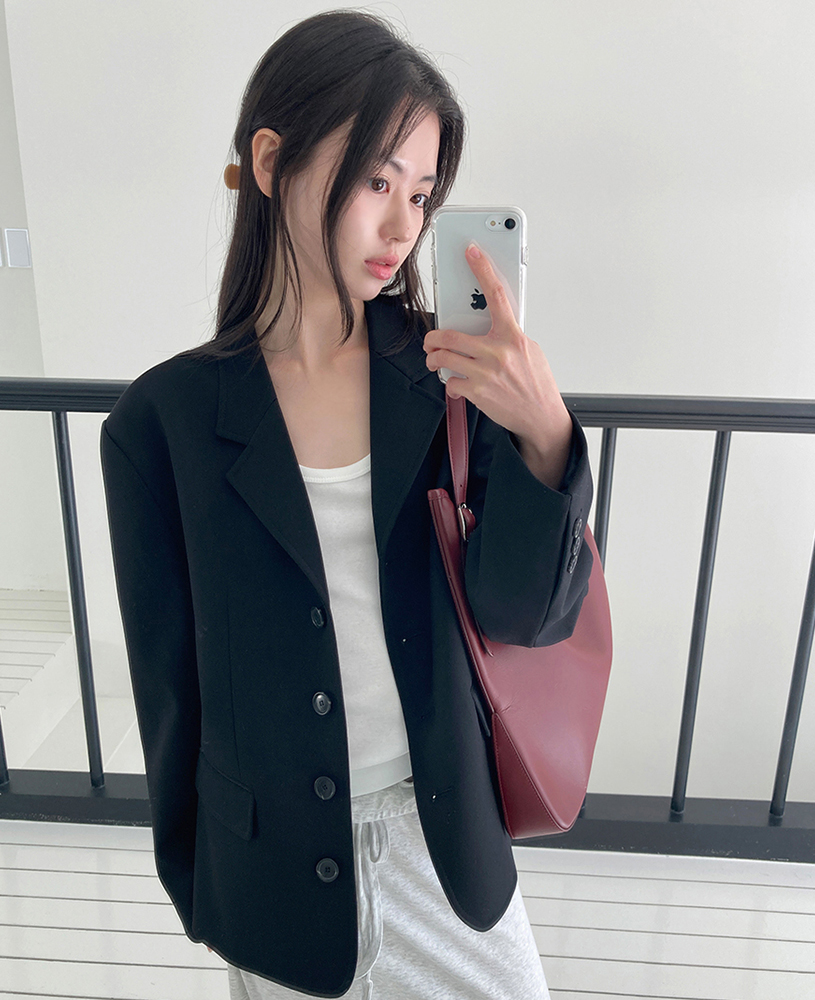 有货ins韩国东大门高级感气质单排扣正肩洋气西装外套短上衣