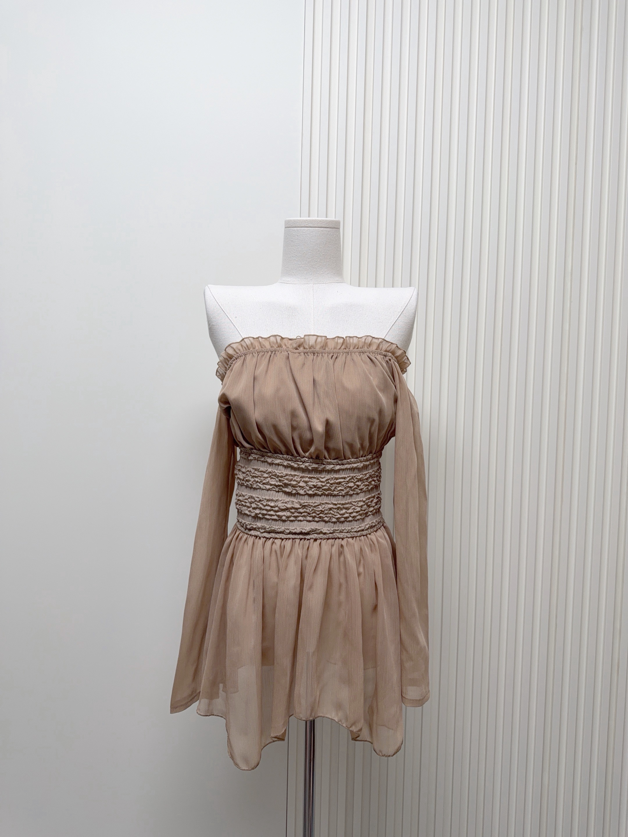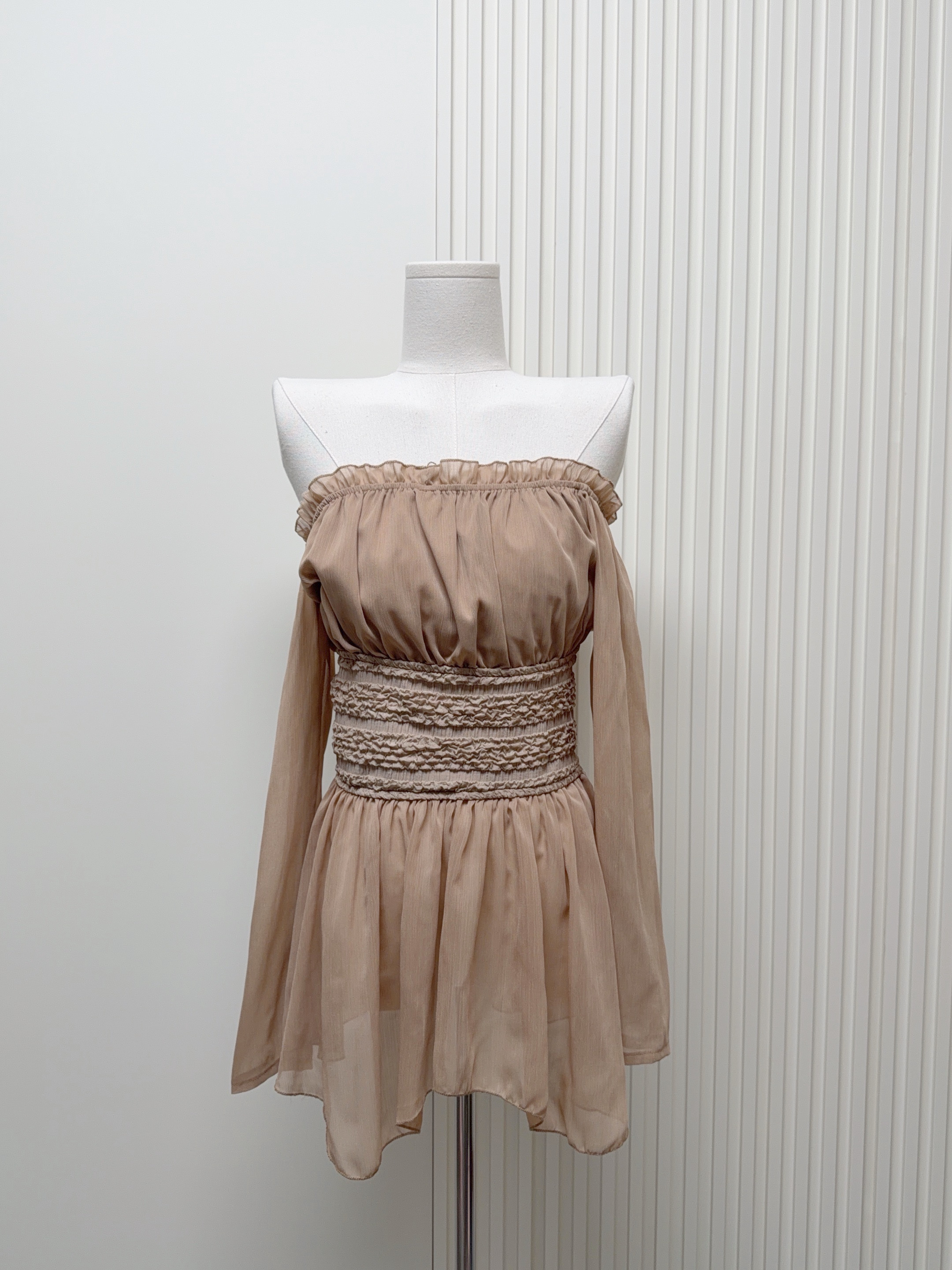 誉芝yuzhi 优雅气质一字肩雪纺衫春夏新款收腰显瘦高级感露肩上衣