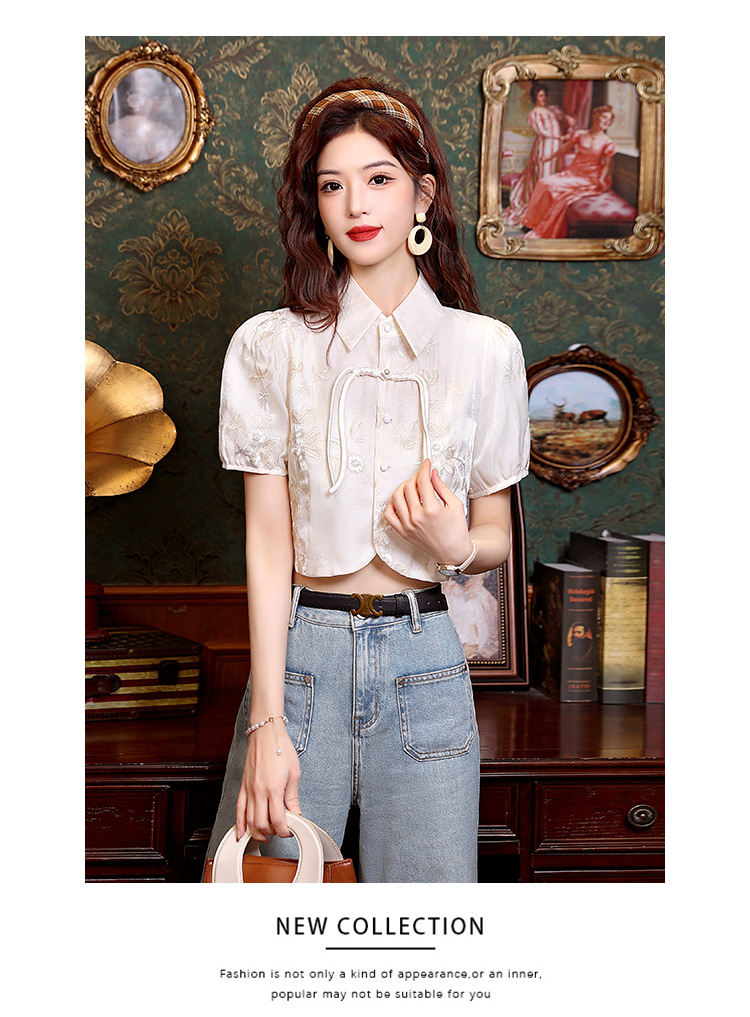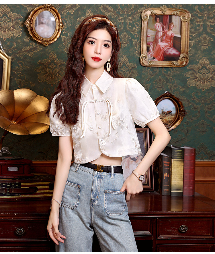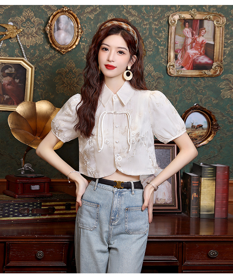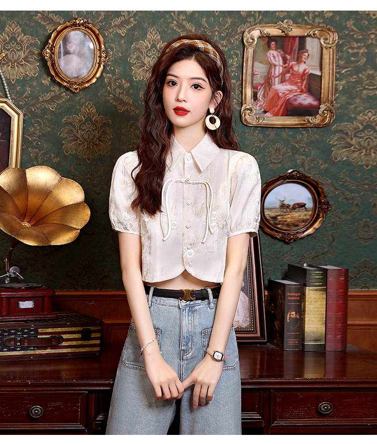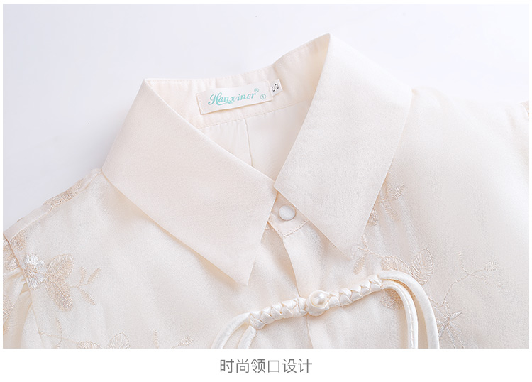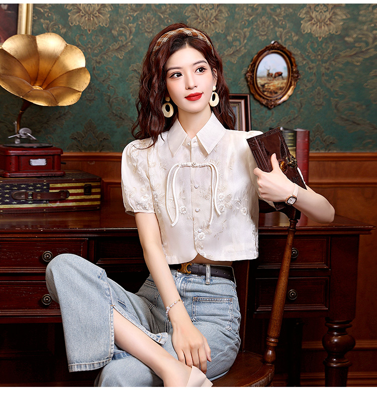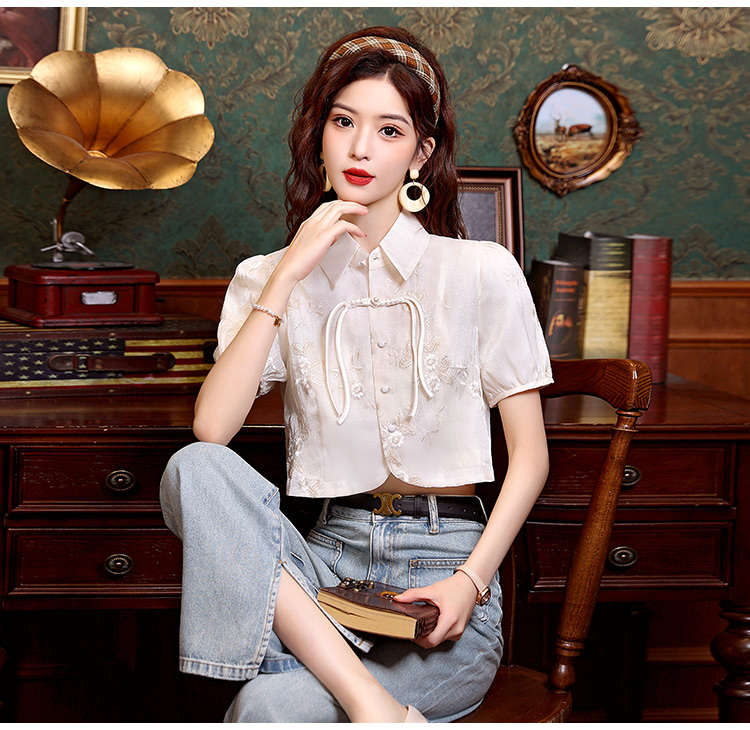 新中式国风盘扣提花衬衫女夏季复古国风气质小衫高级感泡泡袖上衣