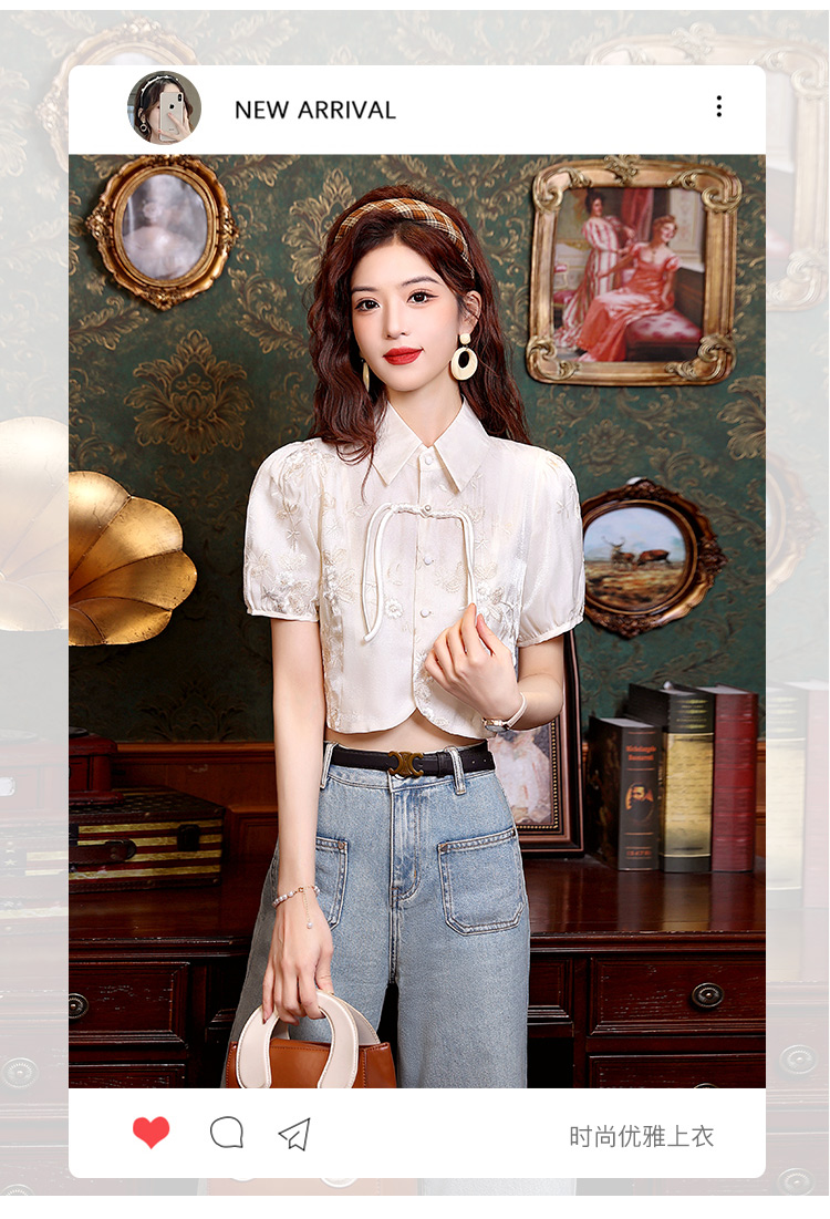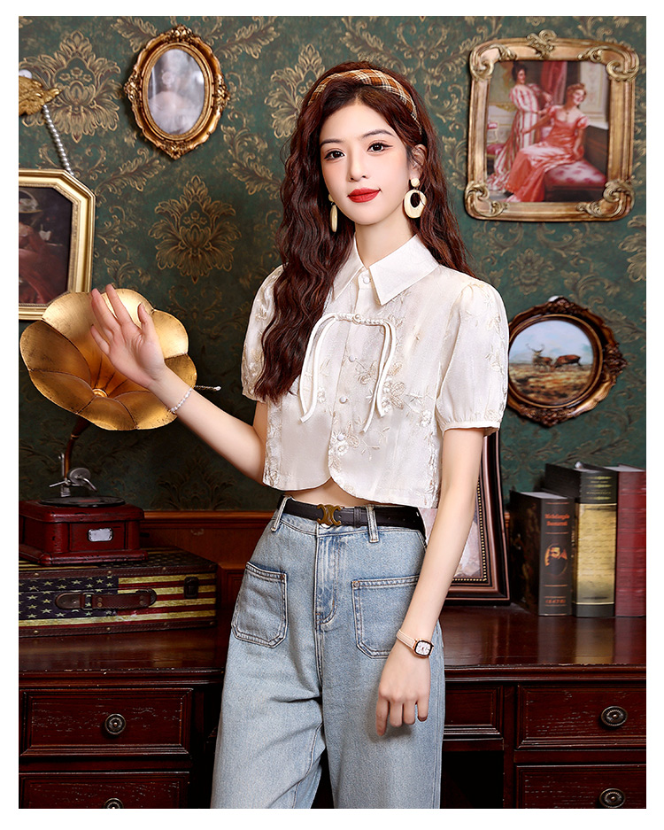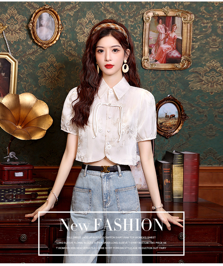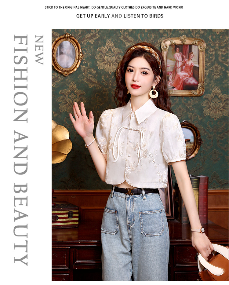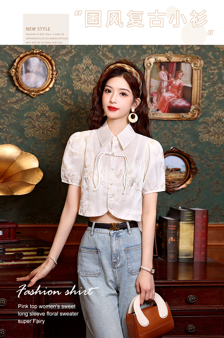 新中式国风盘扣提花衬衫女夏季复古国风气质小衫高级感泡泡袖上衣