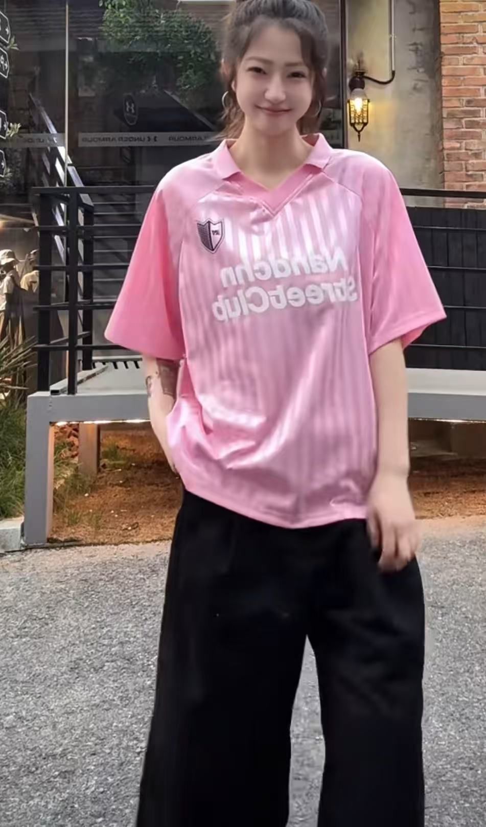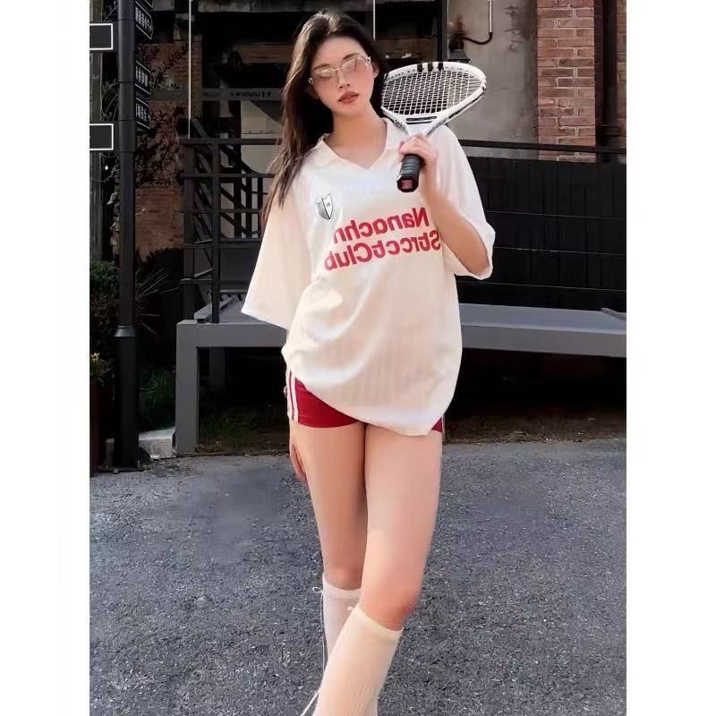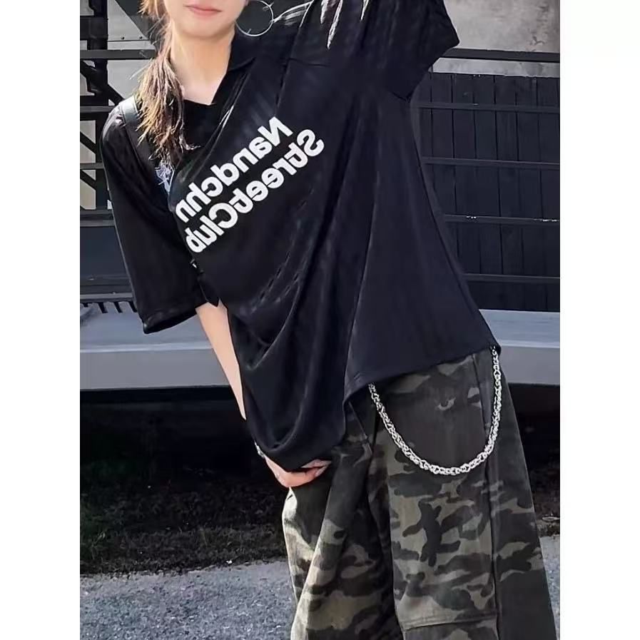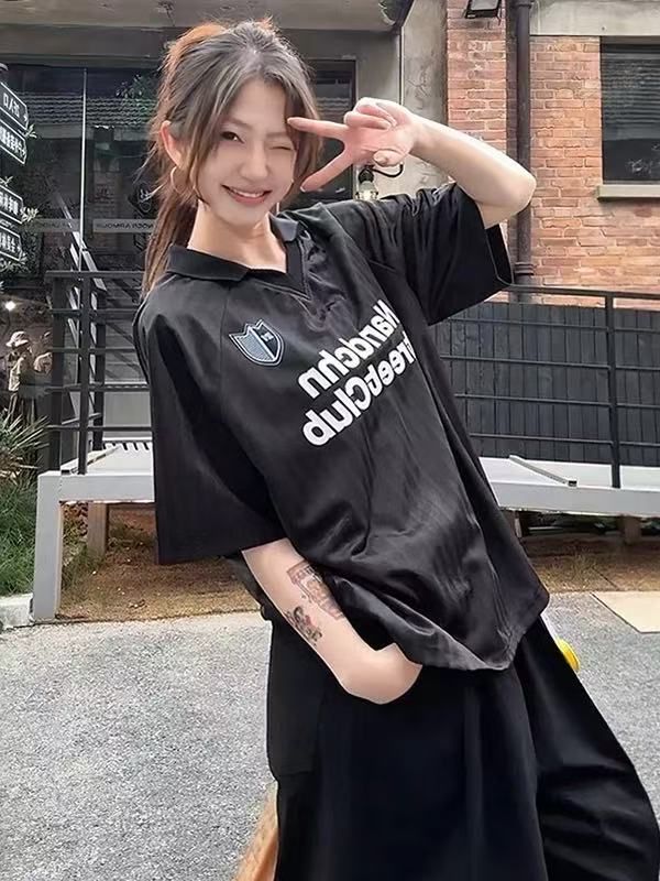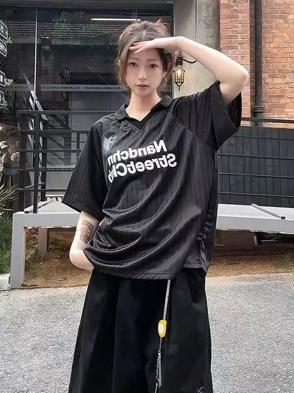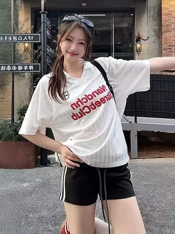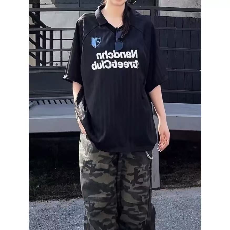2026夏季新款美式复古条纹字母印花运动球衣polo速干T恤上衣男女