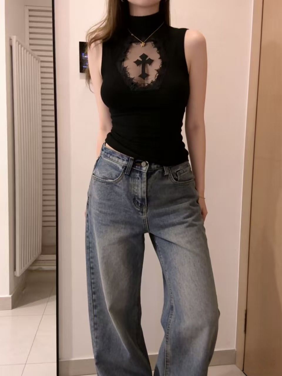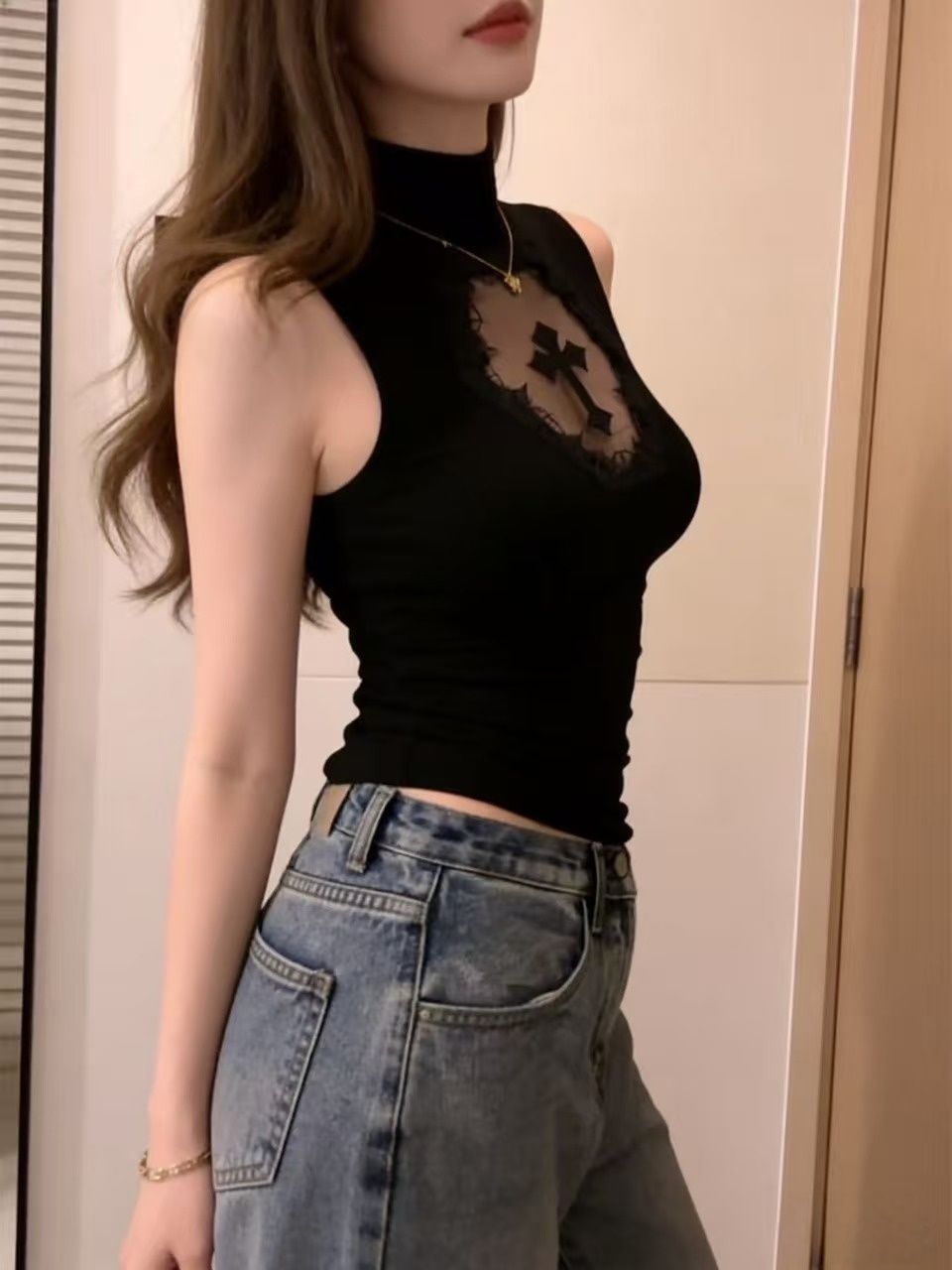 出大货 性感上衣女暗黑亚文化紧身镂空背心黑色朋克打底衫