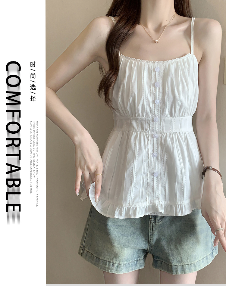 实拍2026夏季新款白色吊带上衣温柔风方领蕾丝拼接内搭外穿两穿