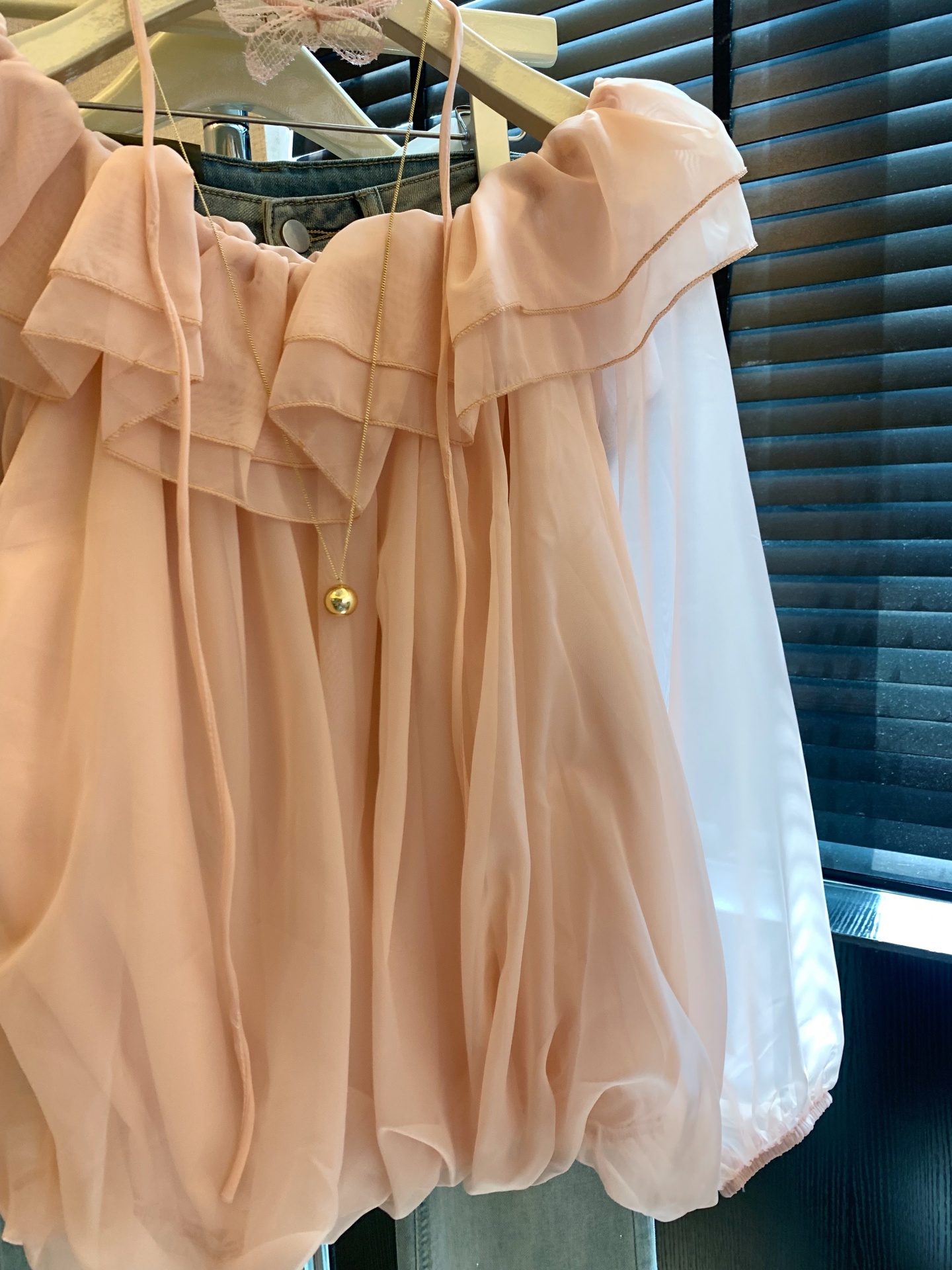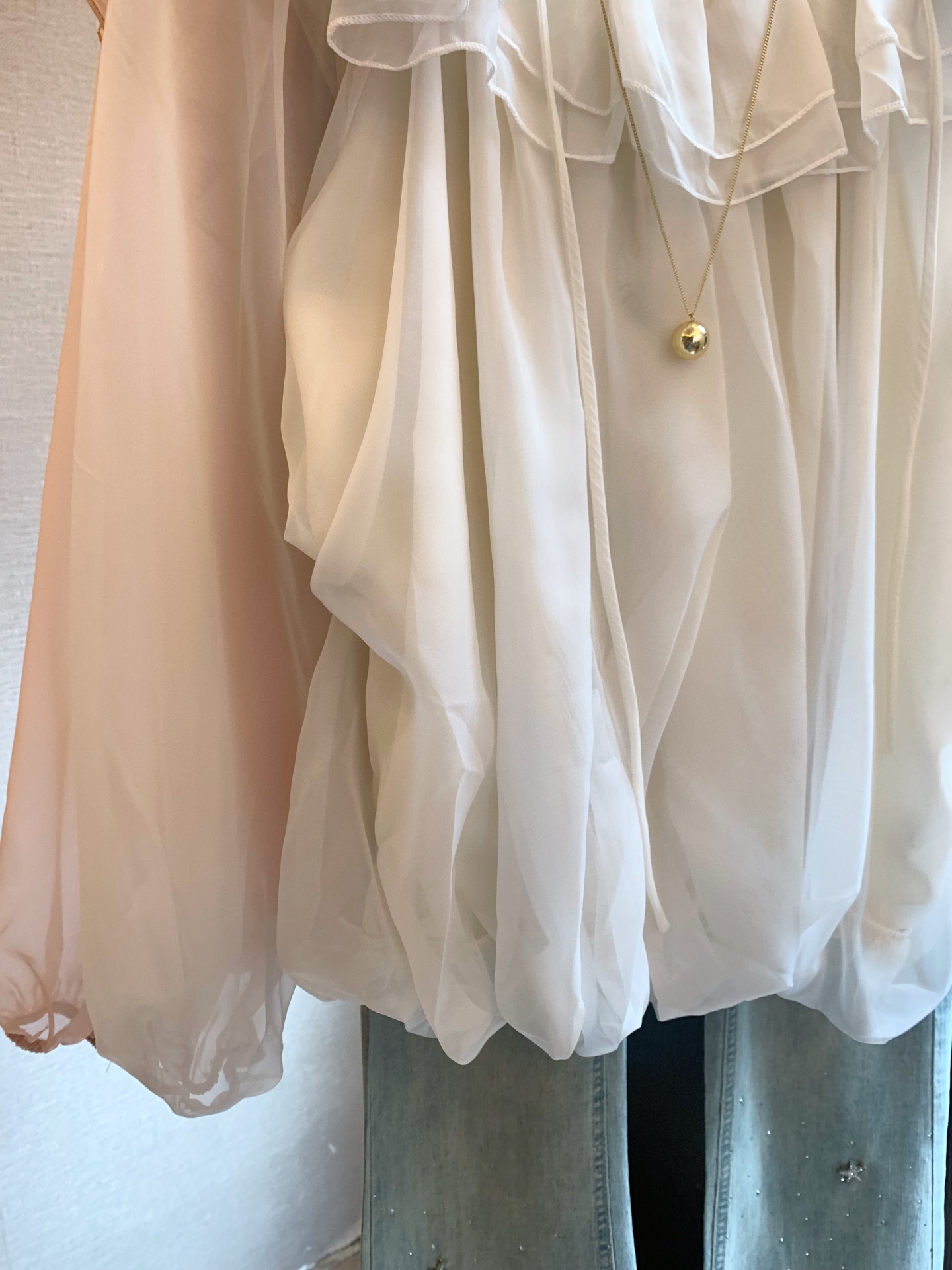 实拍法式蝴蝶飘带花苞雪纺长袖春夏衬衫女纯欲设计感温柔气质上衣