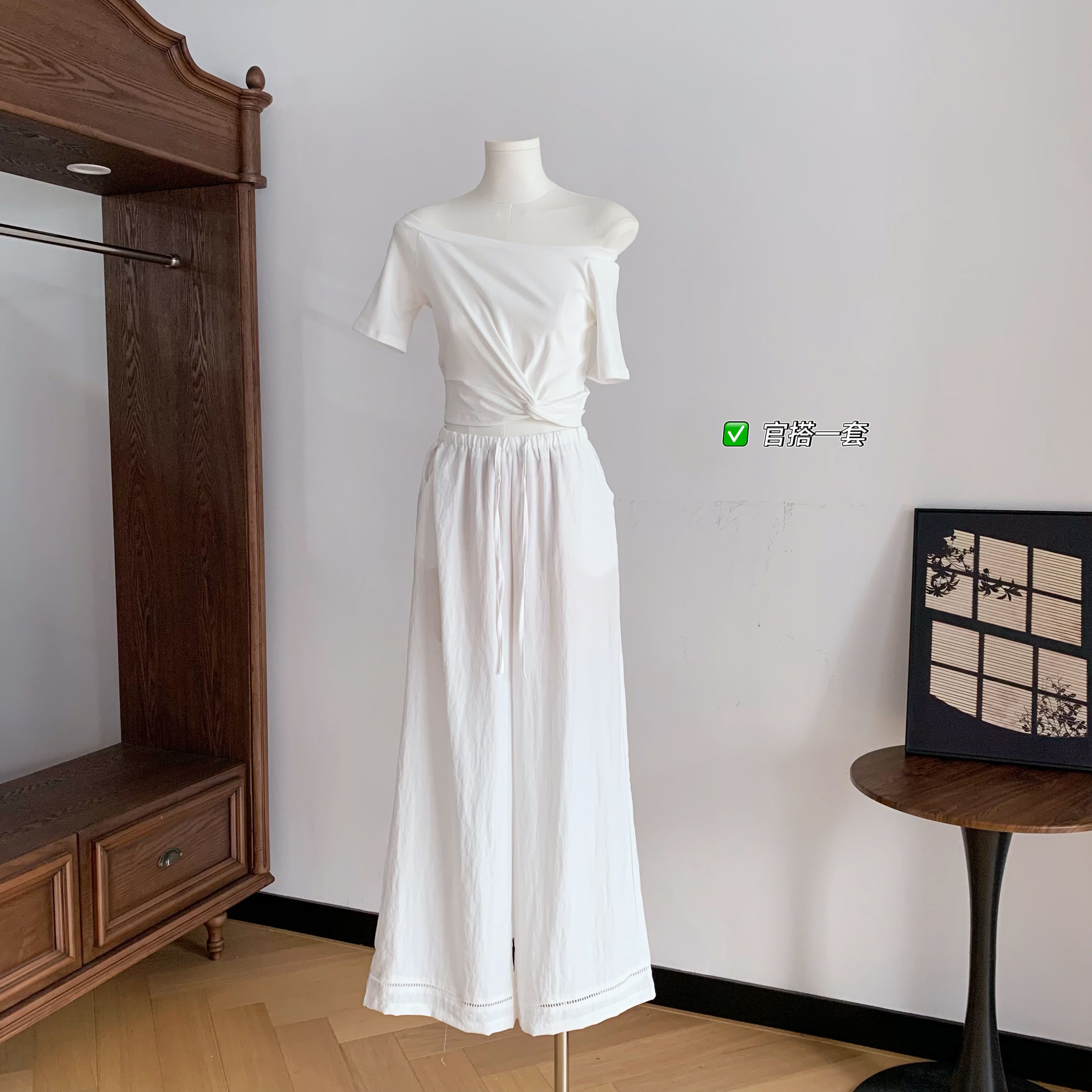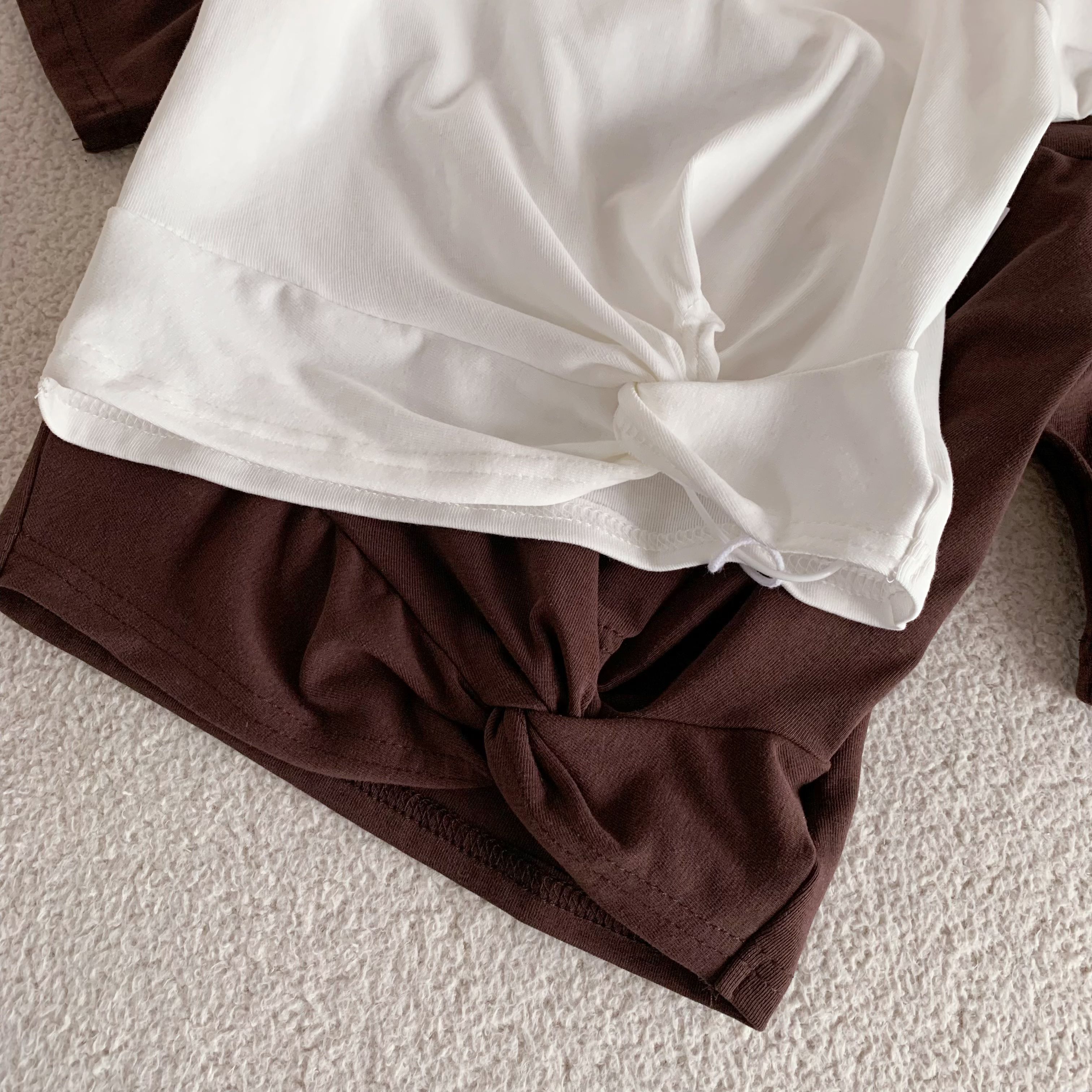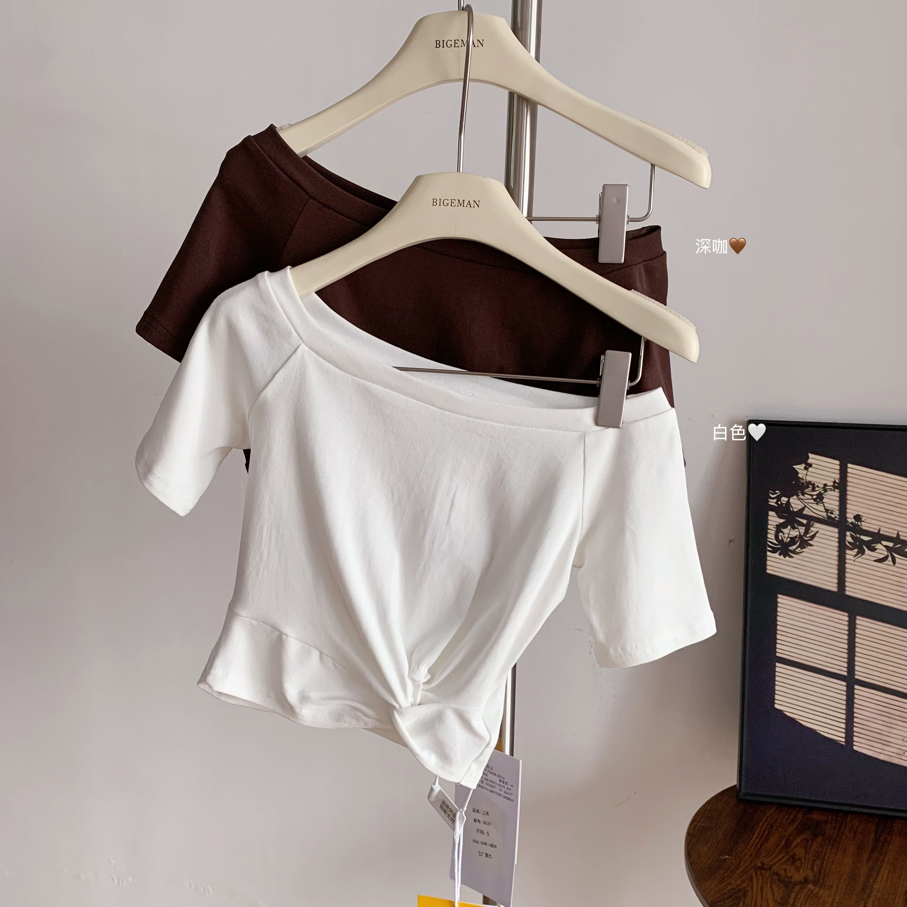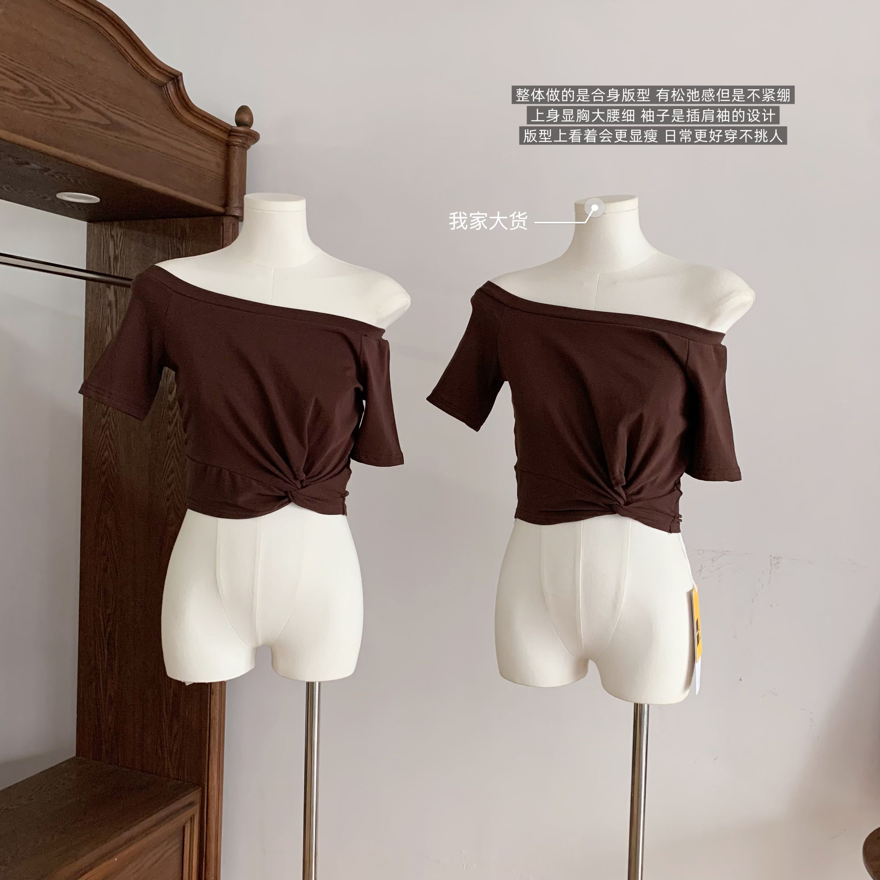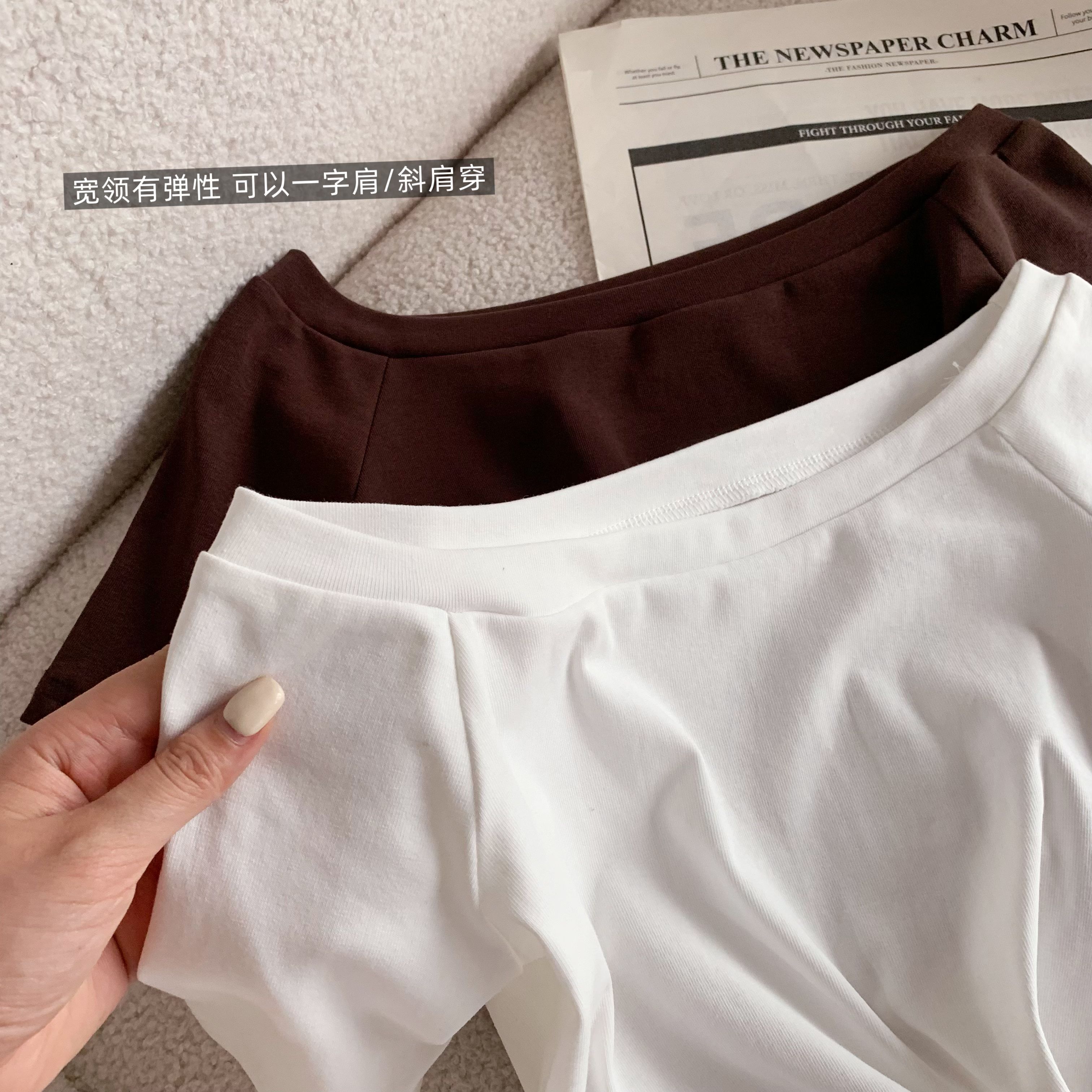 韩雨嘉“不规则穿法” 凉感冰皮多穿法可露肩扭结短袖T恤