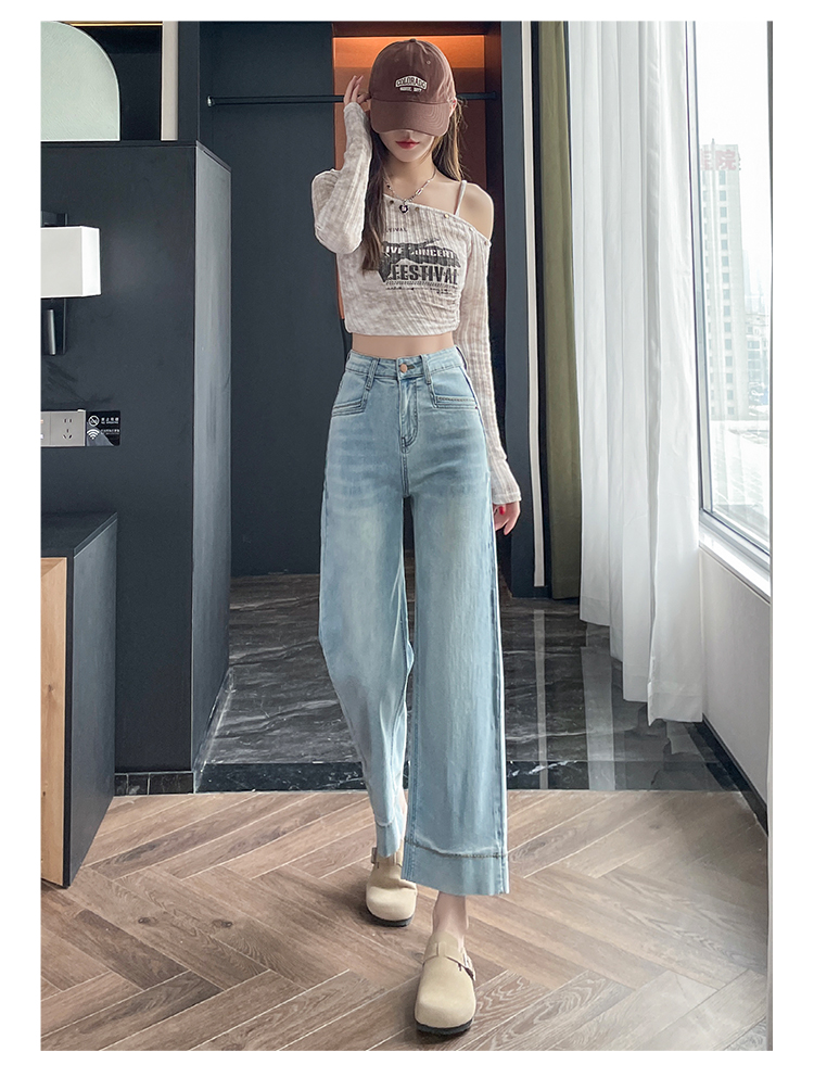 九分直筒牛仔裤女春夏季2026年新款宽松显瘦八分小个子弹力烟管裤