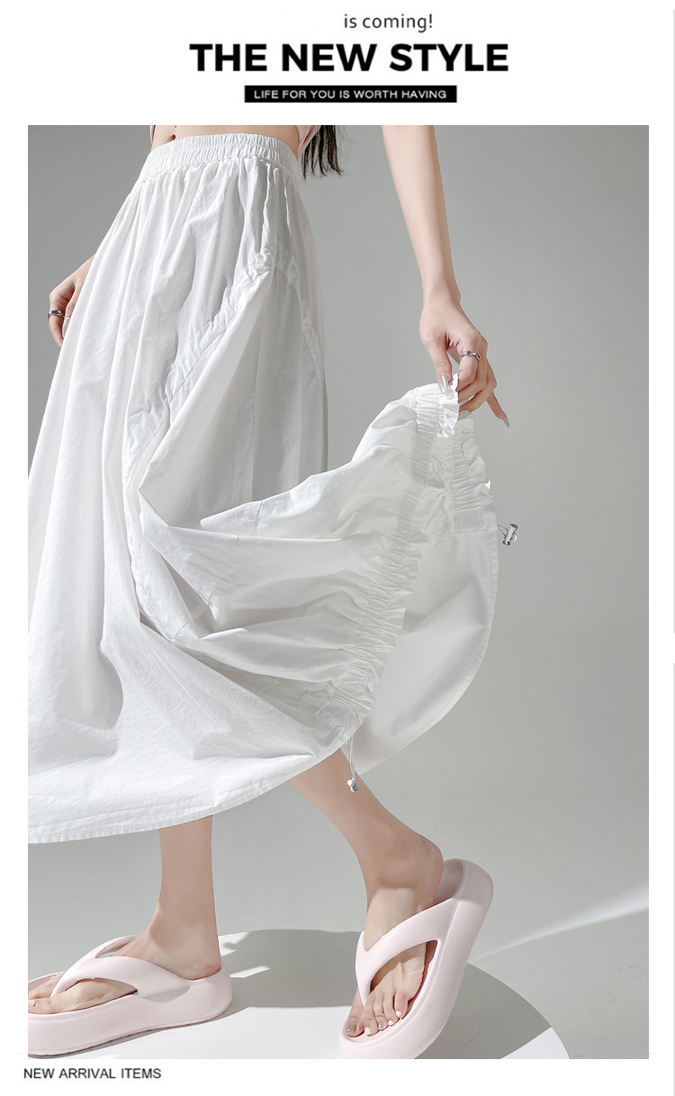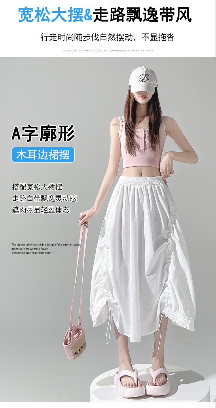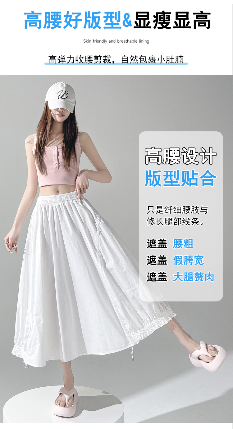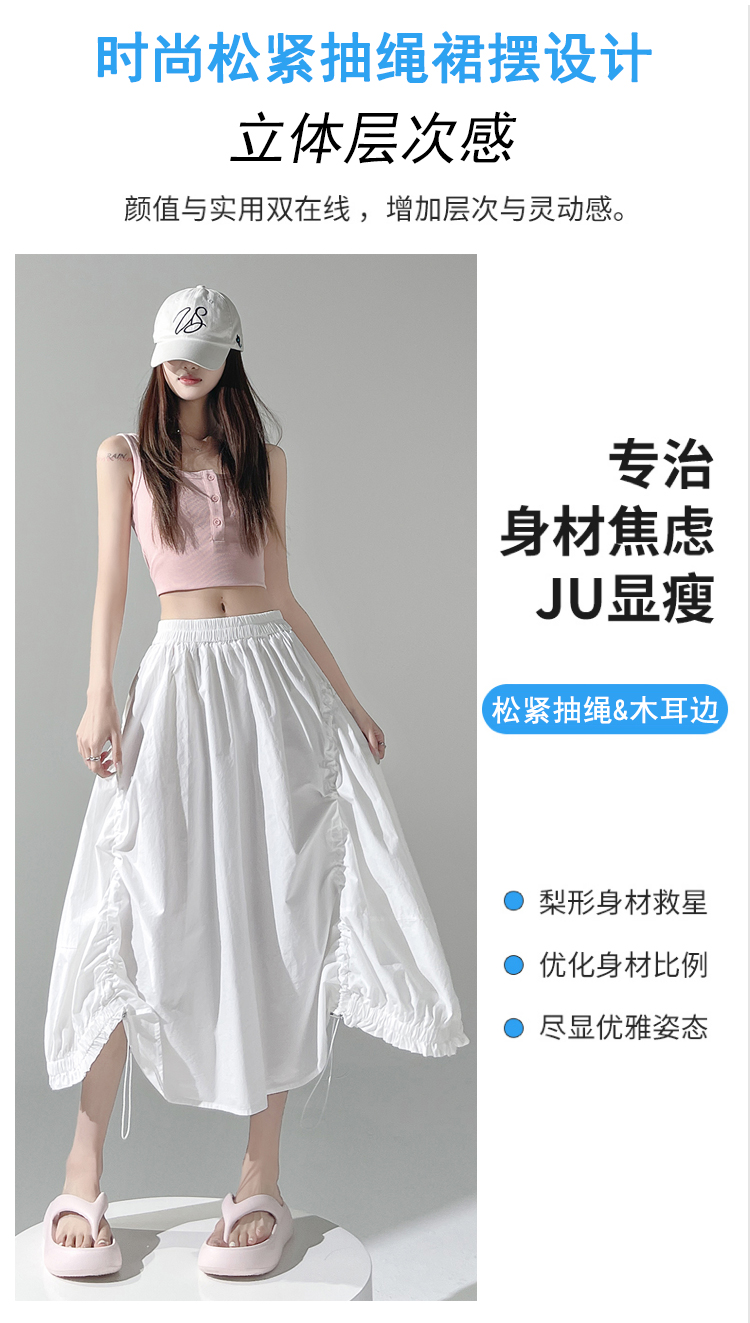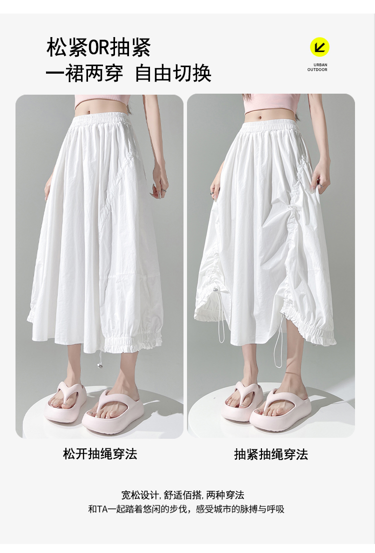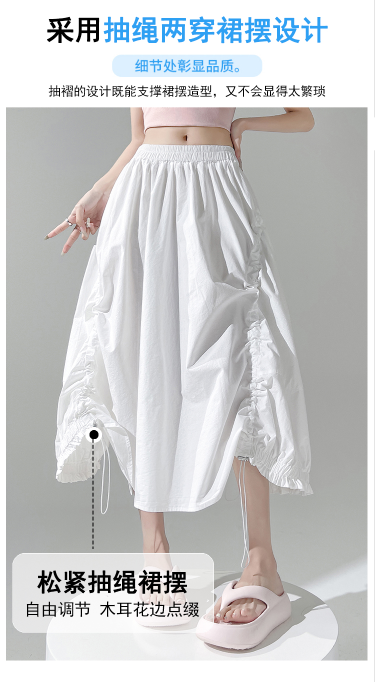 实拍 白色抽绳a字半身裙女春夏2026新款高腰显瘦中长款气质长裙