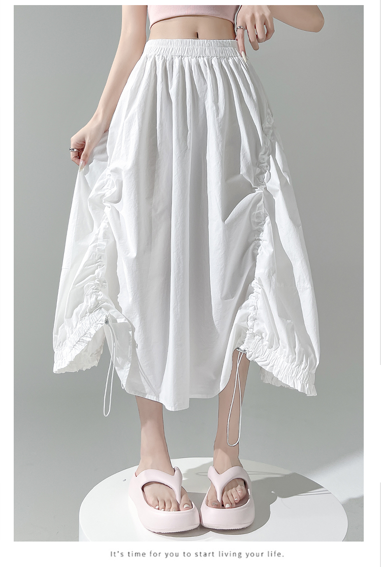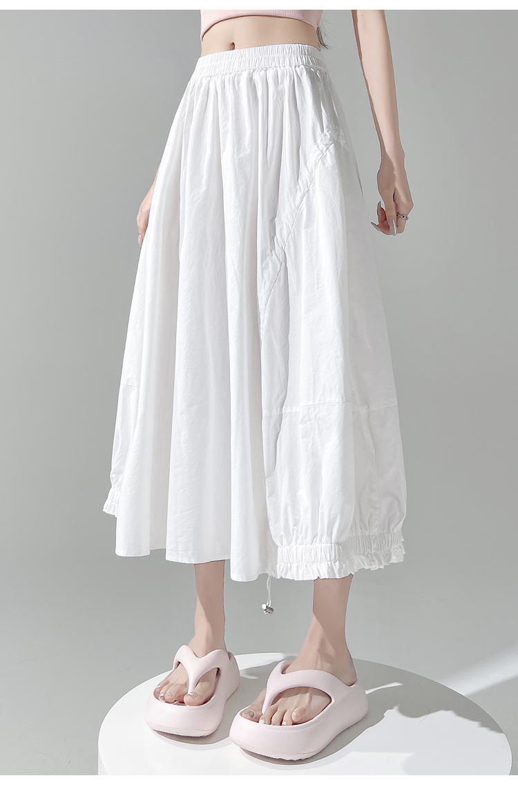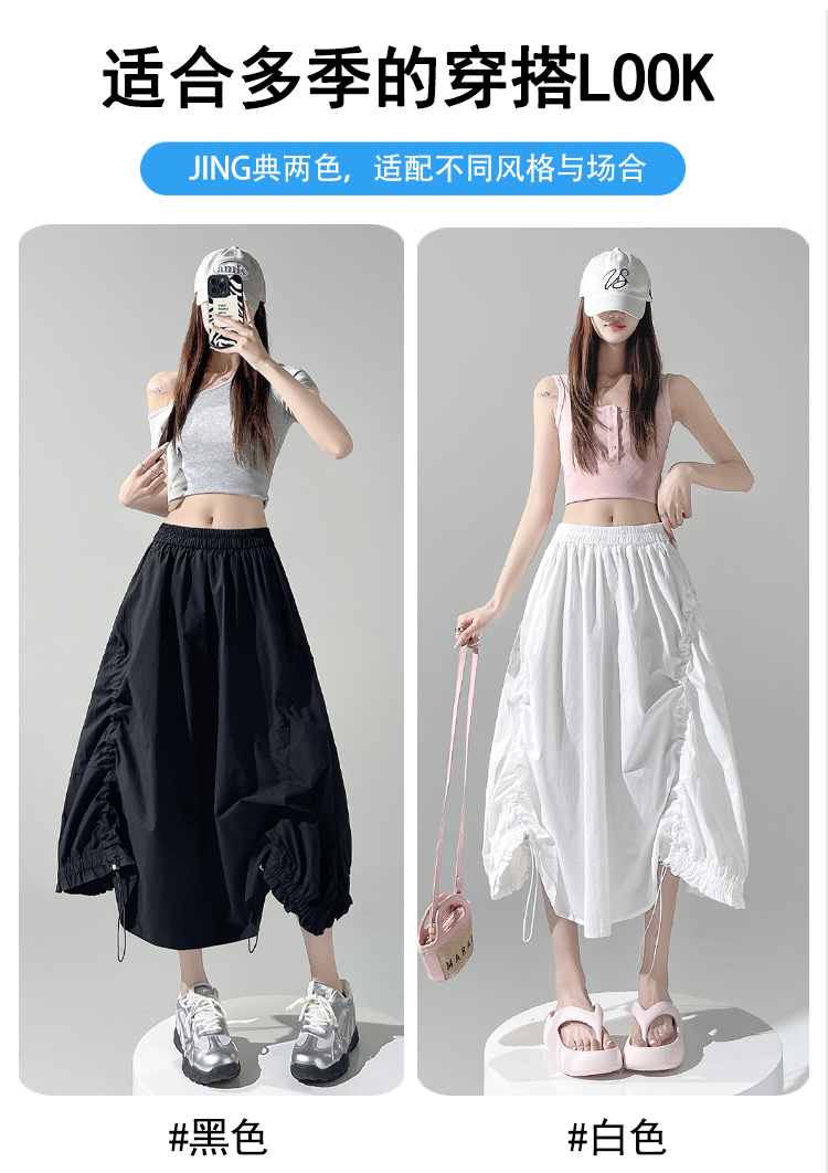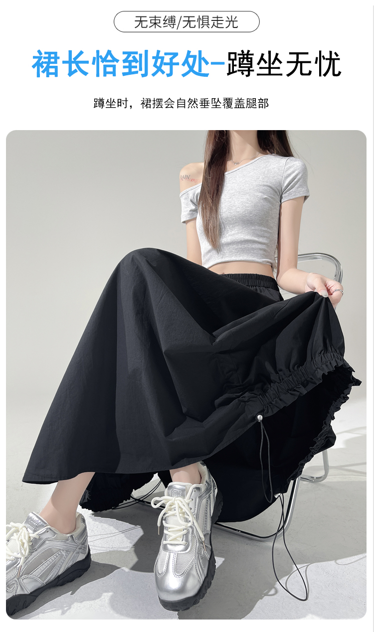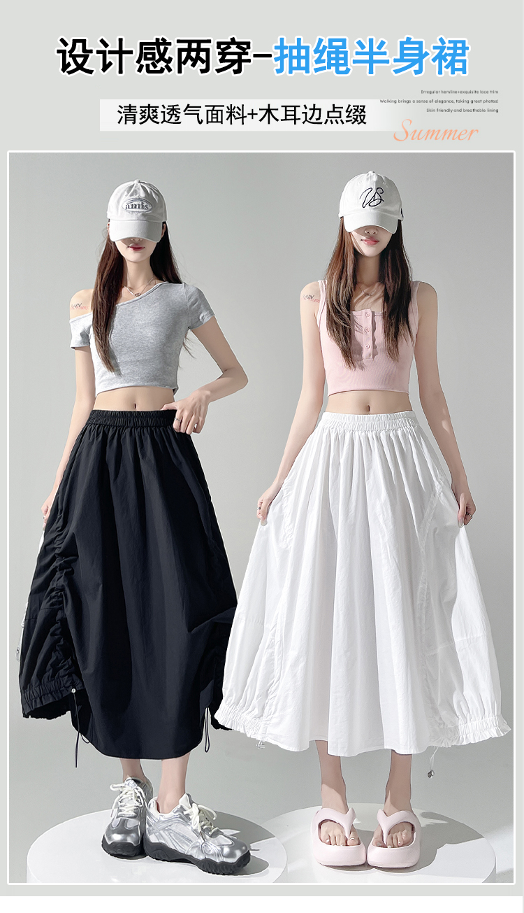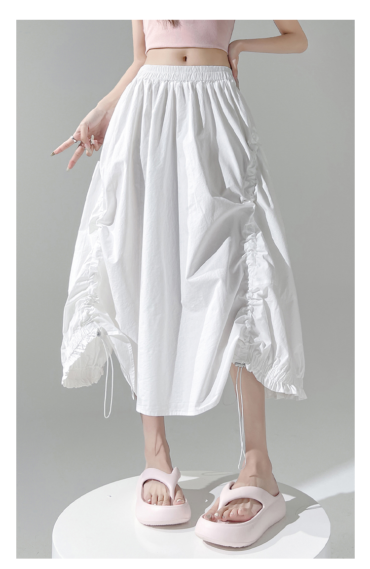 实拍 白色抽绳a字半身裙女春夏2026新款高腰显瘦中长款气质长裙