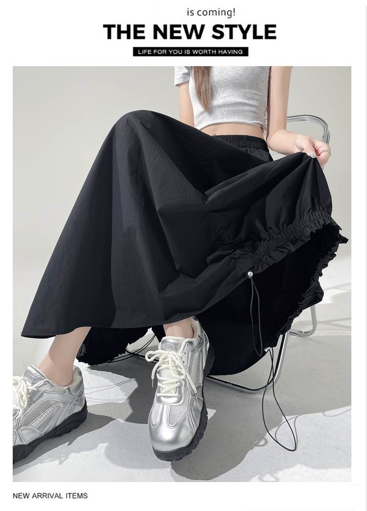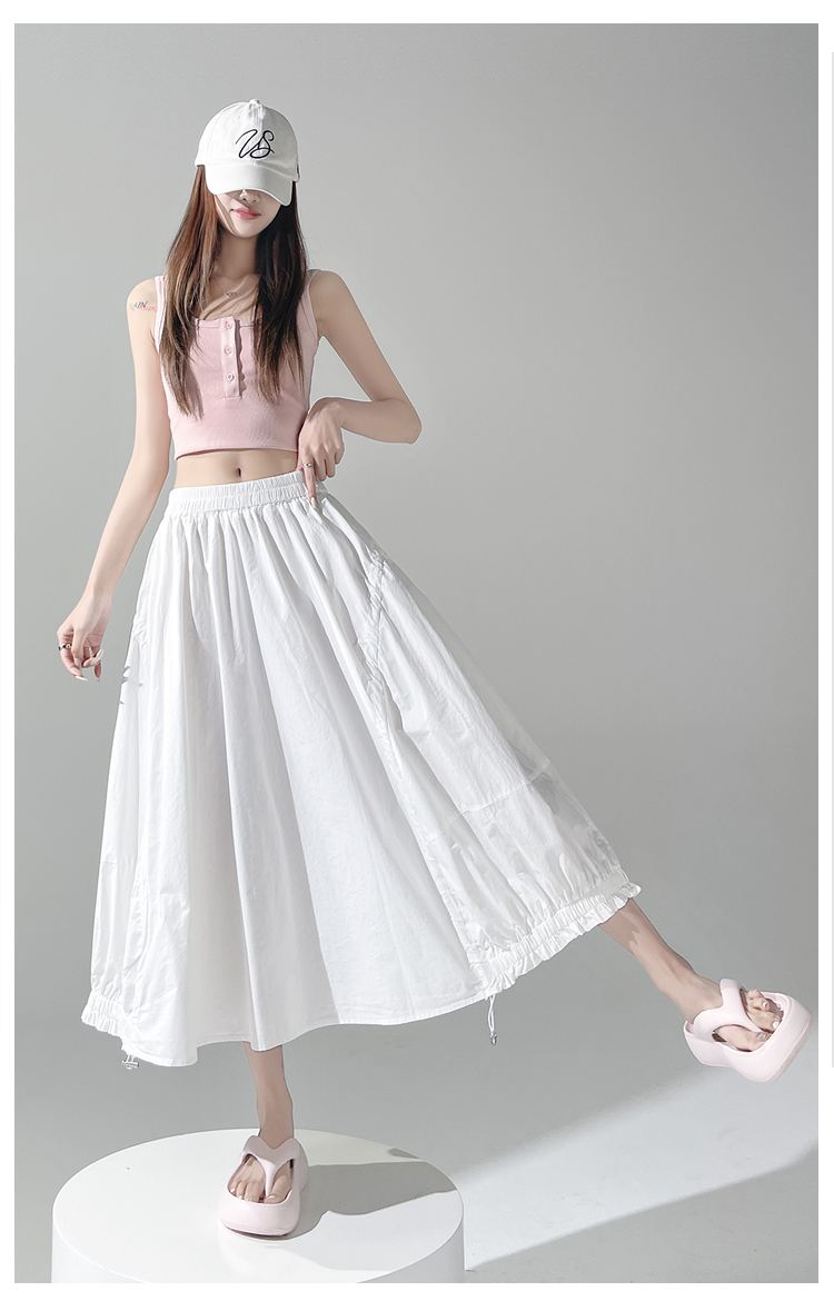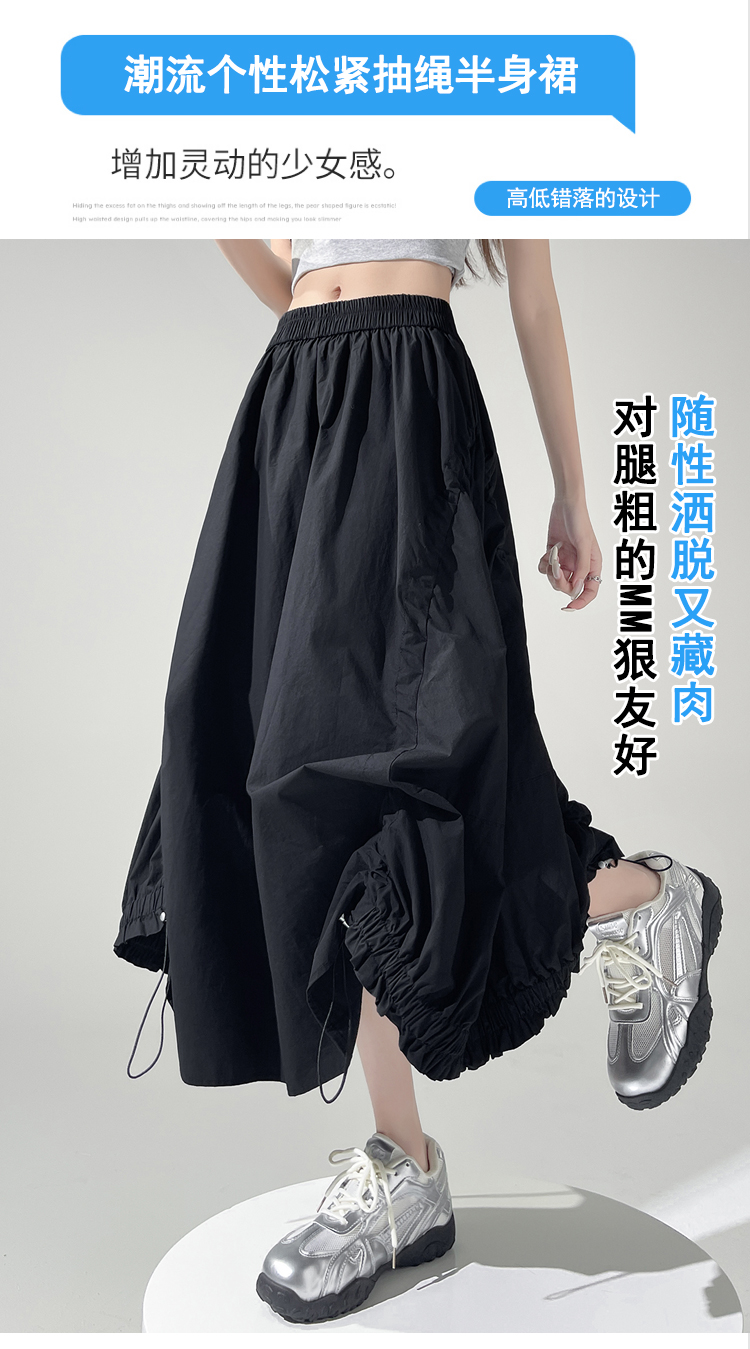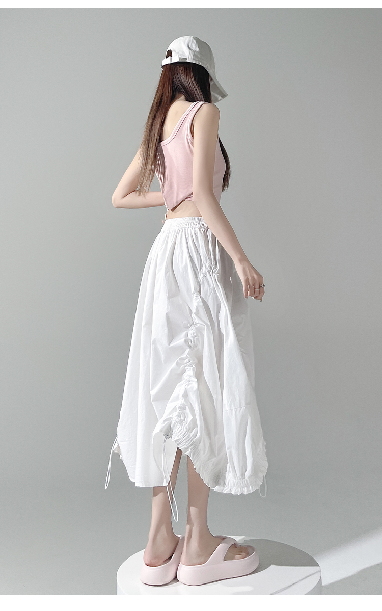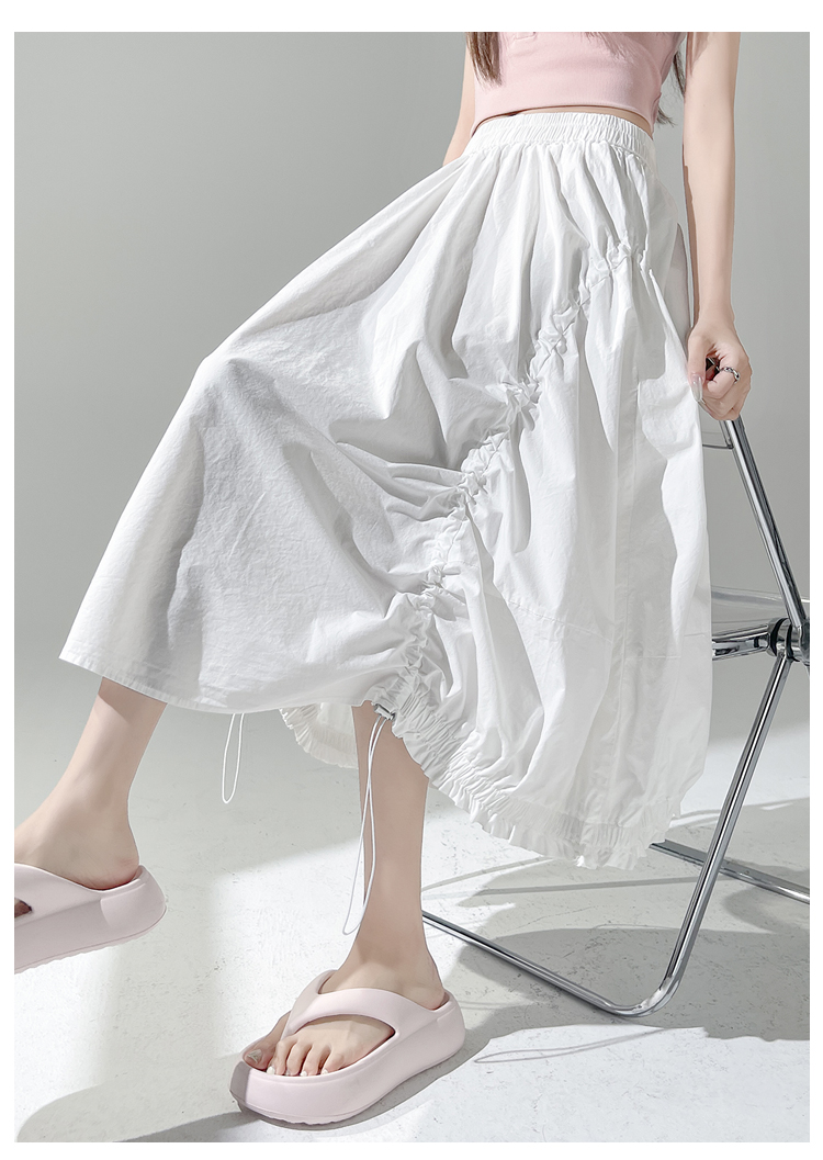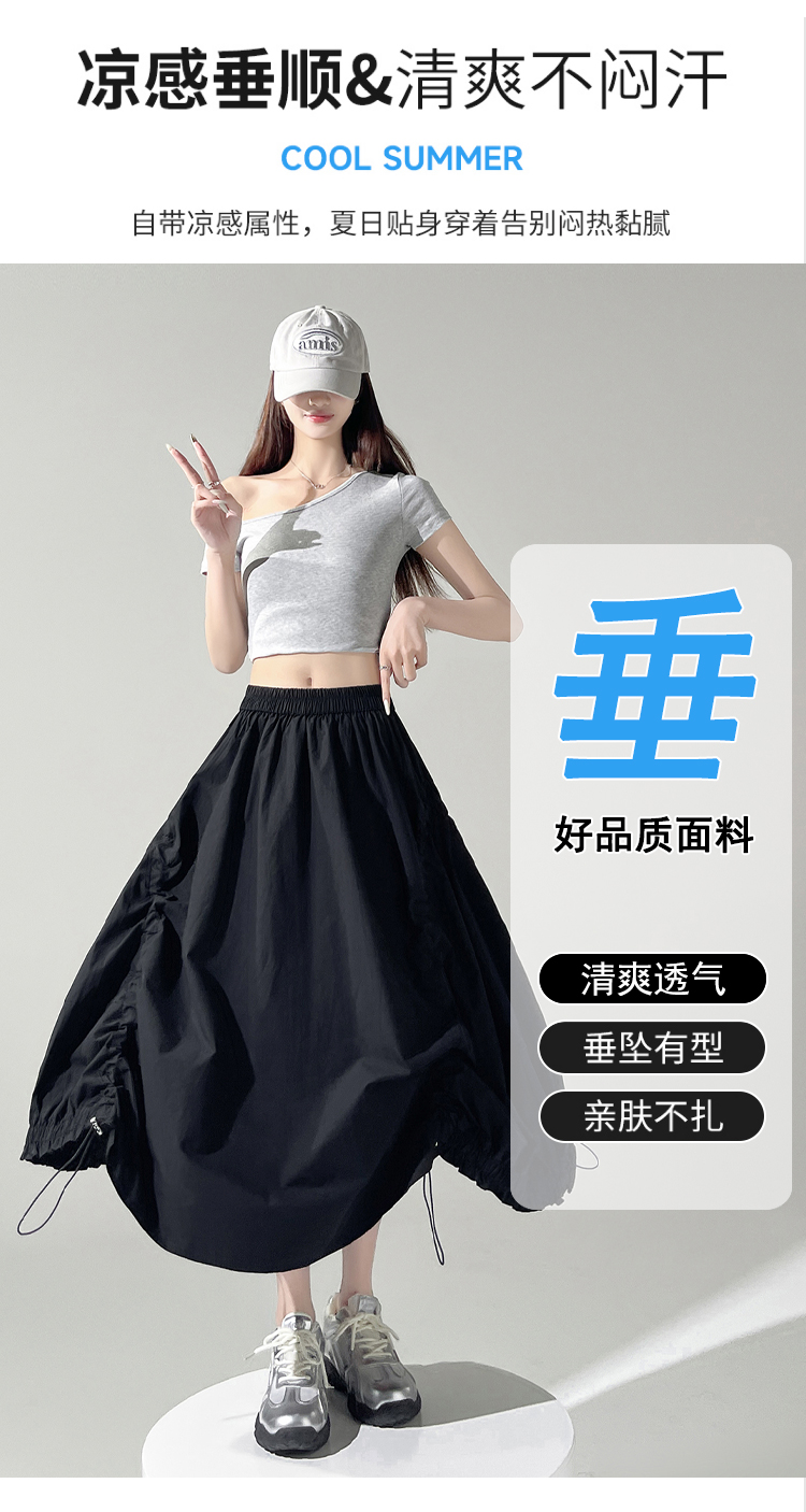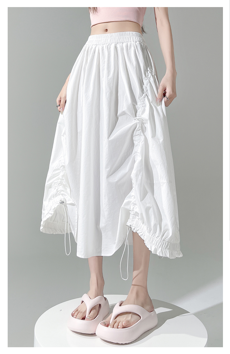 实拍 白色抽绳a字半身裙女春夏2026新款高腰显瘦中长款气质长裙
