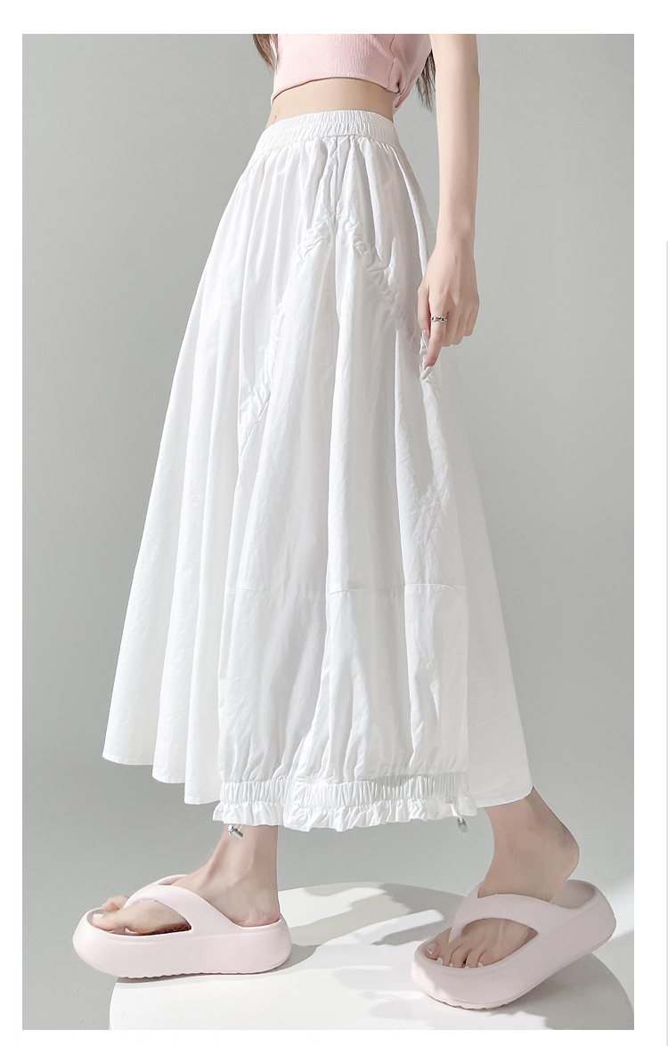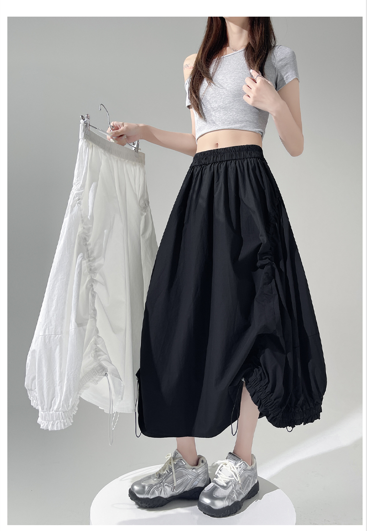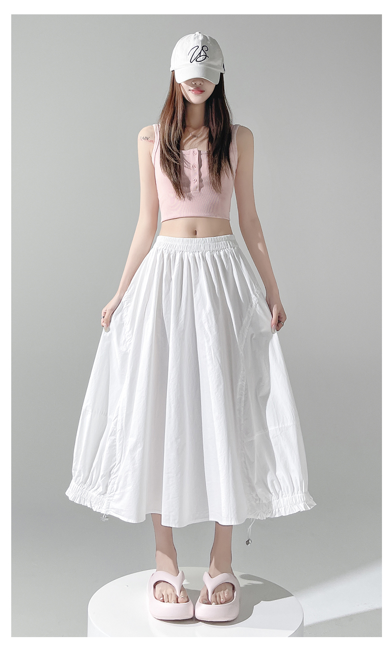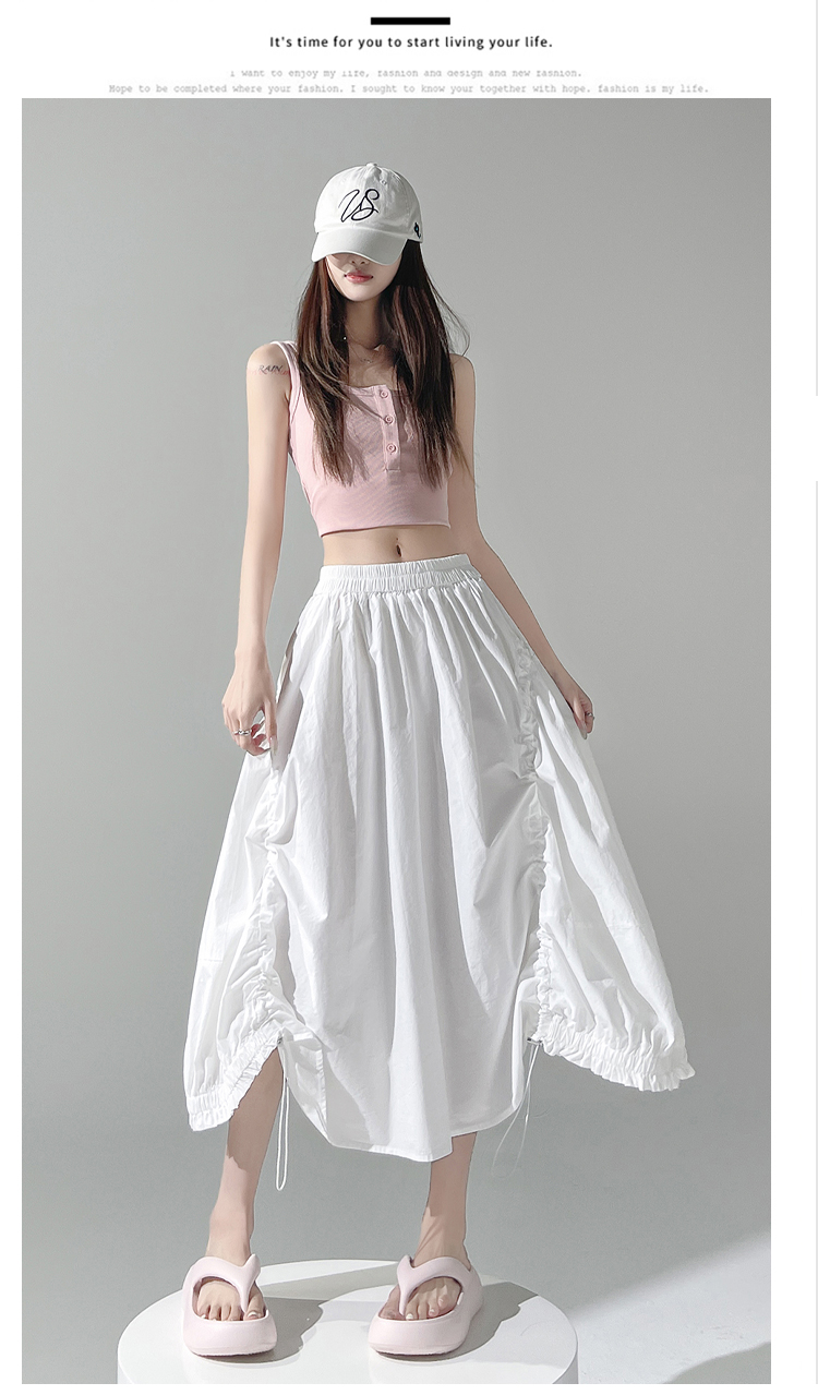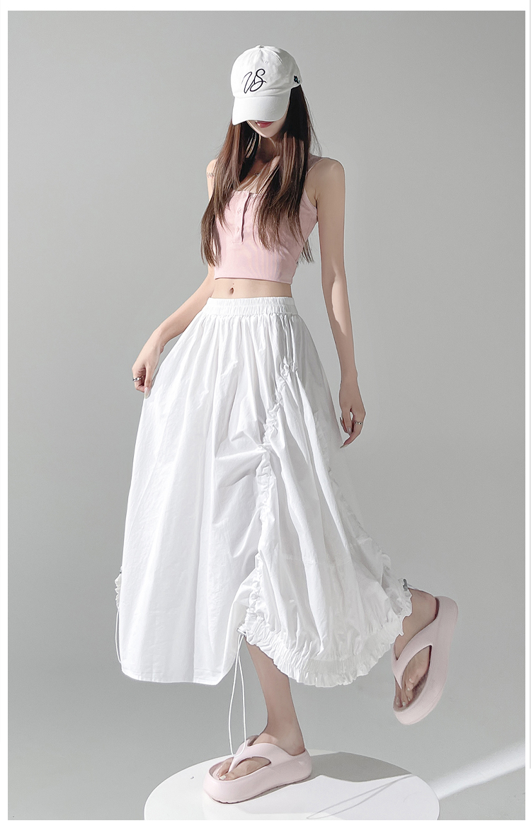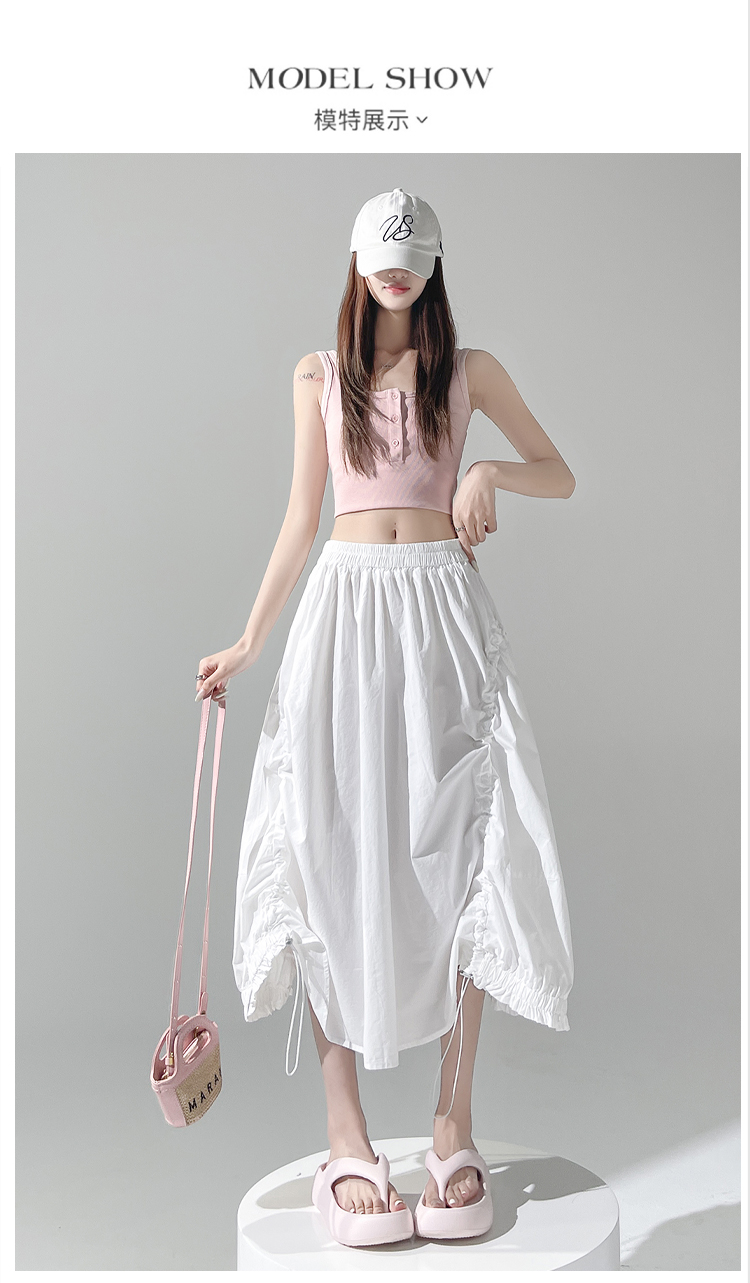 实拍 白色抽绳a字半身裙女春夏2026新款高腰显瘦中长款气质长裙