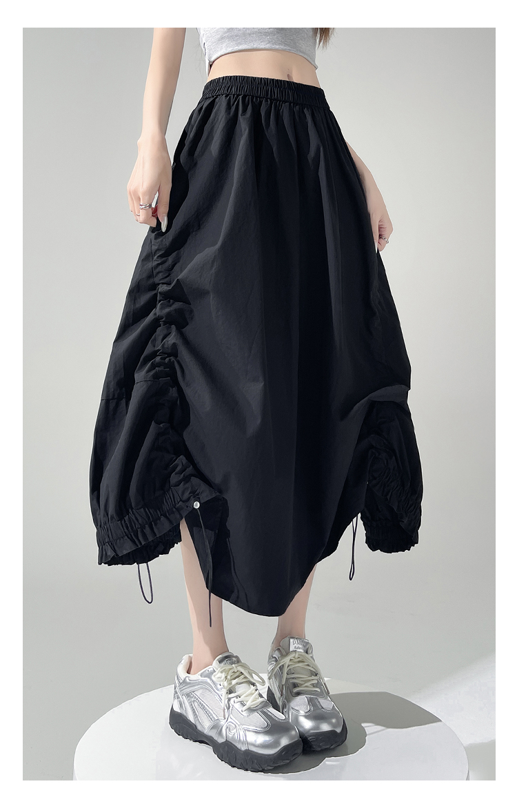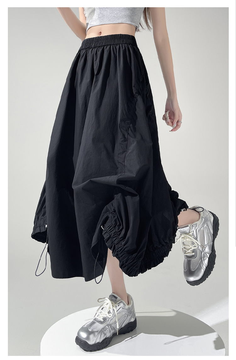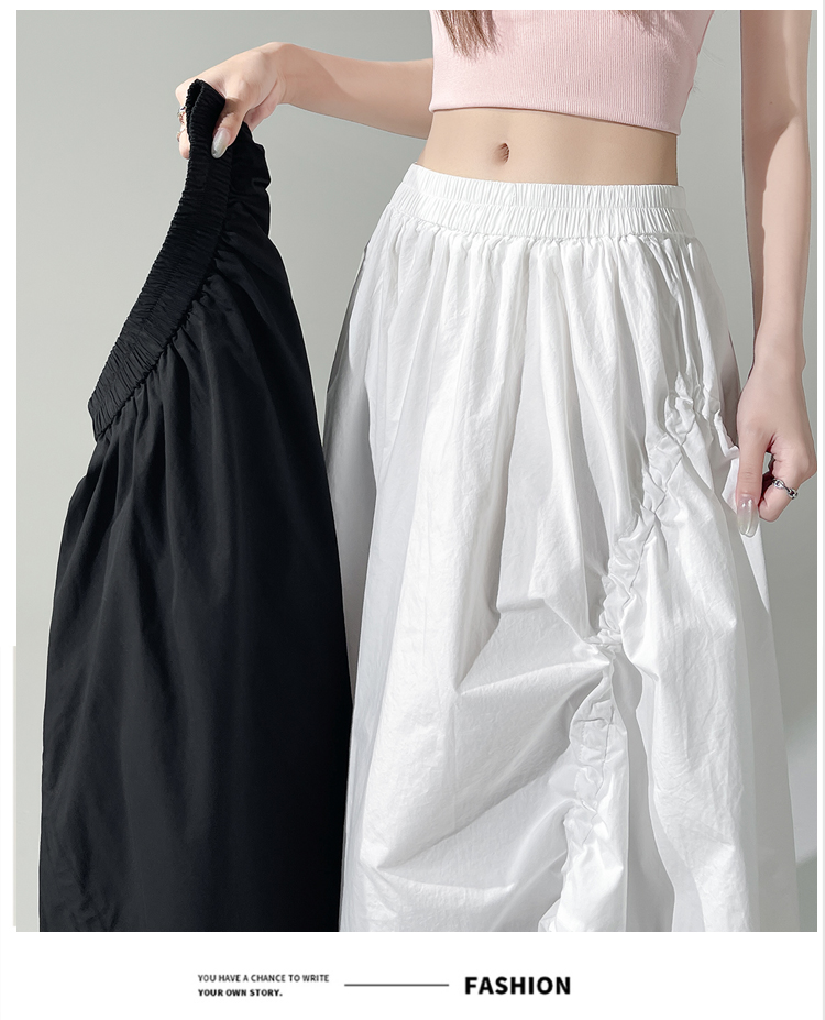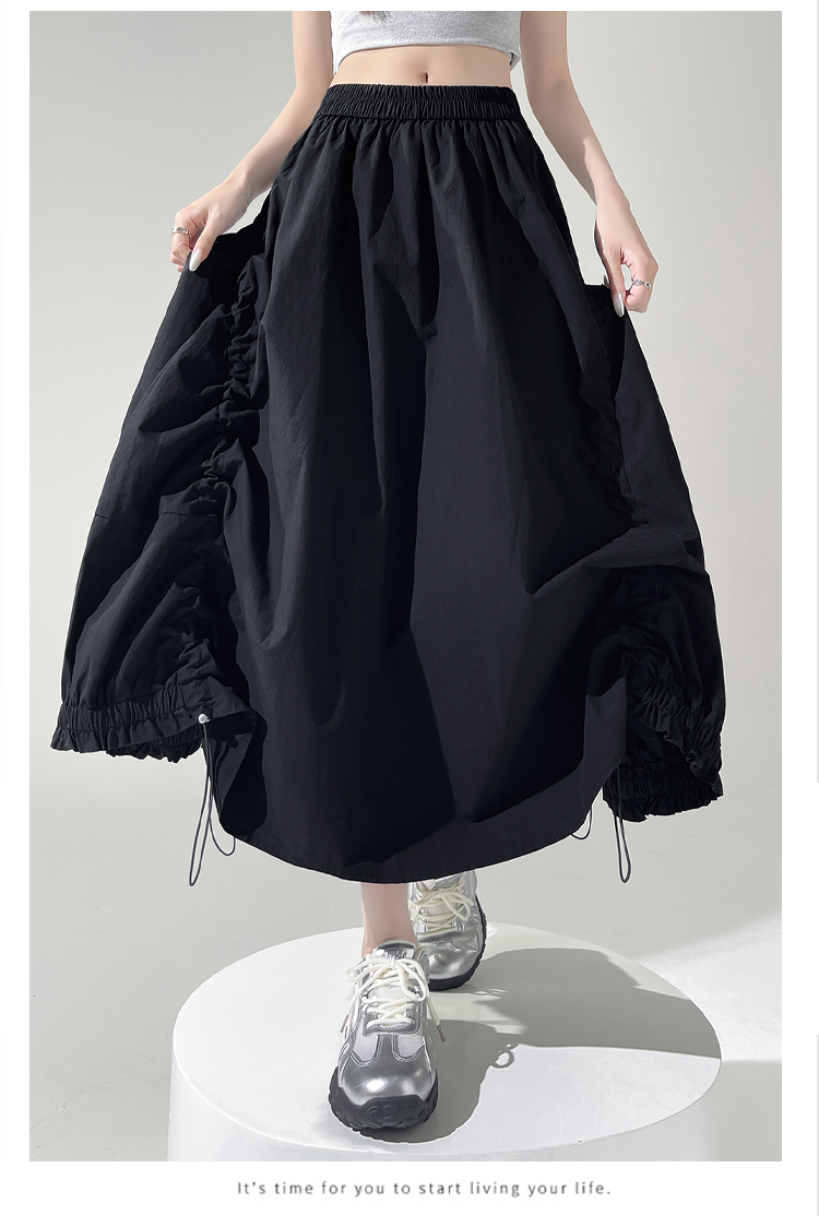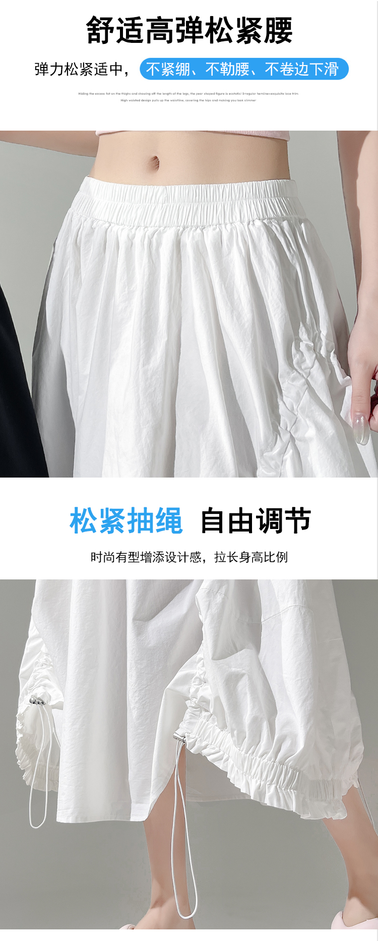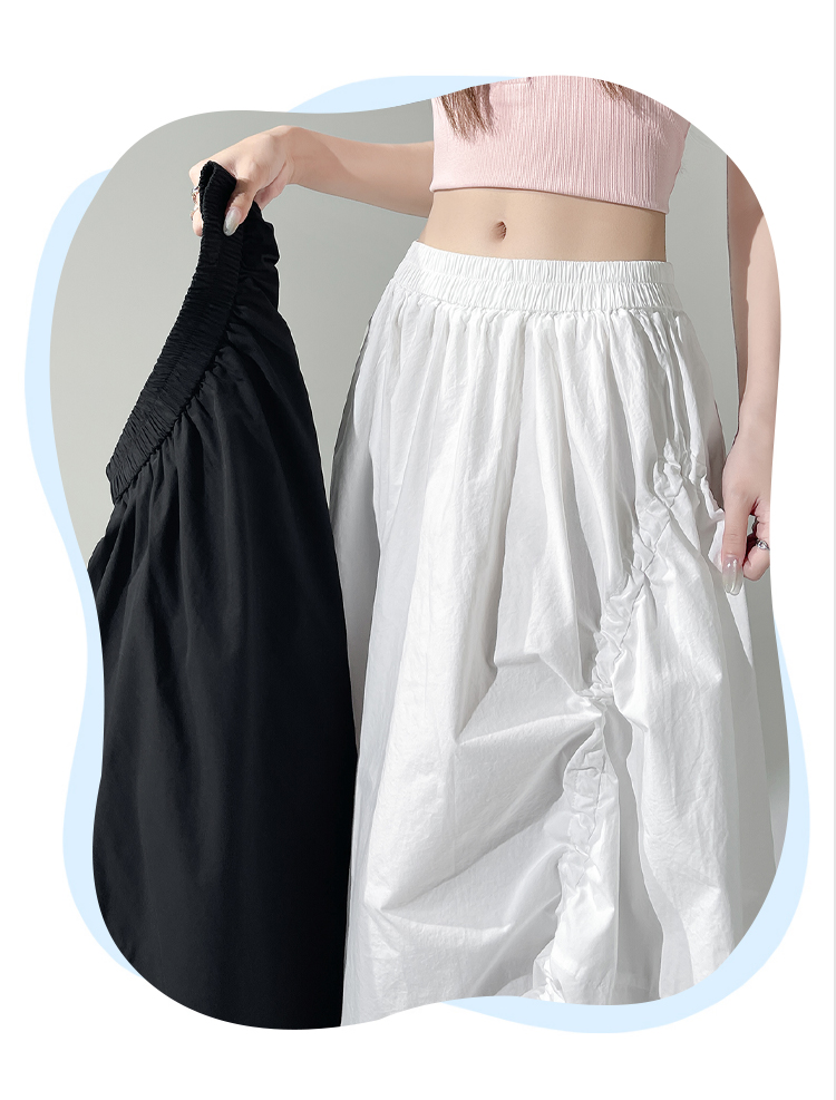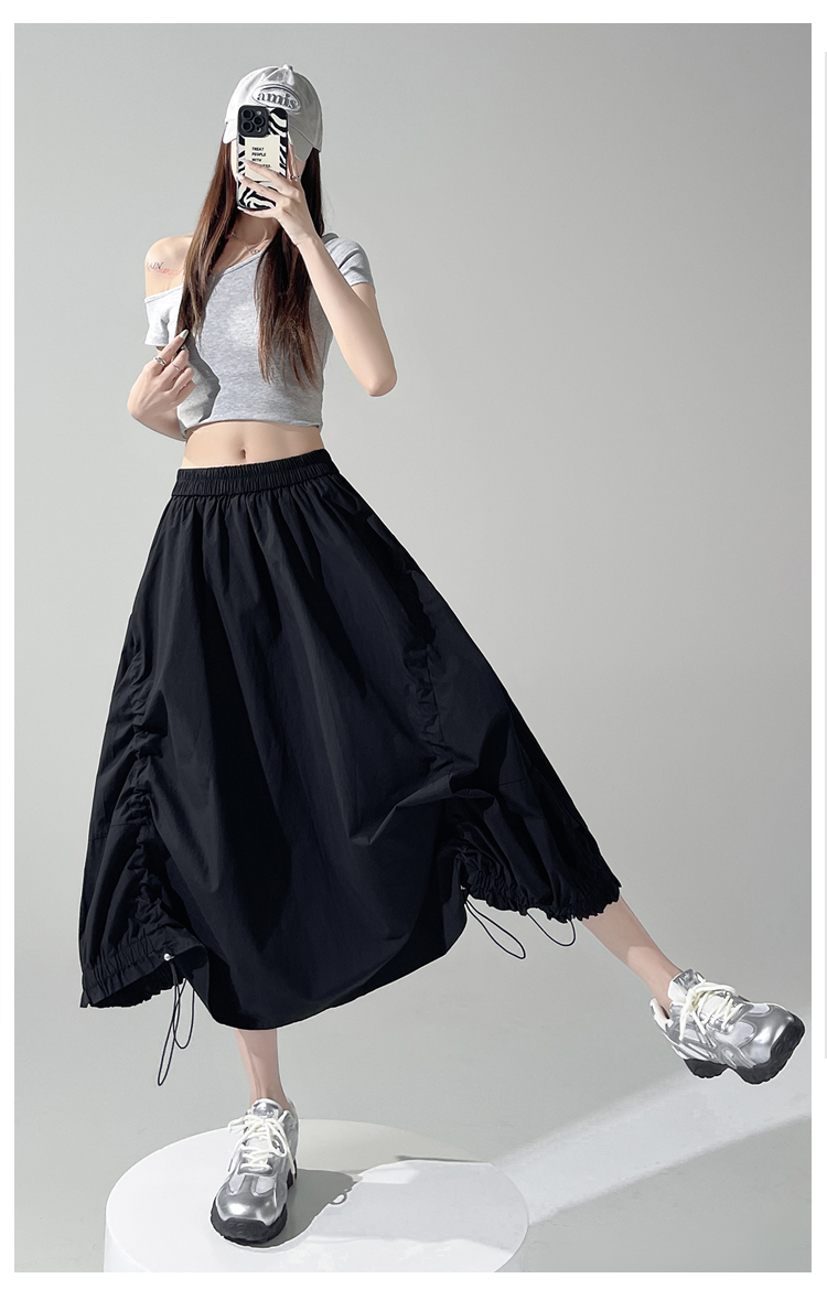 实拍 白色抽绳a字半身裙女春夏2026新款高腰显瘦中长款气质长裙
