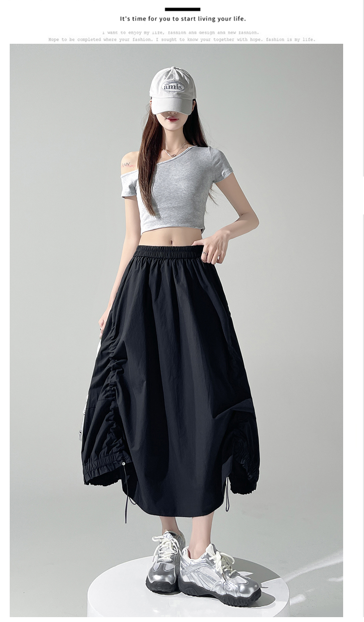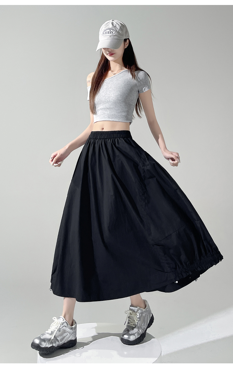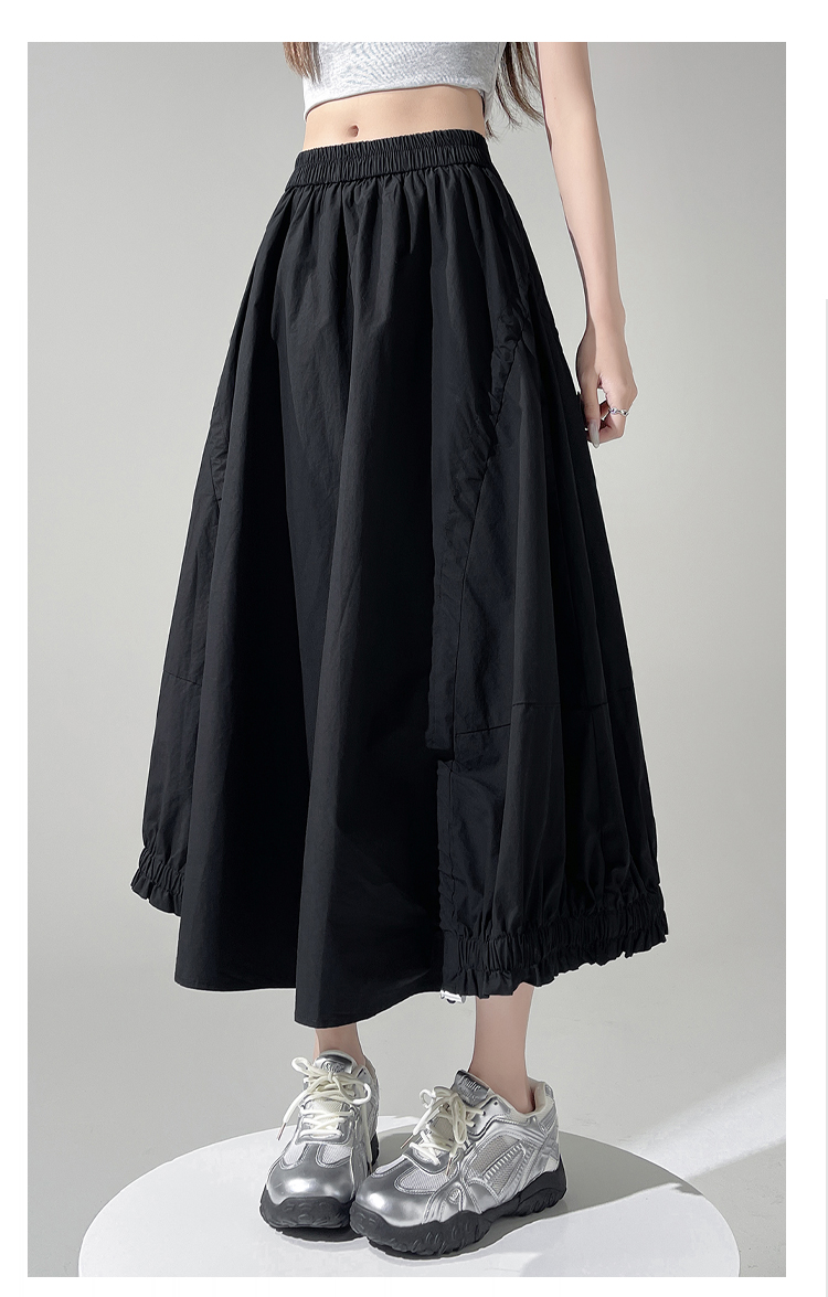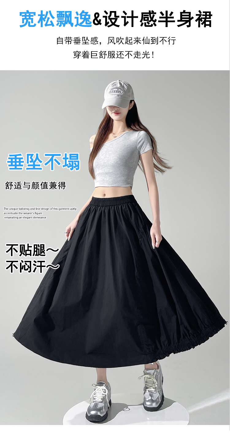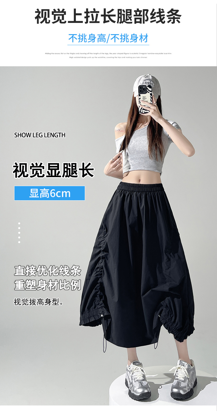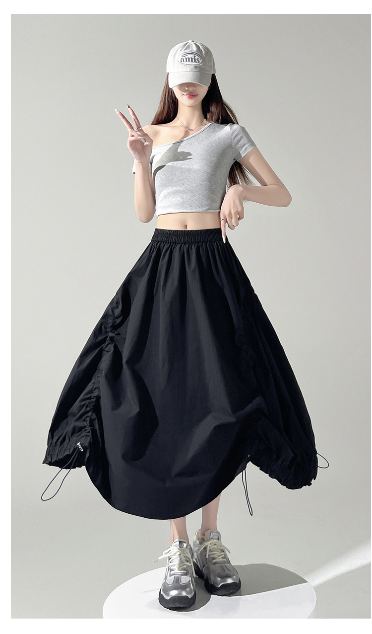 实拍 白色抽绳a字半身裙女春夏2026新款高腰显瘦中长款气质长裙