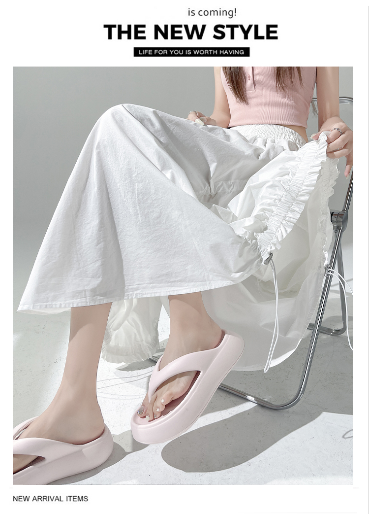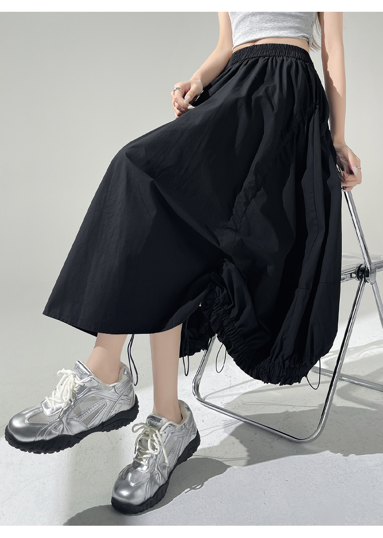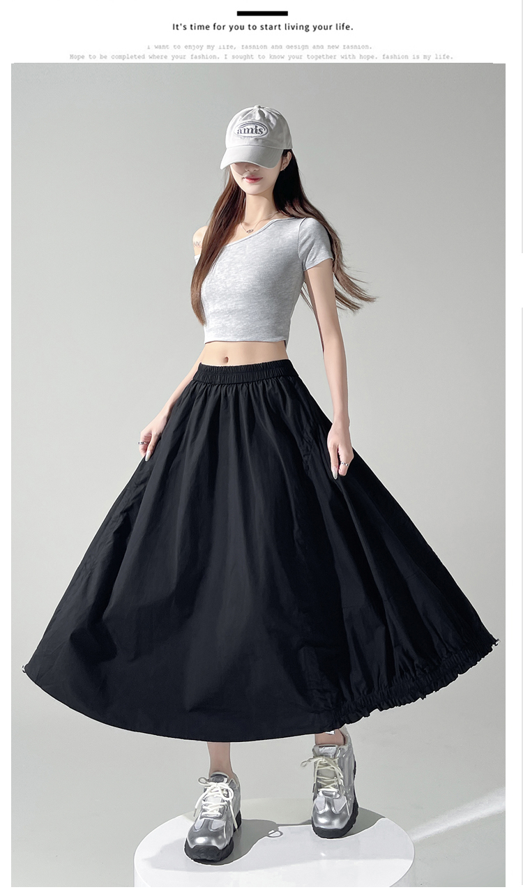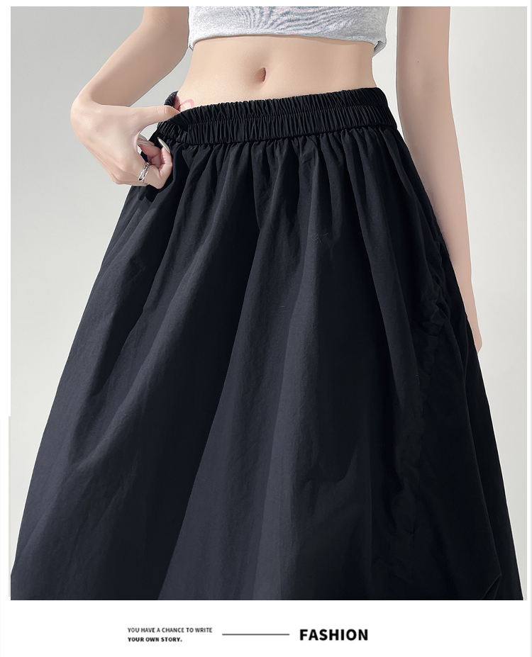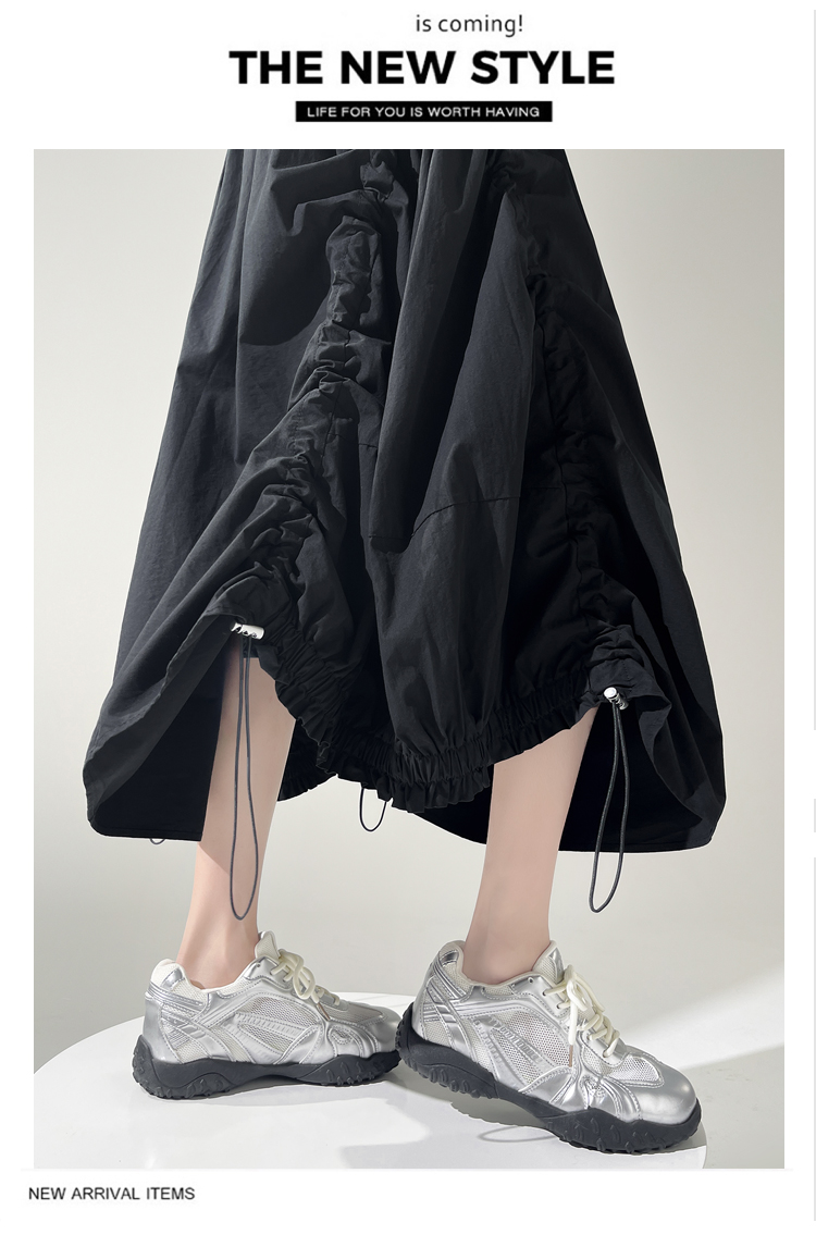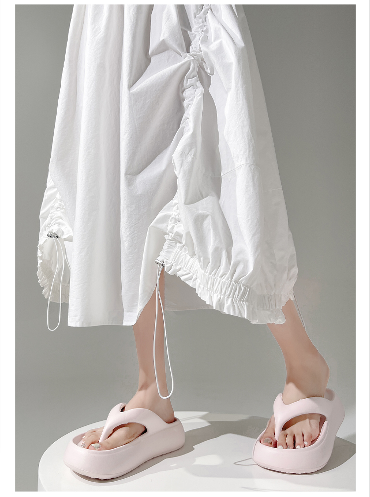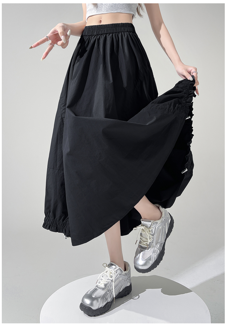 实拍 白色抽绳a字半身裙女春夏2026新款高腰显瘦中长款气质长裙