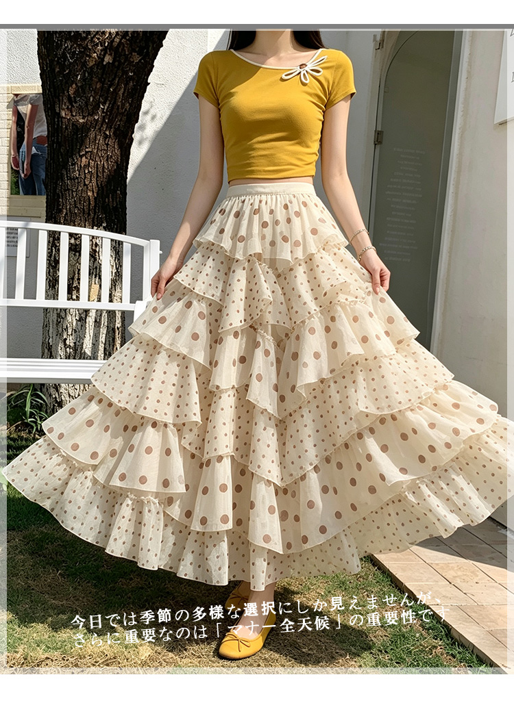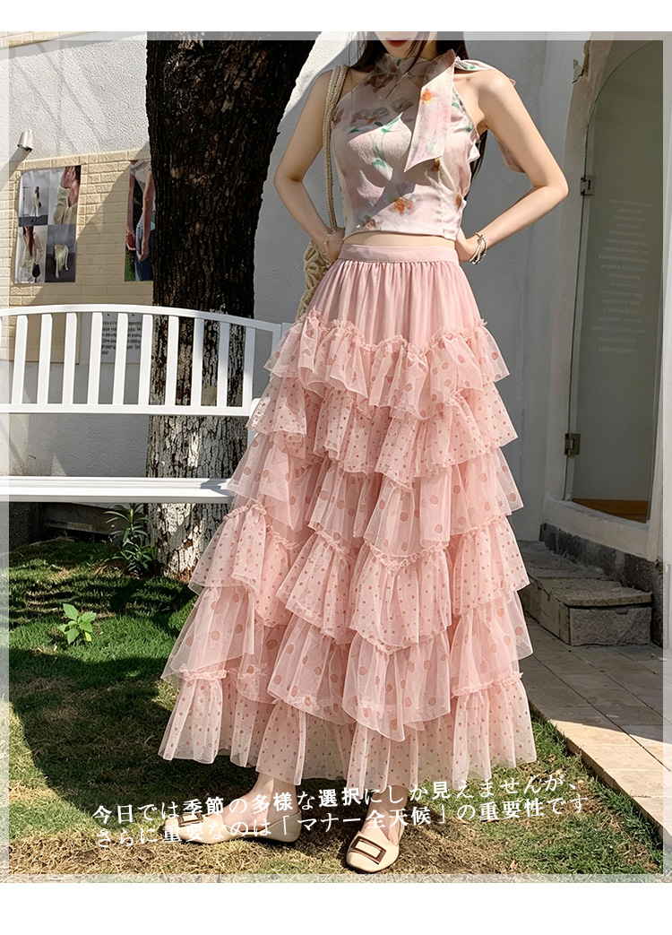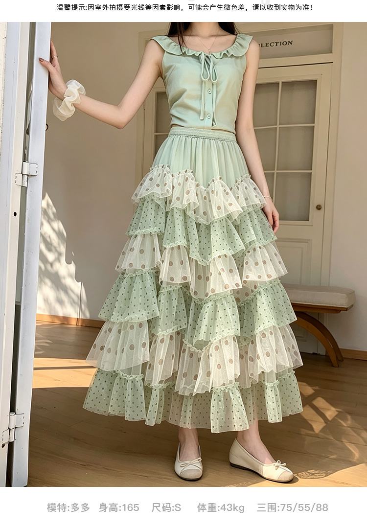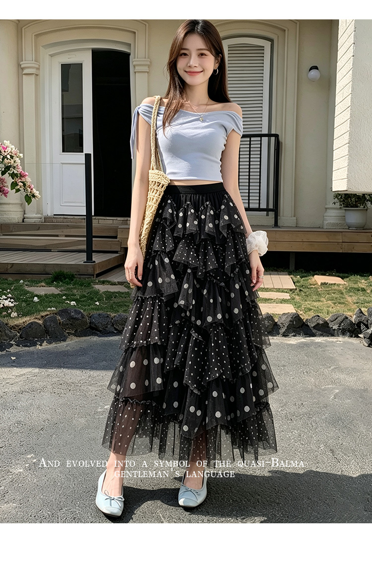 重工拼接波点网纱蛋糕裙半身裙女夏季新款显瘦裙子长裙半裙伞裙子